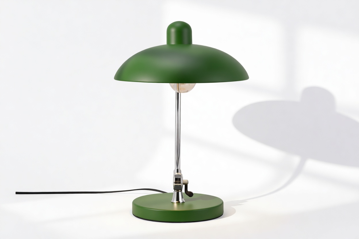 Featuring the essence of 1930s design aesthetics, The Clia Table Lamp pays homage to the Bauhaus movement with a sleek geometric silhouette and premium metal craftsmanship. Its stylish green finish adds a contemporary allure to any space. Offering versatile lighting solutions and timeless elegance, this lamp is a functional and stylish addition to your décor.