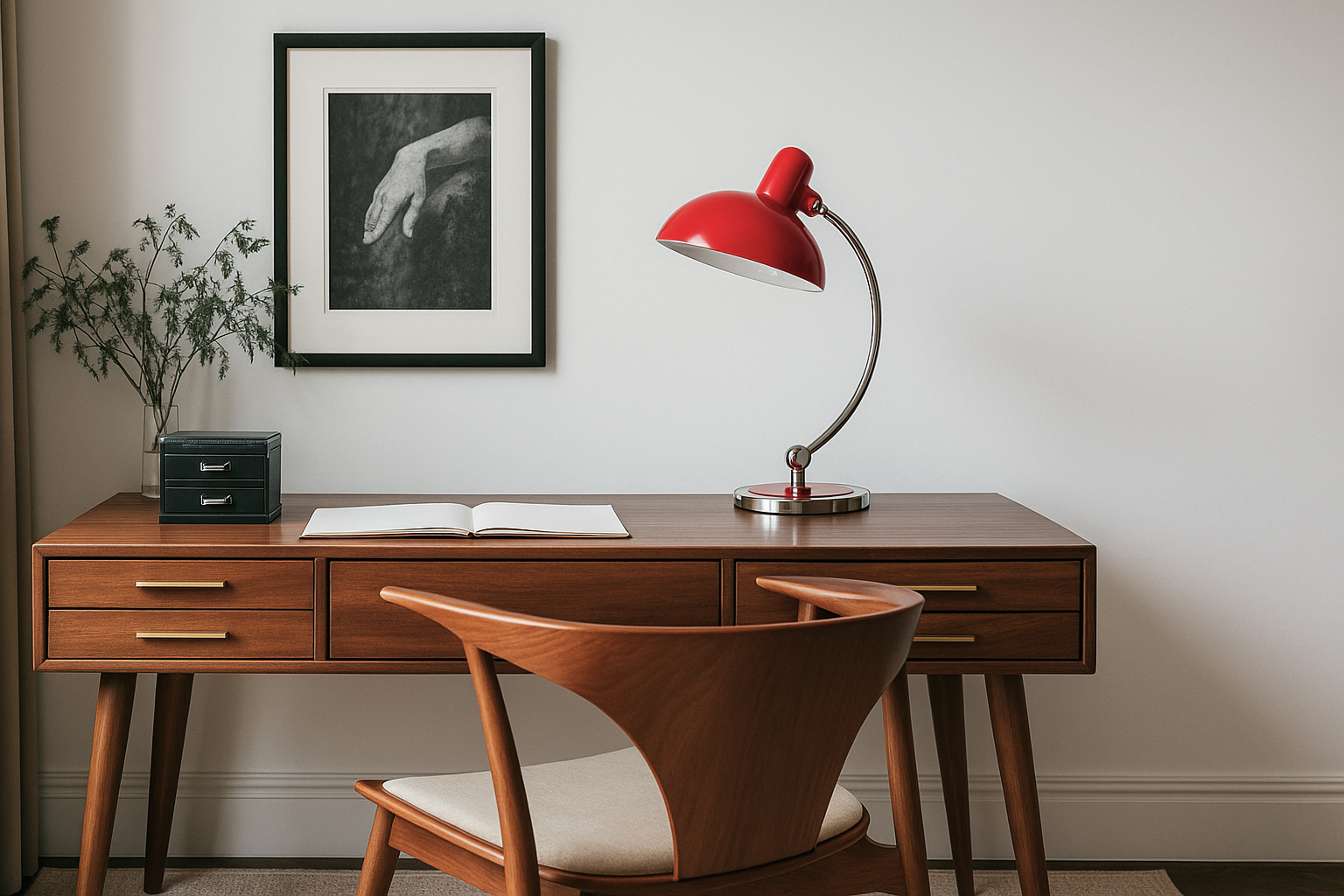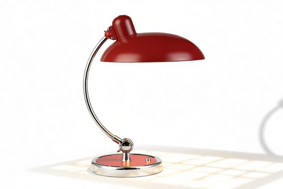 Experience the timeless allure of 1930s design with The Clia Table Lamp. Crafted with premium metals, this lamp showcases a stylish geometric design in vibrant red, embodying the Bauhaus principles of simplicity and functionality. Achieve perfect harmony between style and practicality with its elegant minimalism and versatile placement options, creating a contemporary focal point for any space.