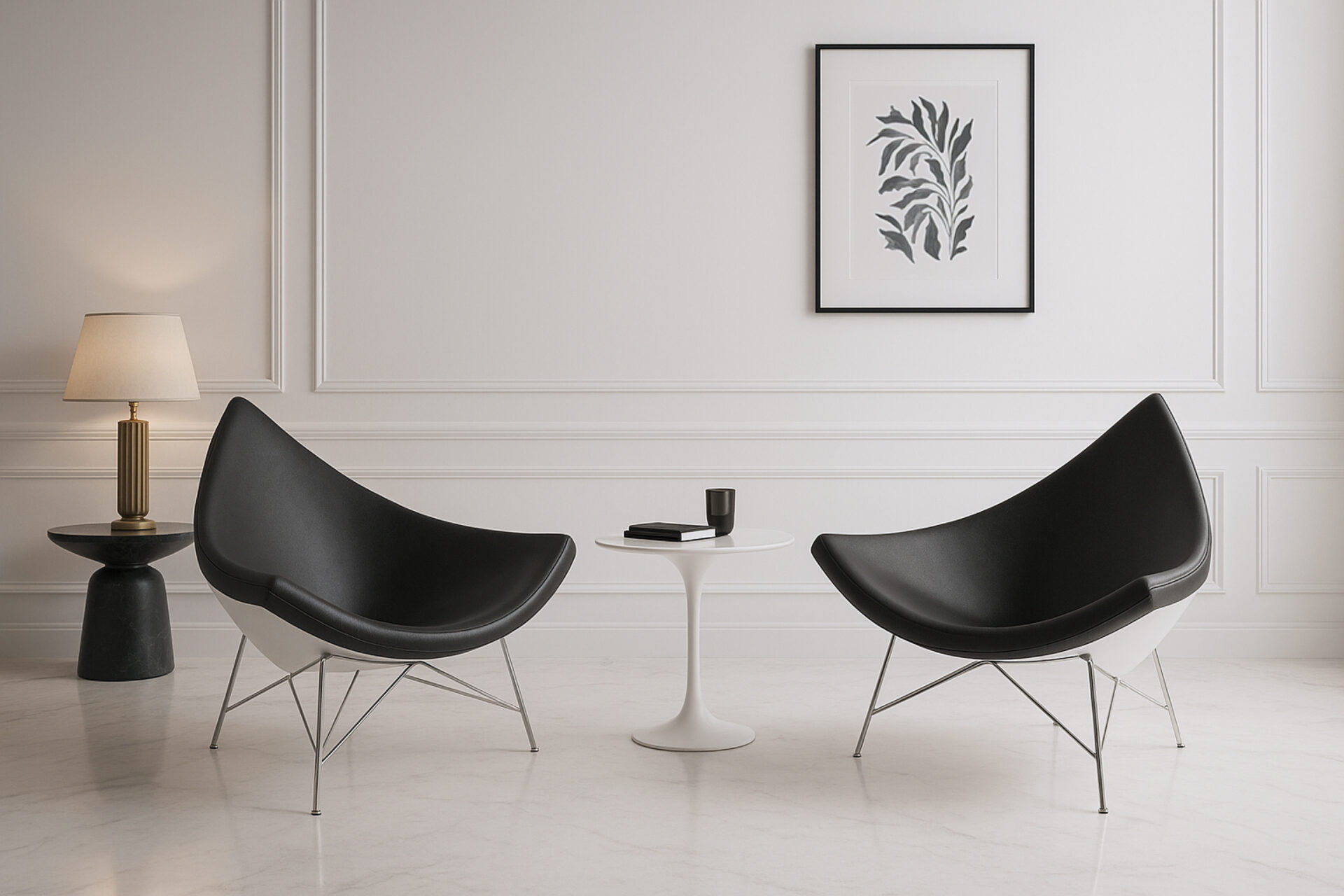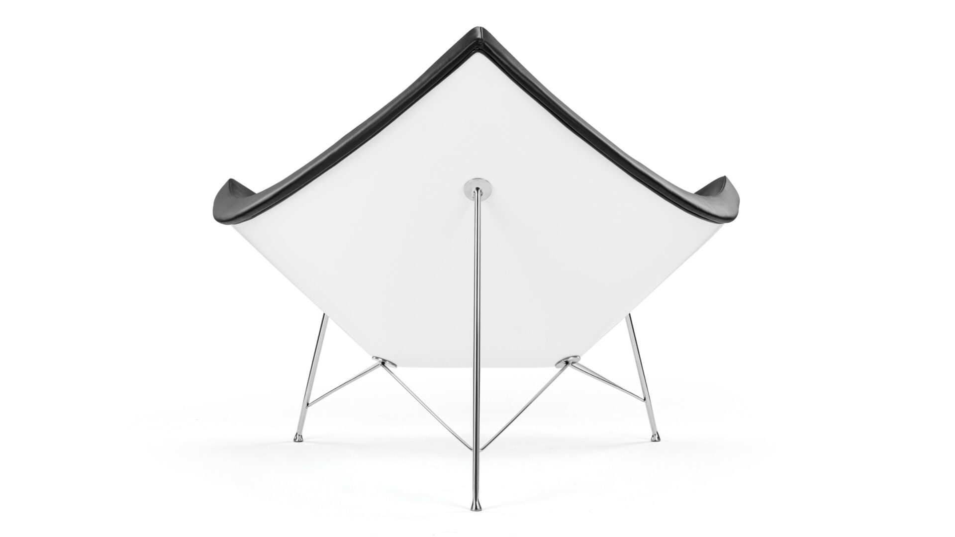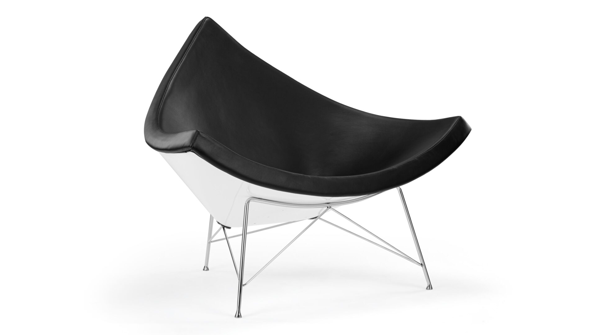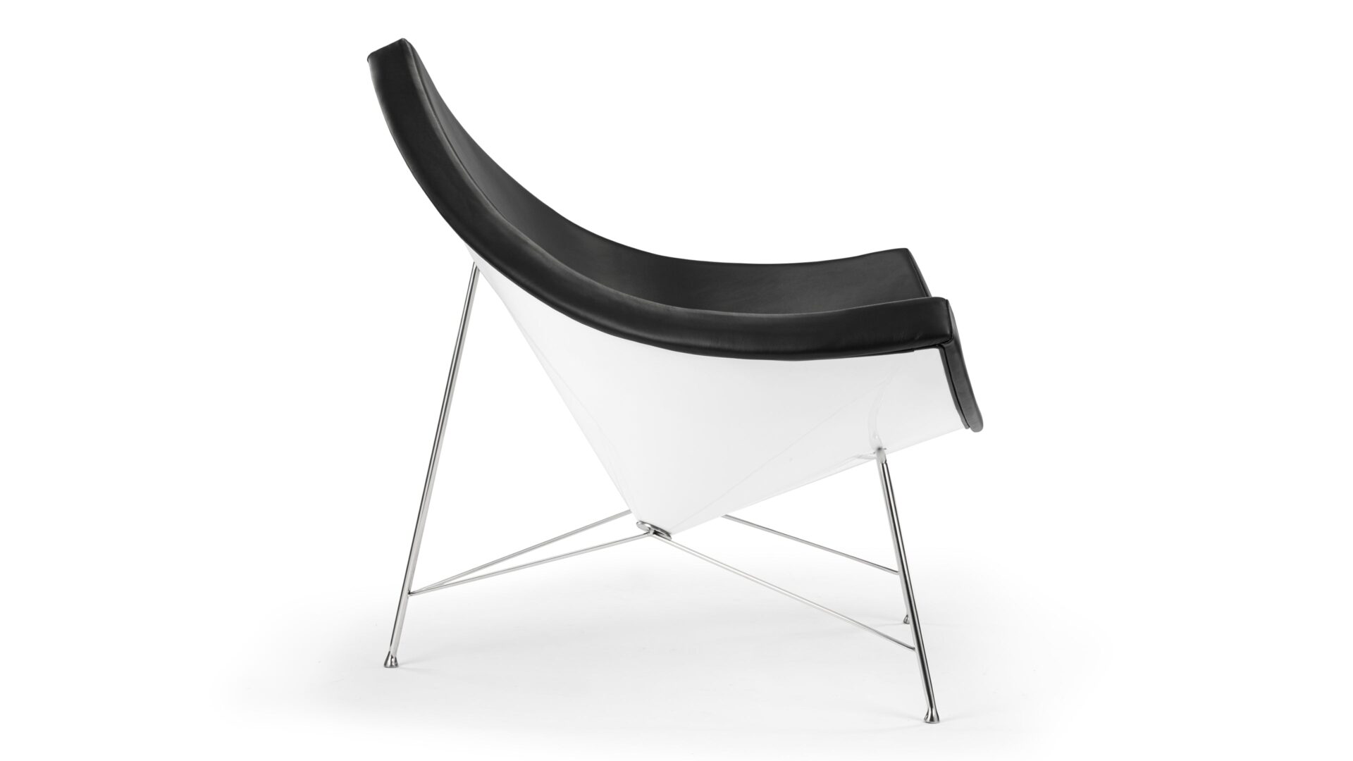 Make a daring statement with the iconic American Coconut Chair, inspired by the unique shape of a coconut segment. Crafted with premium black leather and sturdy fiberglass, this chair exudes a playful spirit with its white outer shell and dark upholstery, offering a fresh twist on a traditional design. Enjoy supreme comfort in its rounded, open design, perfect for lounging and adding versatile appeal to any setting from living rooms to lobbies. Built to last with top-quality materials, the Coconut Chair is a stylish and durable choice.