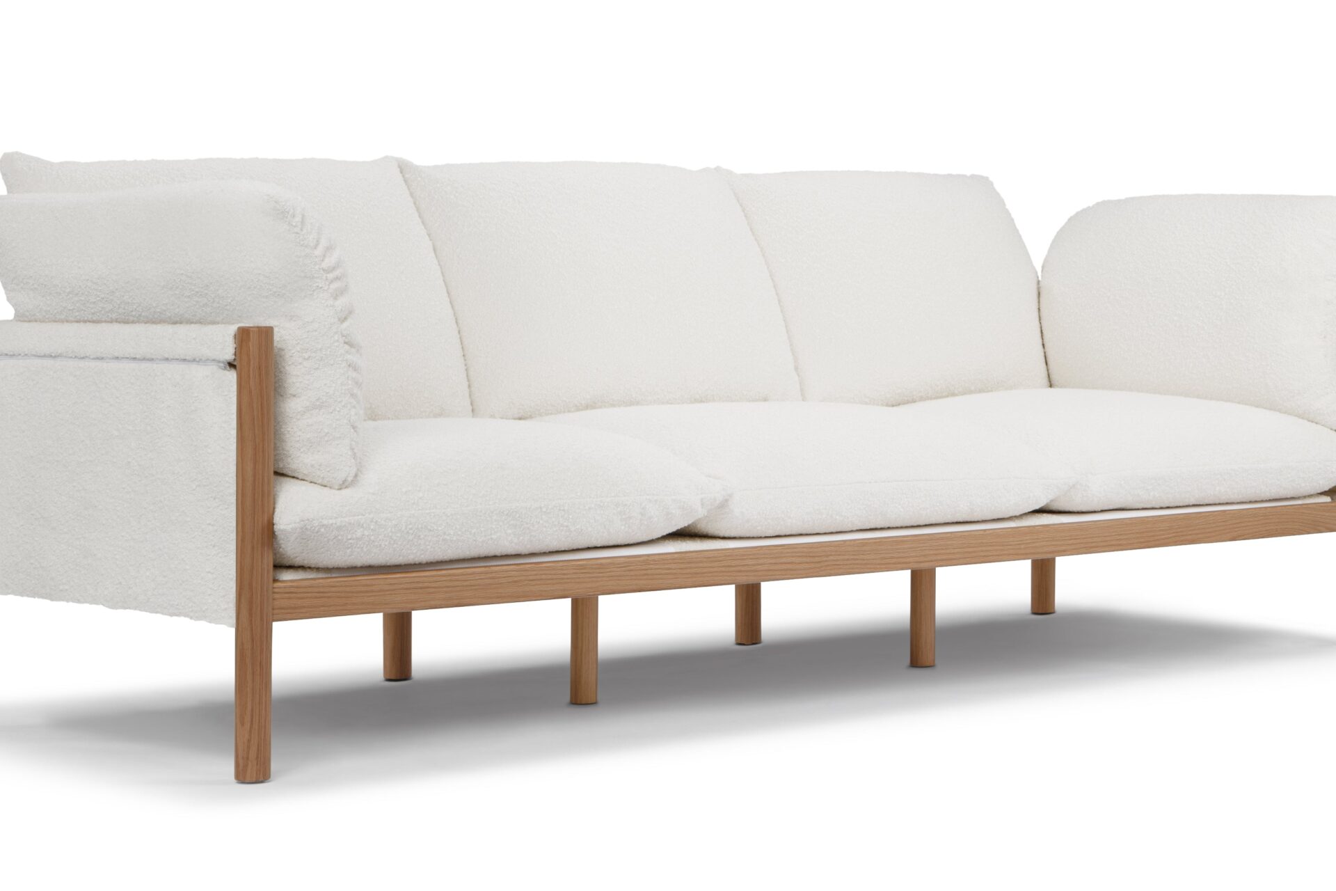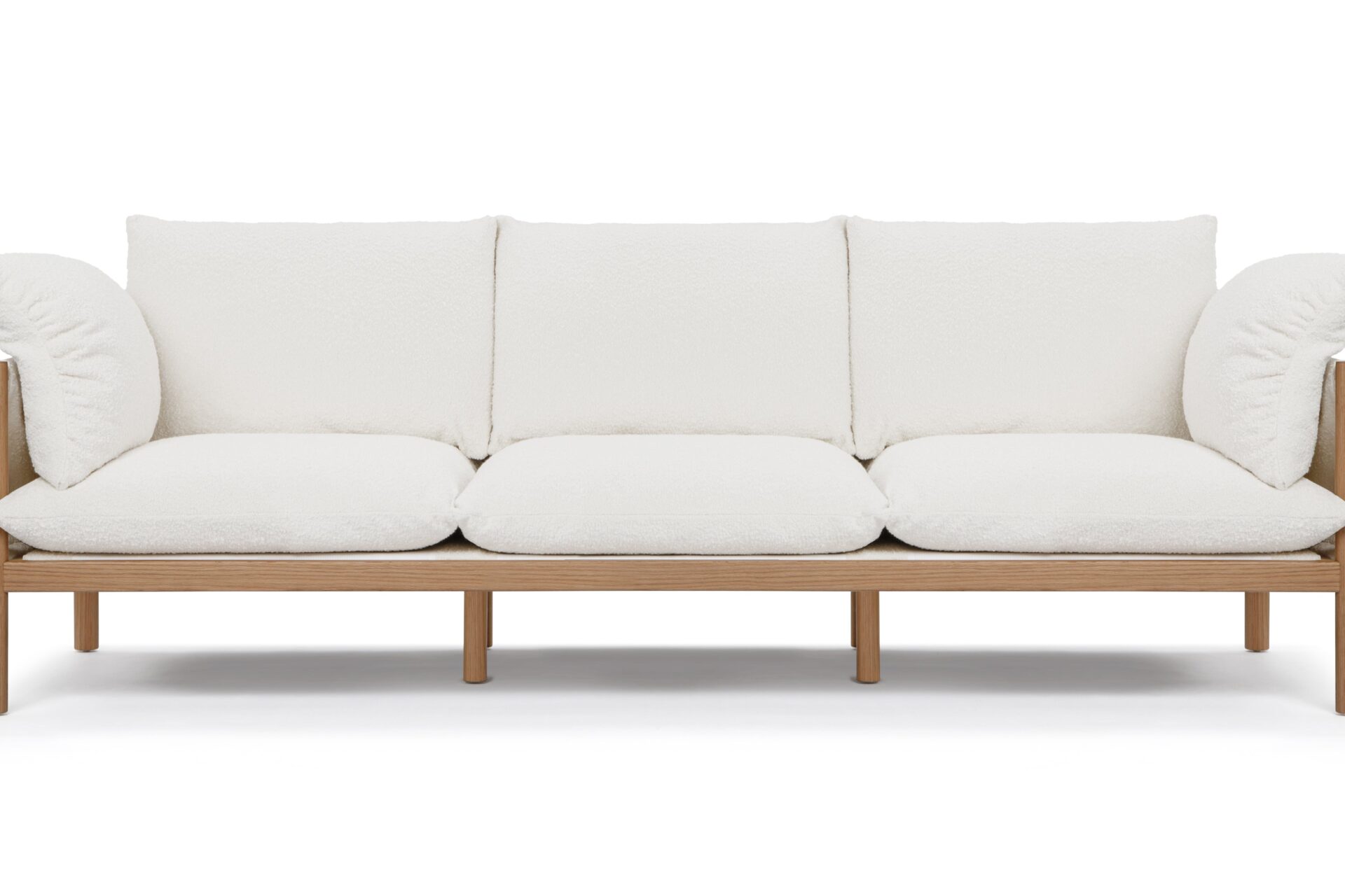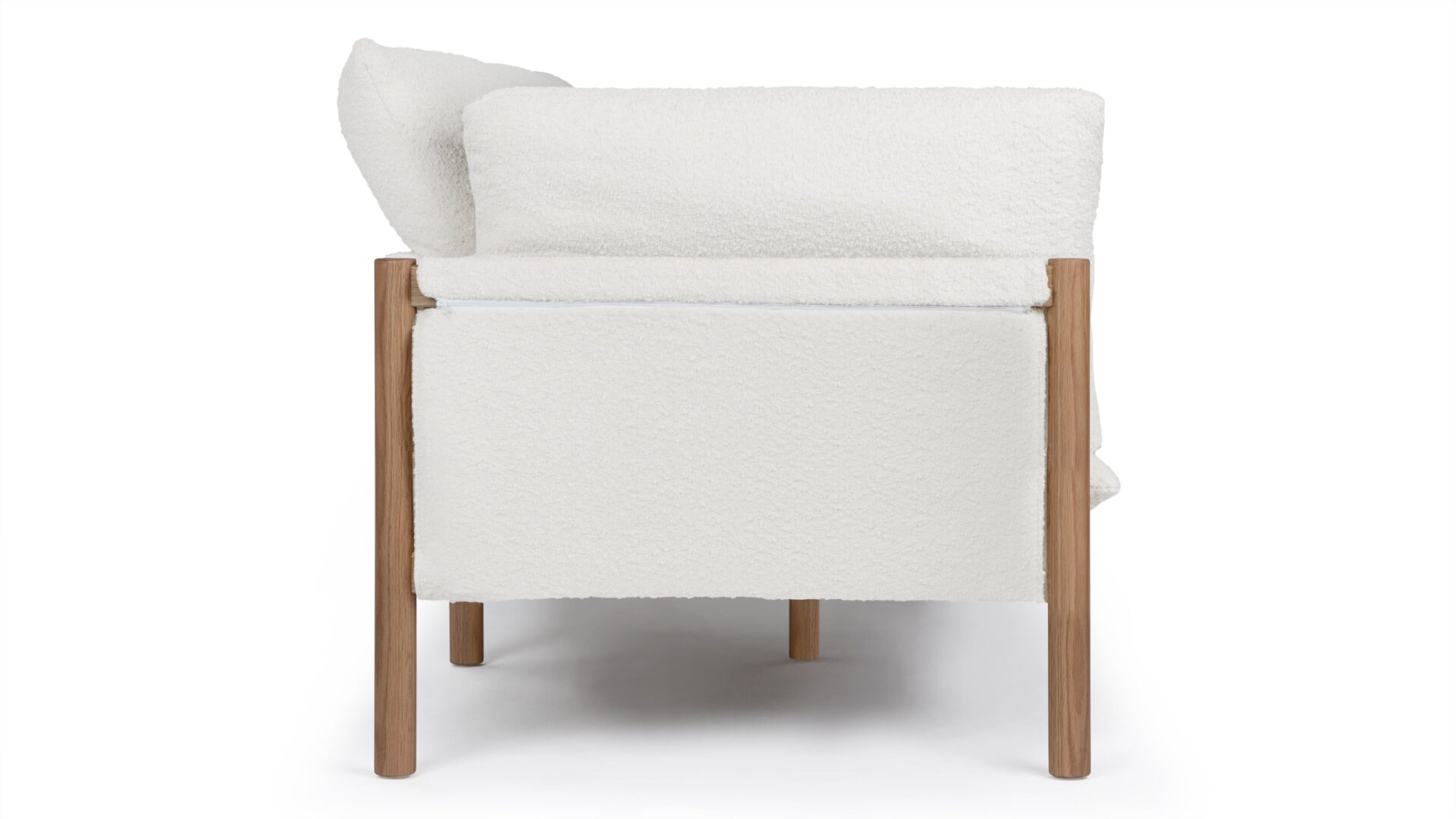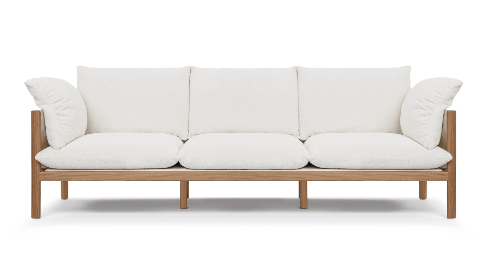 Made from a sturdy frame of solid red oak and plush, feather-filled cushions, the sofa seamlessly blends top-notch, organic elements for a perfect balance of comfort and durability.