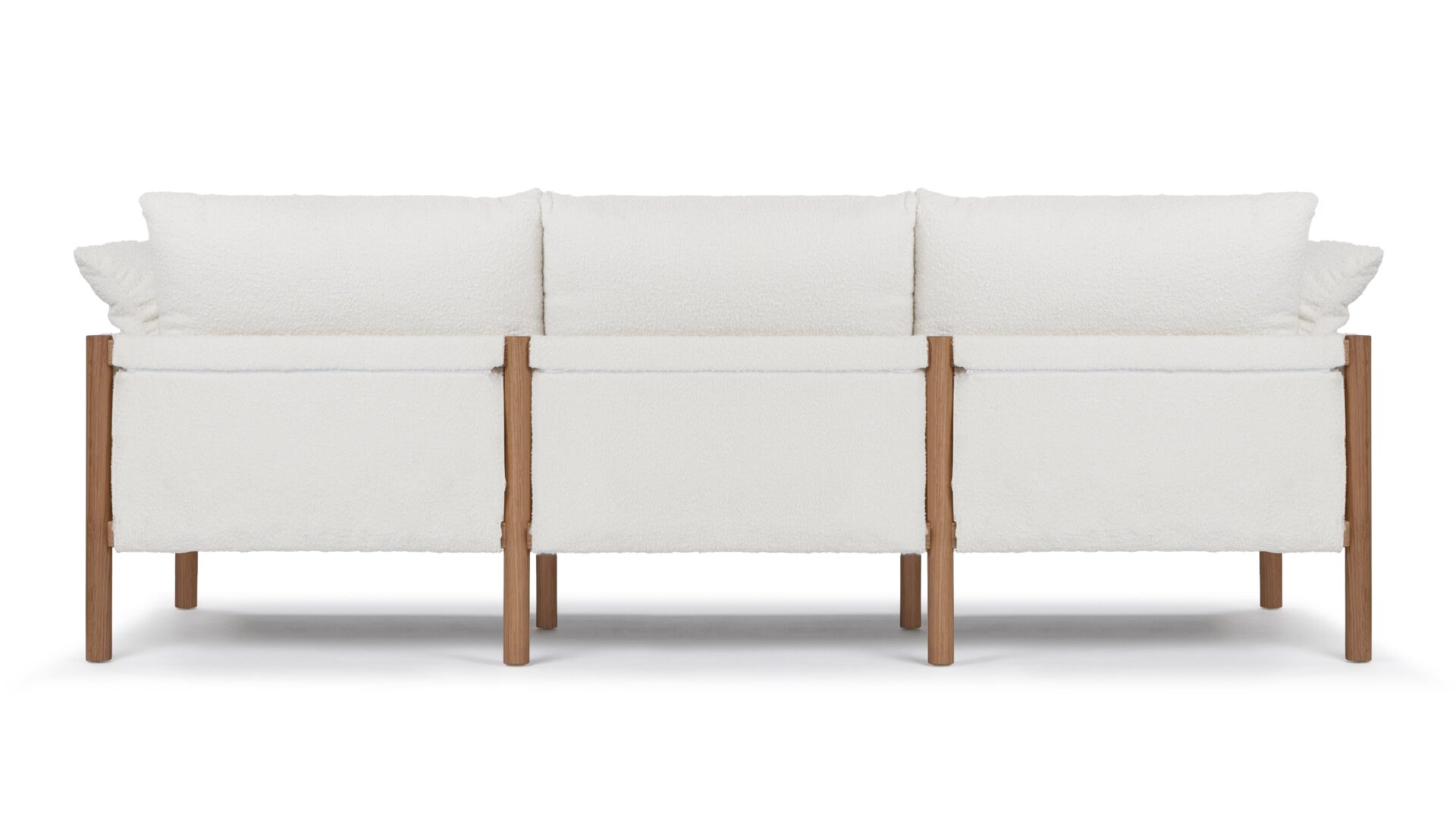 Perfect for contemporary living spaces, this piece complements other white boucle furniture such as lounge chairs and footstools. Alternatively, it can act as a refined neutral centerpiece when paired with vibrant accessories, offering a versatile choice for various aesthetic preferences. Inspired by refined continental aesthetics, this sofa seamlessly merges opulence with practicality - its sleek design and sumptuous cushioning ensure durability and unrivaled comfort, making it a perfect addition to modern homes.