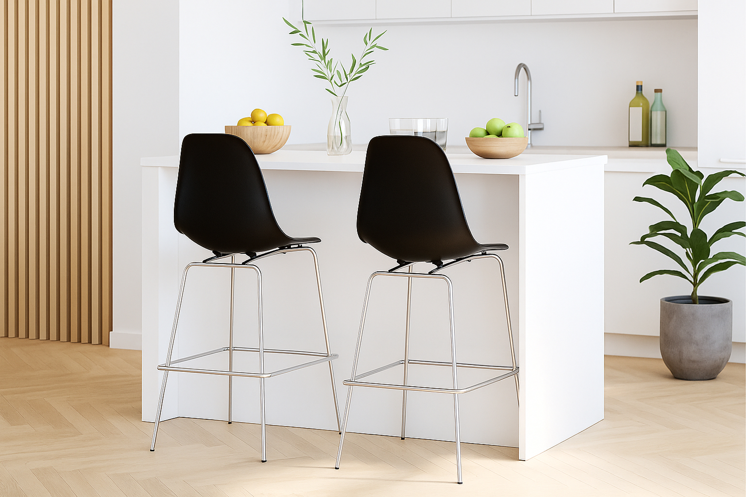 Elevate your space with the sleek and contemporary molded Barcelona Barstool in Black. Crafted with premium materials, it offers structural security and modern design, contouring to the body for maximum comfort. The contrasting materials add visual charm, making it the perfect choice for minimalist and industrial aesthetics. Pair it with the versatile Cooperi stool for a seamless transition between retro and modern styles.