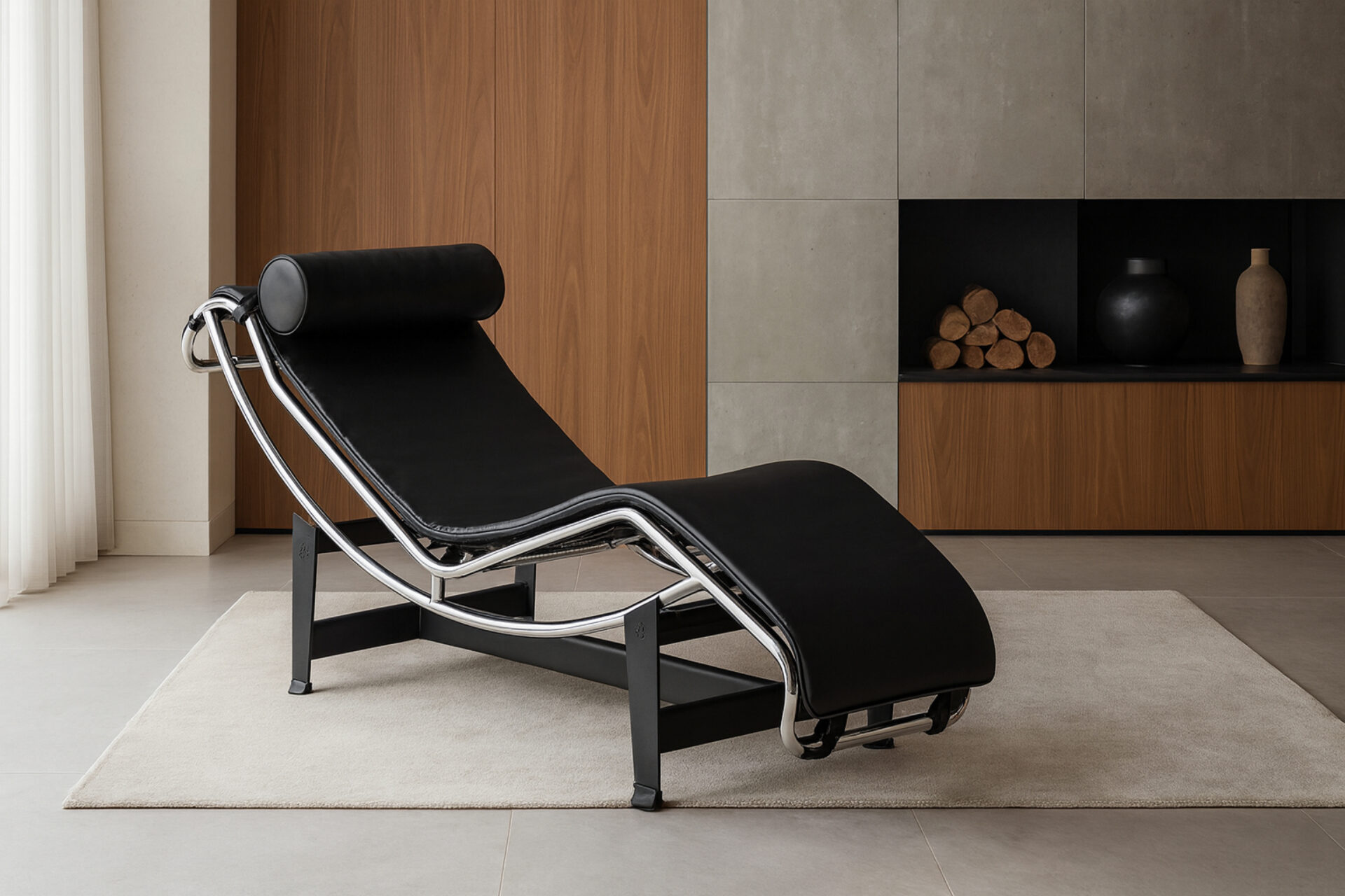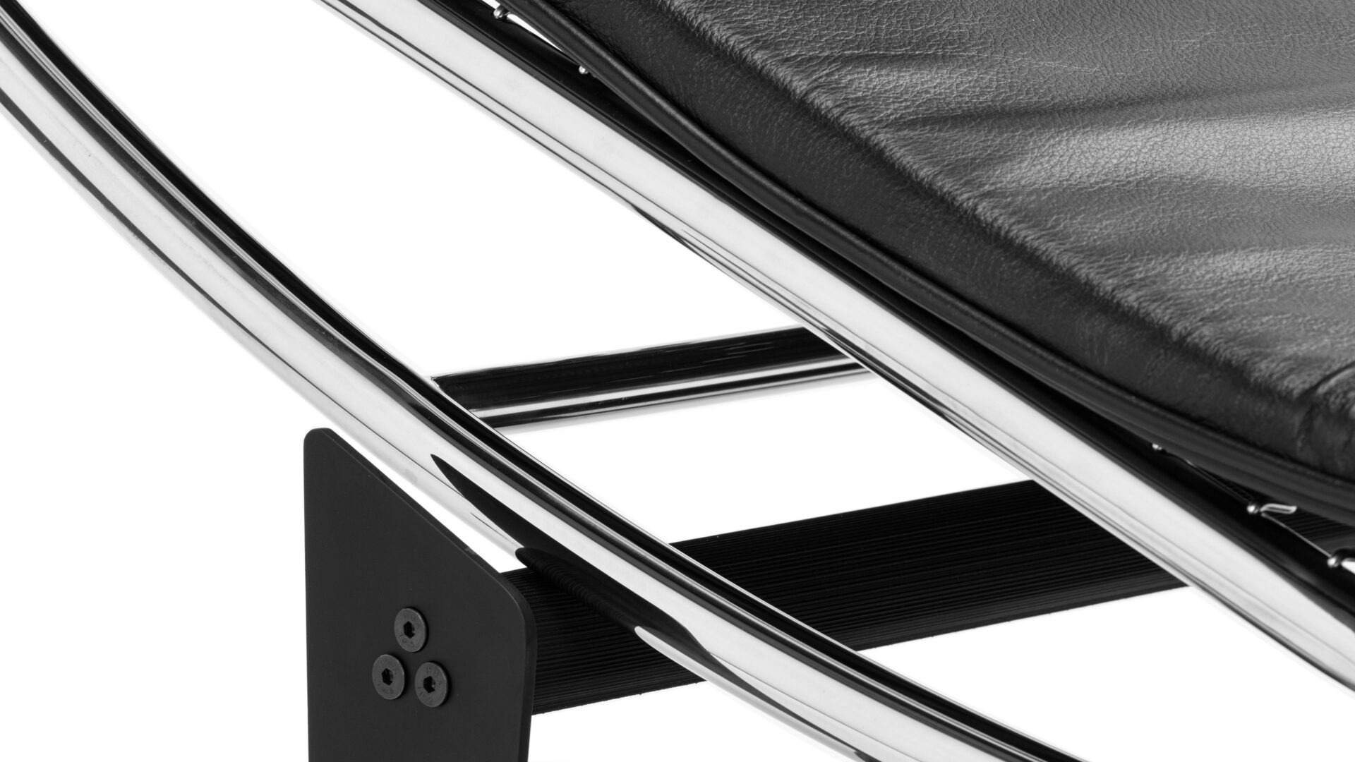 Experience the sleek sophistication of the Corbusier Recliner, seamlessly blending chrome accents with luxurious black leather for a bold yet timeless aesthetic. This design effortlessly complements both contemporary and classic spaces.