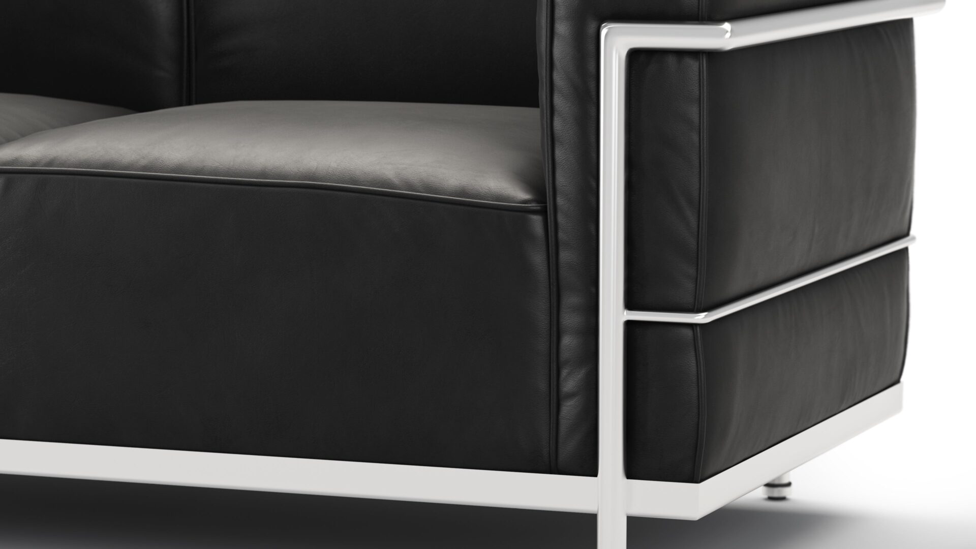 Drawing inspiration from the iconic club chair, the enticing contemporary design of the Grand Modele Sofa showcases generous seating and a sleek external steel frame.
