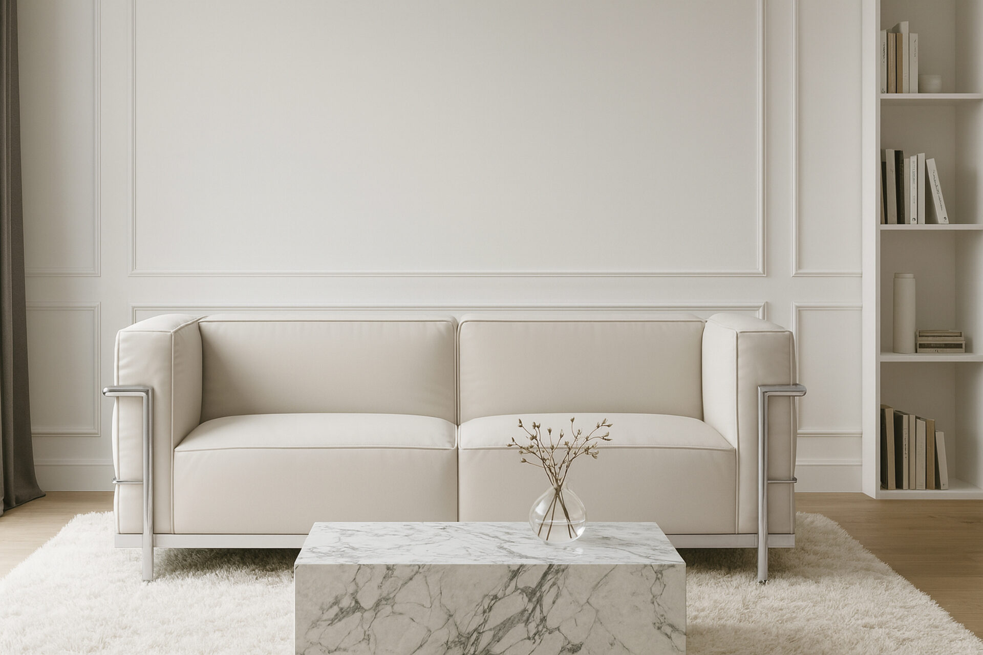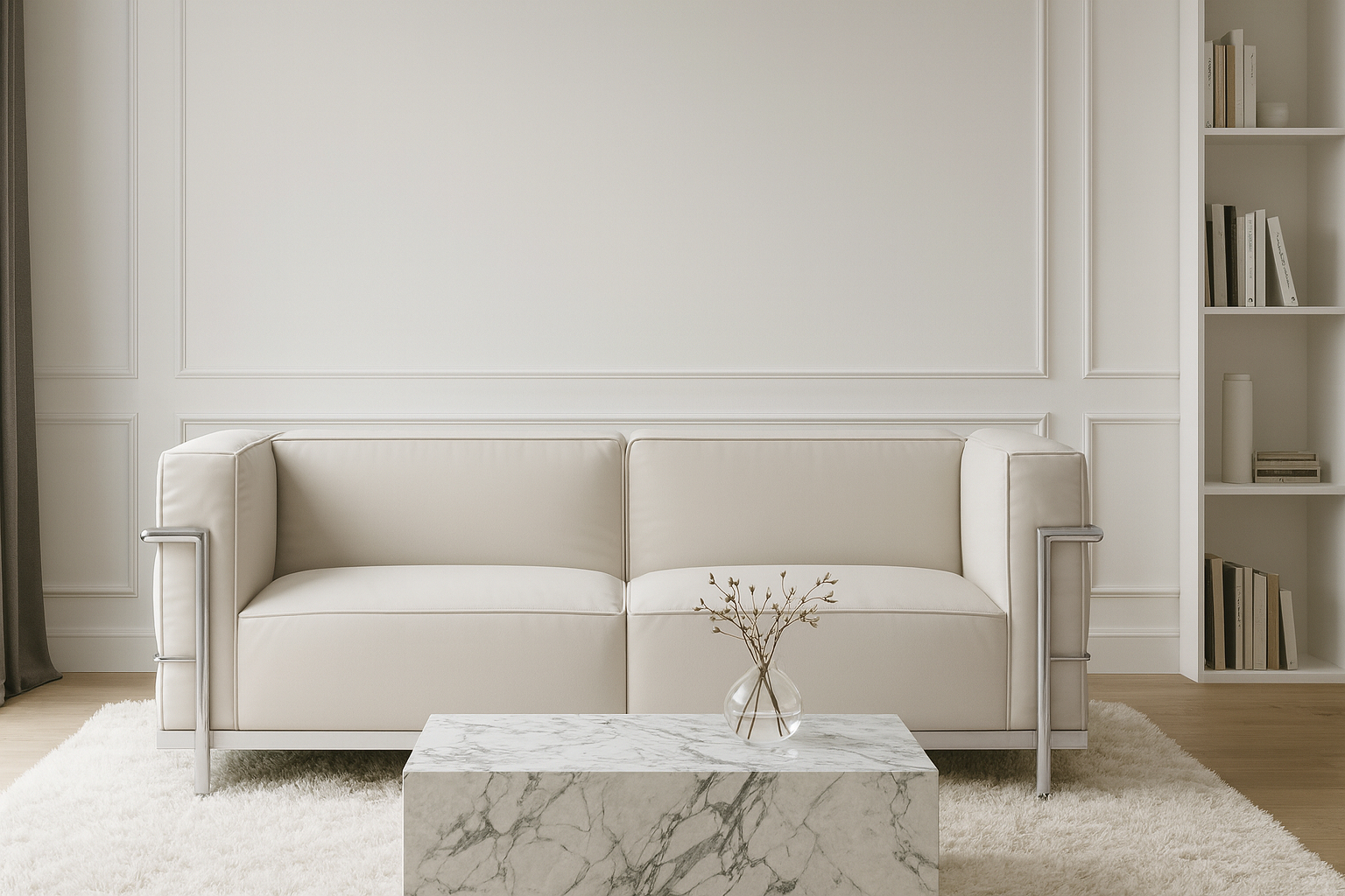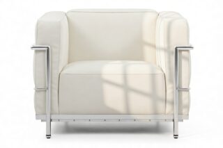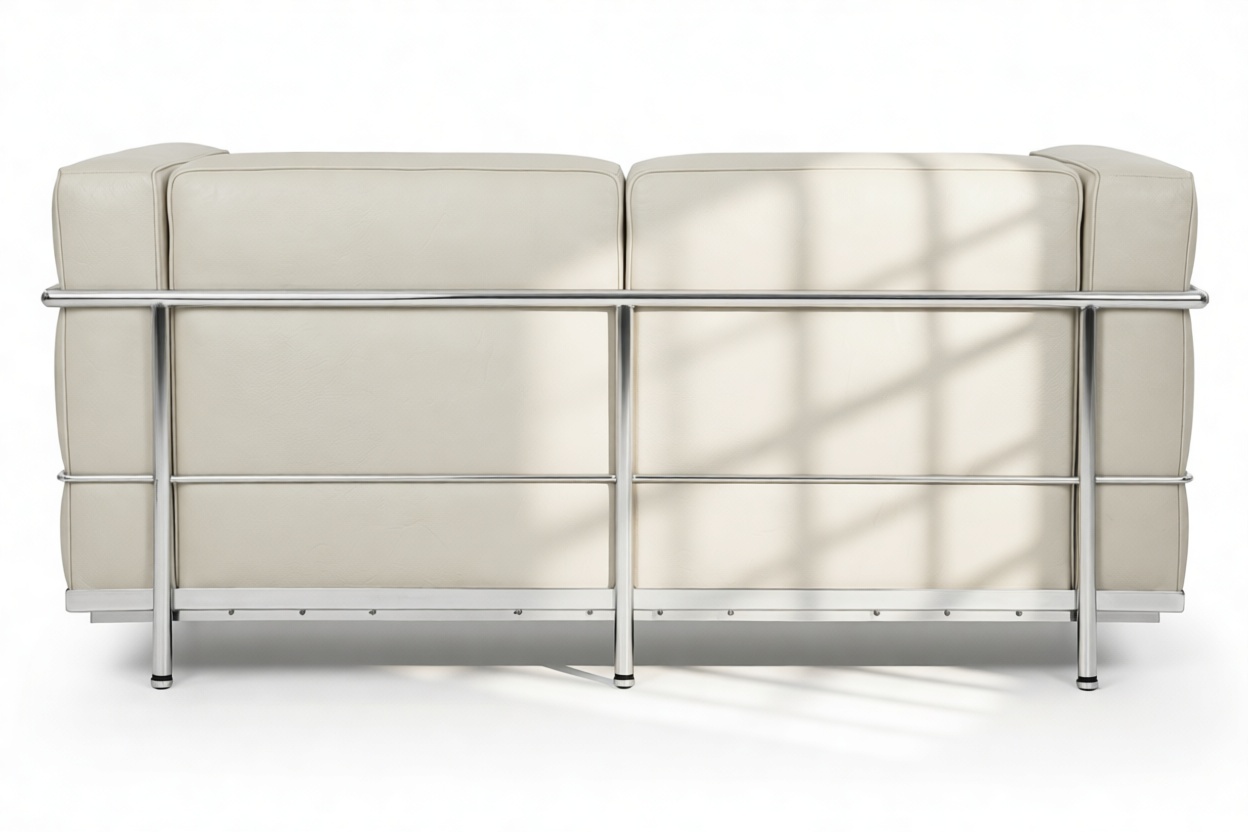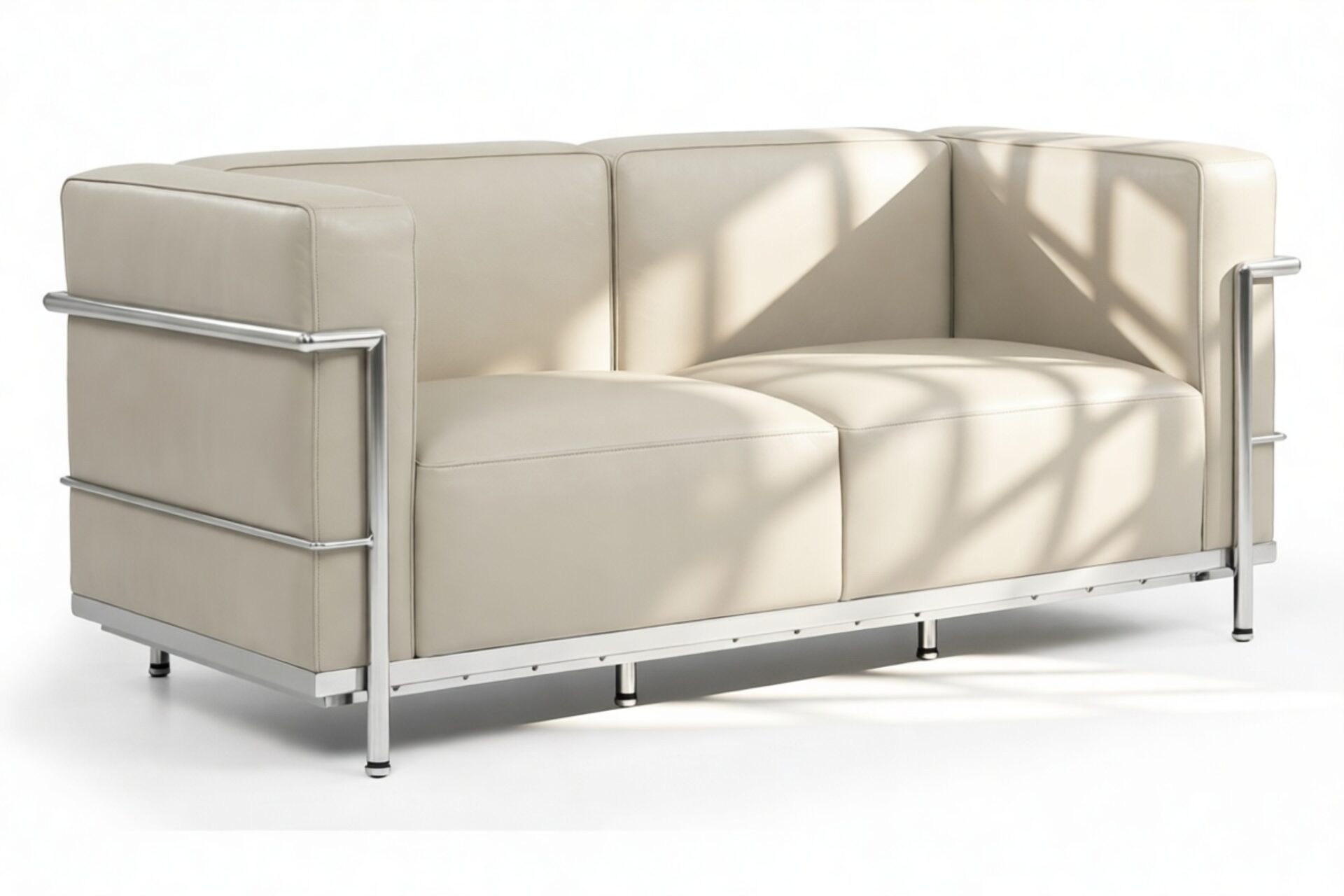 Discover the sophistication of the Grand Modele collection, emphasizing clean lines, geometric shapes, and structural precision. Each piece embodies architectural artistry, blending aesthetics and functionality flawlessly. Experience timeless elegance with the Le Corbusier sofa in Cream Vegan Leather, offering architectural fusion, ultimate comfort, and lasting style. Elevate your living space with iconic designs that redefine contemporary luxury.