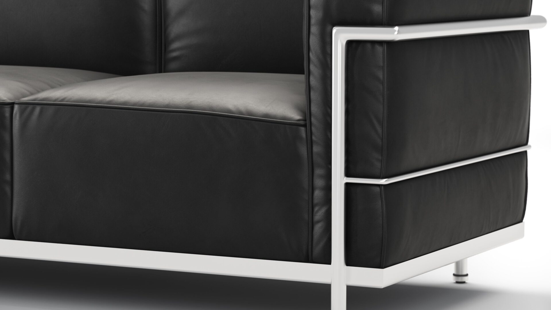 Drawing inspiration from the iconic club chair, the enticing contemporary design of the Grand Modele Sofa showcases generous seating and a sleek external steel frame.