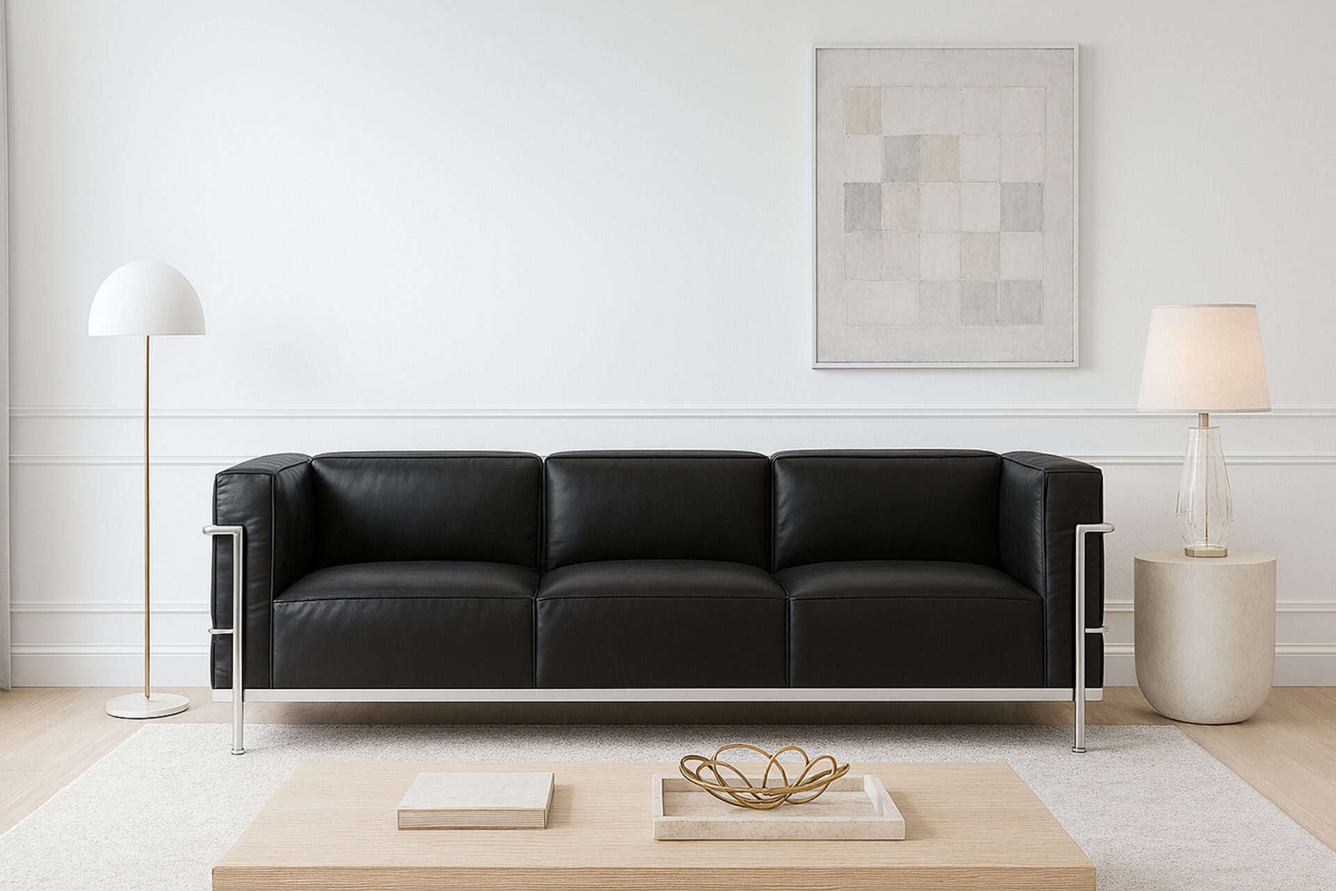 Elevate your home with the architectural artistry of the Grand Modele collection, featuring sleek lines and precise structures that seamlessly blend aesthetics with functionality. Experience the luxurious comfort of the Grand Modele Sofa and Three-Person Sofa in Midnight Black Premium Leather, offering generous seating, a sleek steel frame, and plump cushions for unmatched relaxation. Transform your living space with the sleek and minimalist Harmony Sofa, perfectly fusing style and comfort in a timeless statement of contemporary luxury.