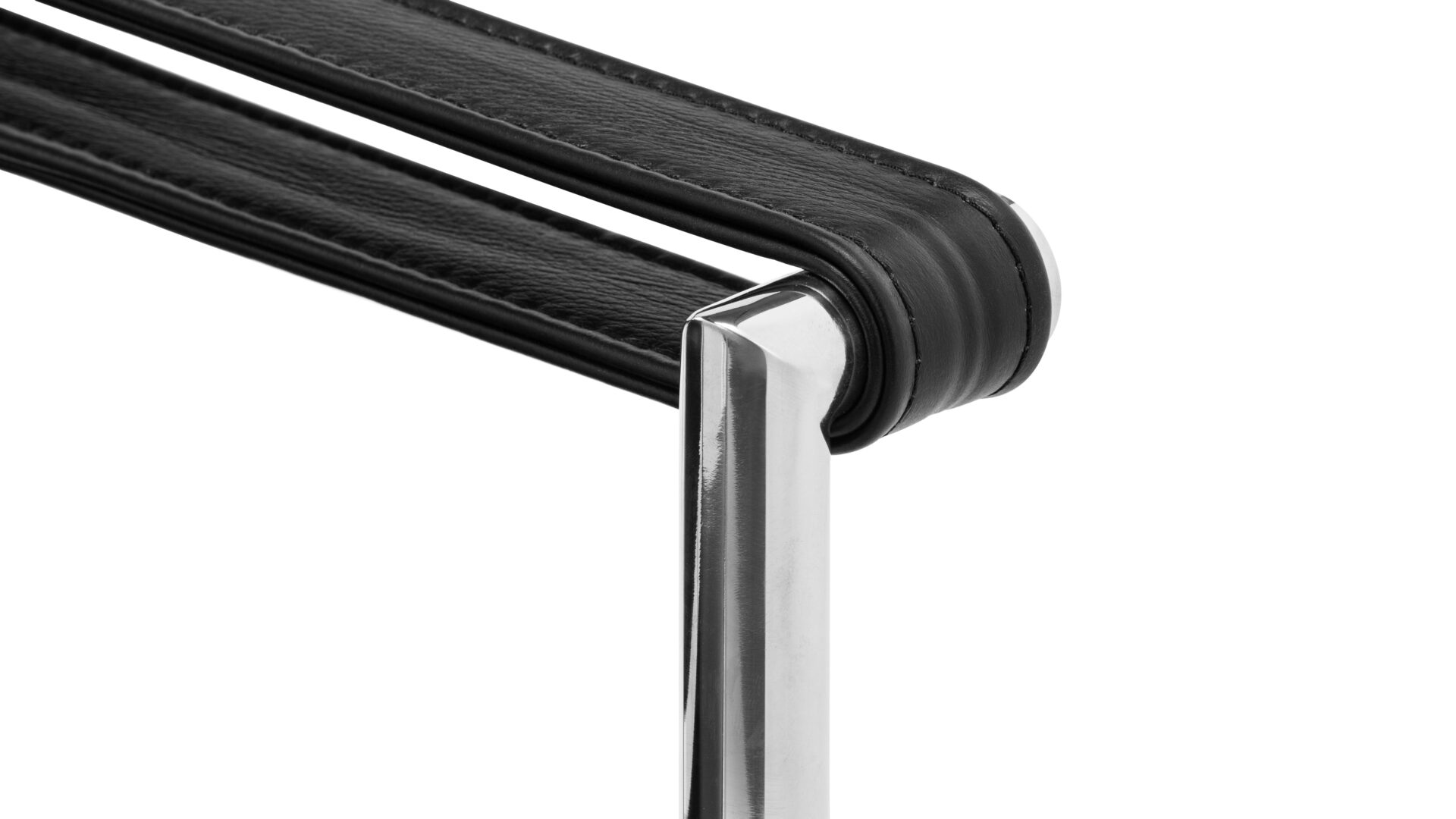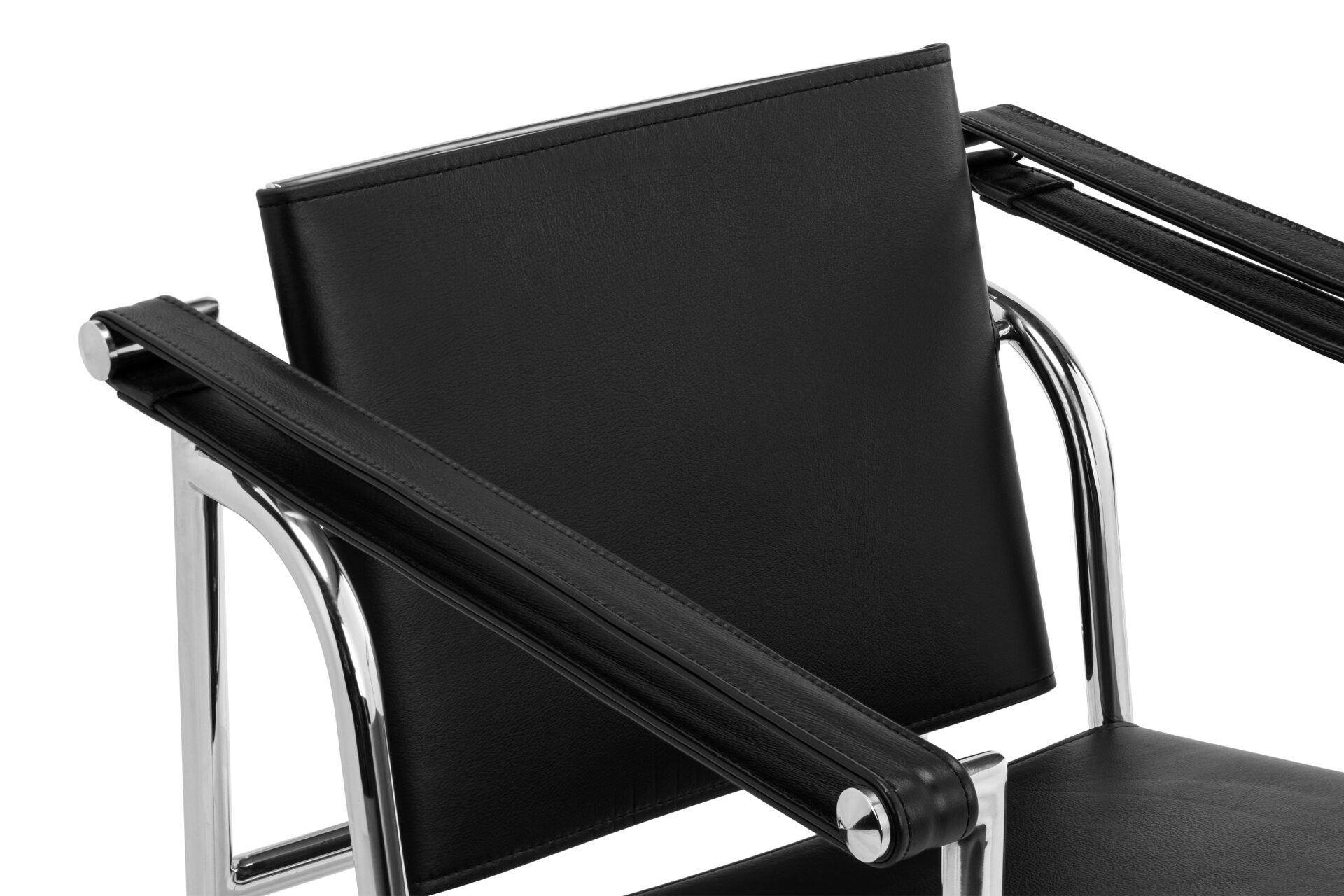 Experience the modern aesthetic of the Corbusier Armchair, featuring clean lines, ergonomic design, and a timeless style. Its sturdy tubular steel frame is complemented by high-grade leather sling upholstery, effortlessly combining minimalist values with comfort.