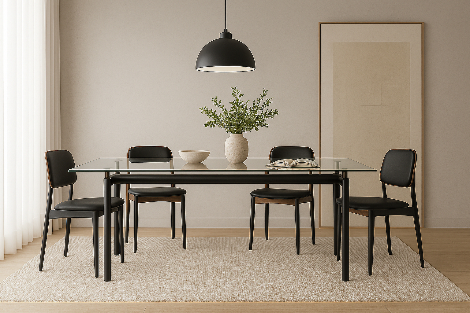 Sleek Black Corbusier Dining Table