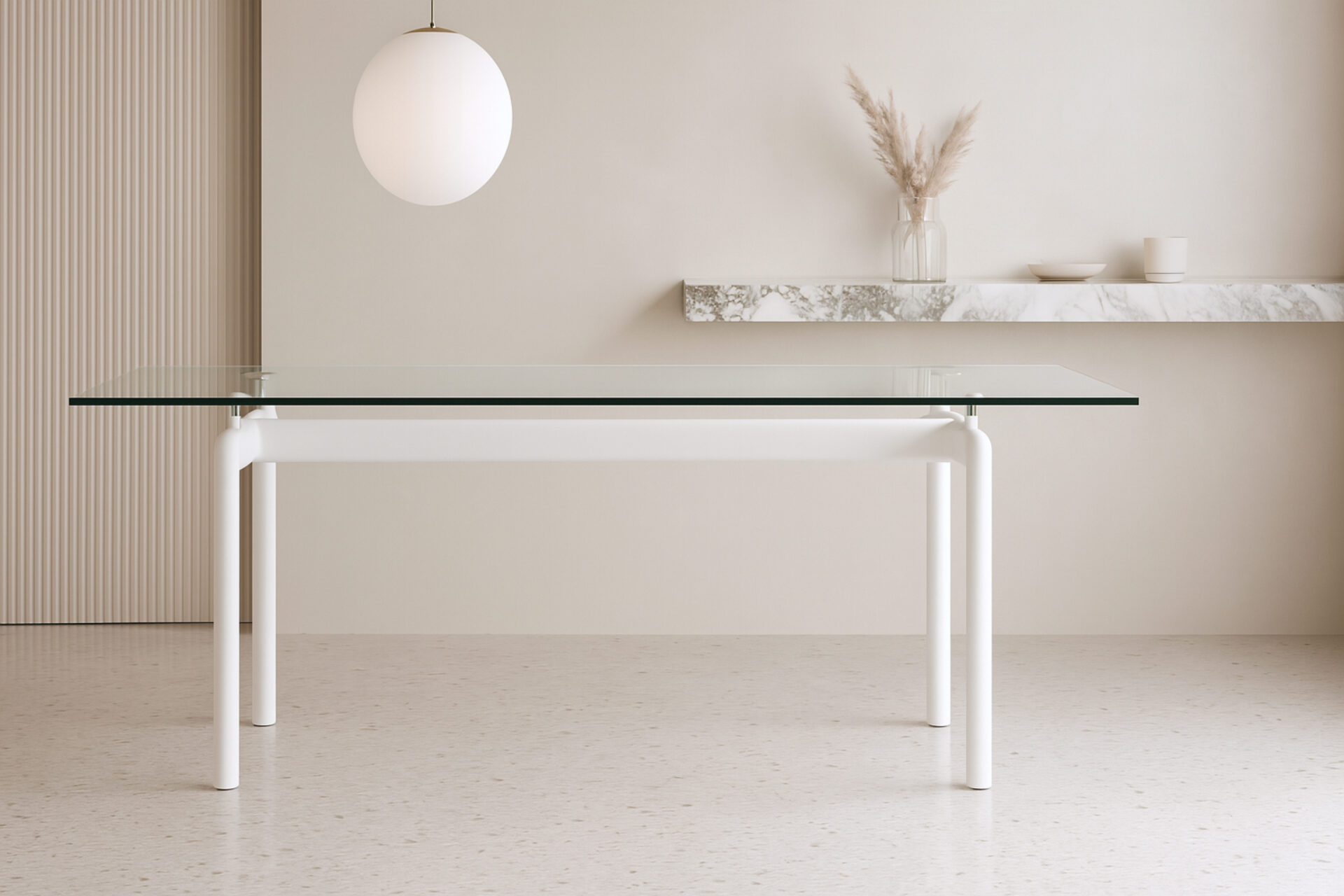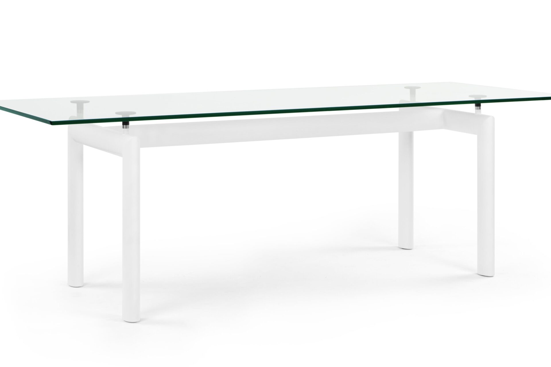 Elevate your dining space with the timeless Corbusier Dining Table in White, a blend of contemporary elegance and minimalist design. Featuring a sturdy tubular steel frame and premium tempered glass tabletop, this iconic piece embodies sophistication and functionality. Enhance your interior decor with this enduring symbol of mid-century modern style.