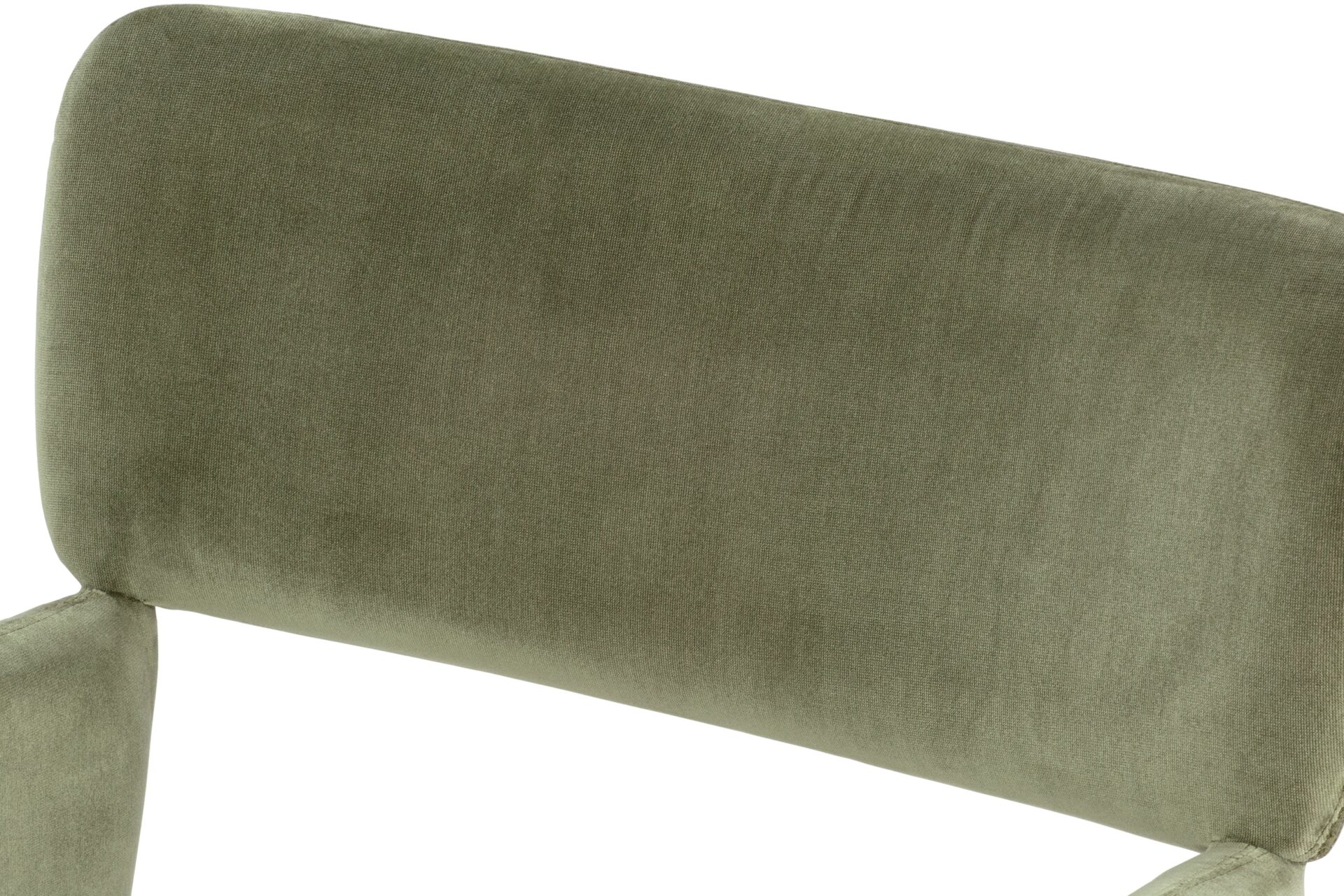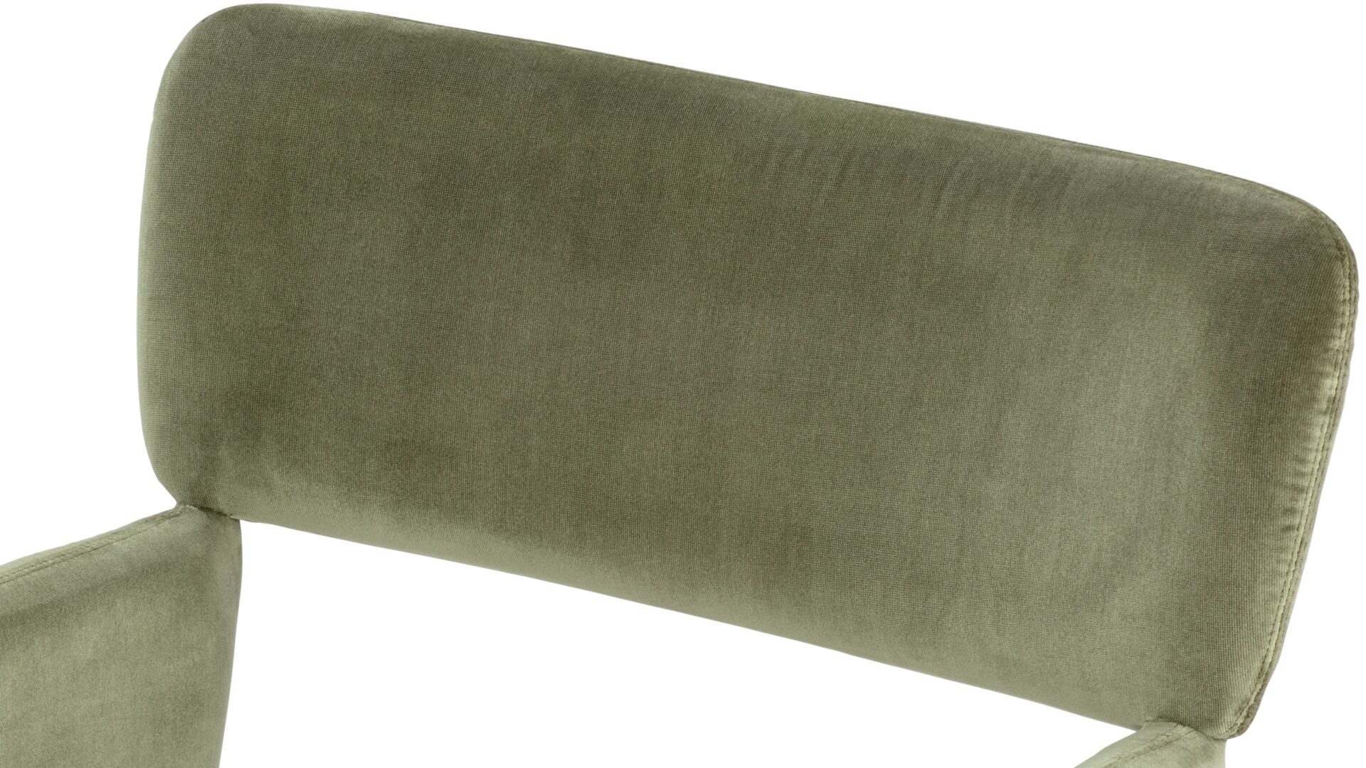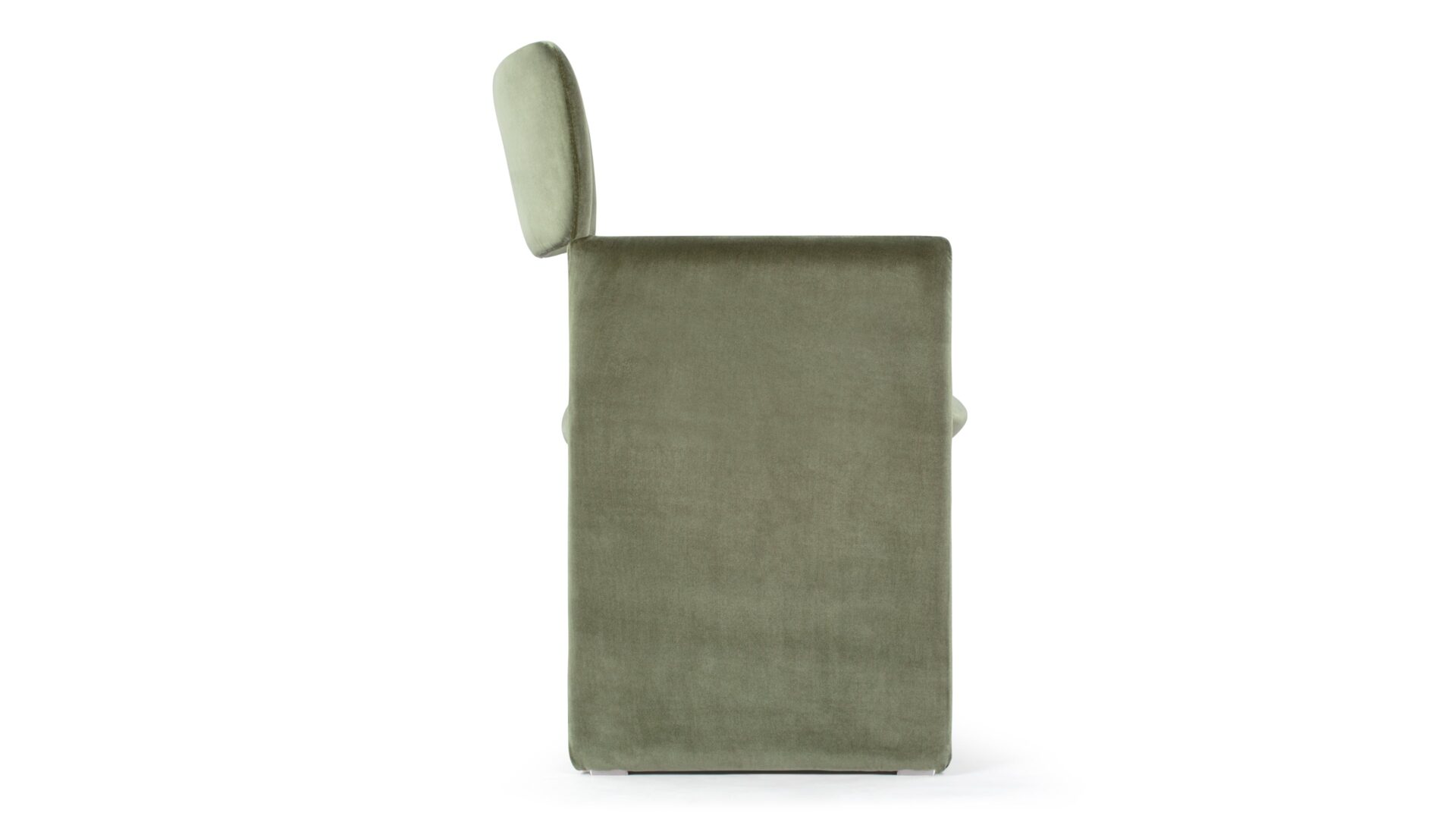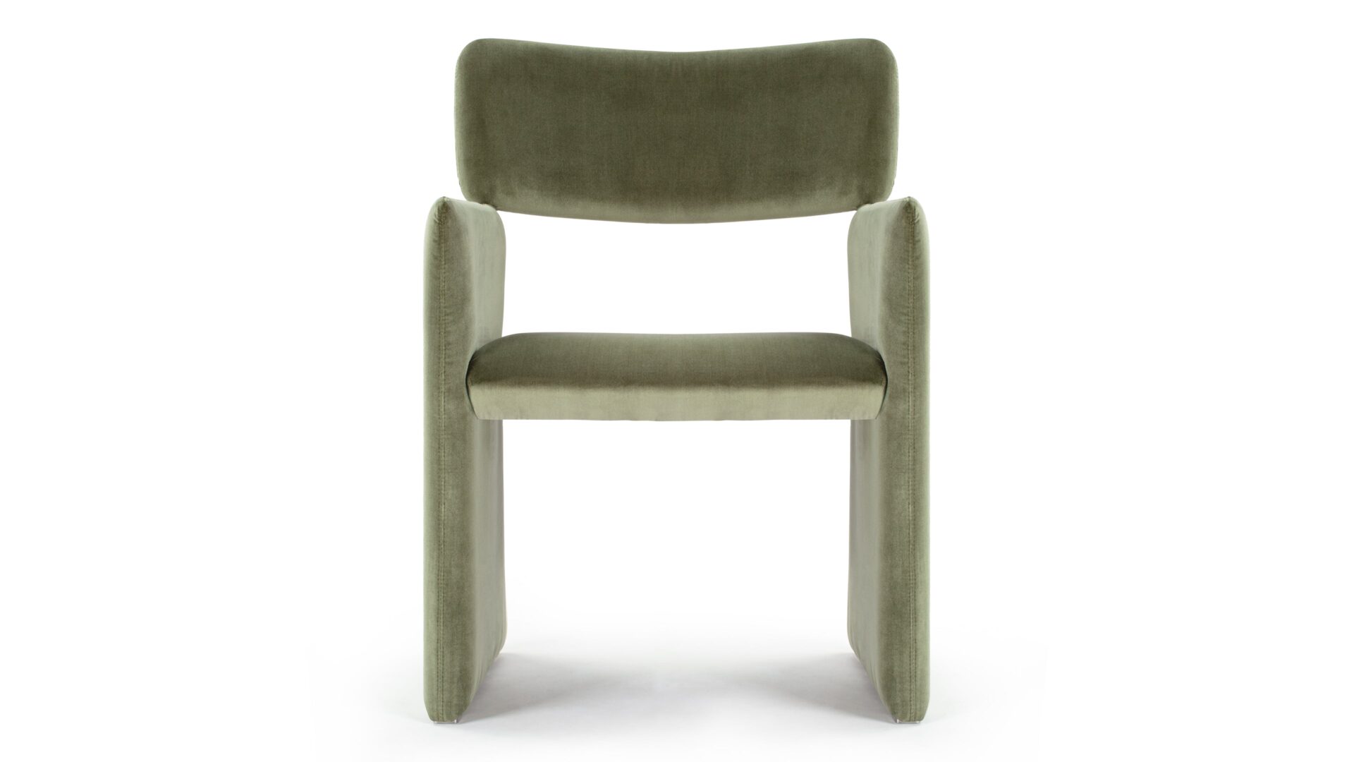 Indulge in the modern elegance of the Crown Armchair, a luxurious masterpiece that exudes regal charm and contemporary coziness. Crafted with precision, this armchair in olive green velvet offers a lavish tactile sensation, elevating any room with its refined allure. Its striking silhouette and impeccable craftsmanship create a focal point of grandeur and refinement, providing supreme comfort and enduring sophistication.