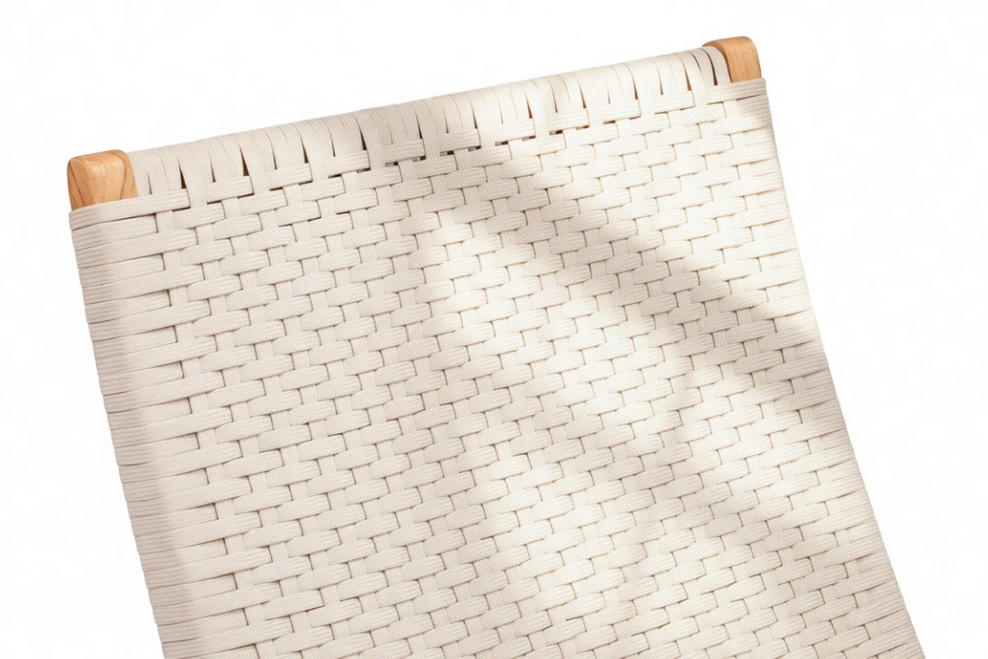Experience the exquisite blend of luxurious teak wood and delicate colored woven elements in our chair. Its graceful curves and smooth edges create a refined and welcoming look.