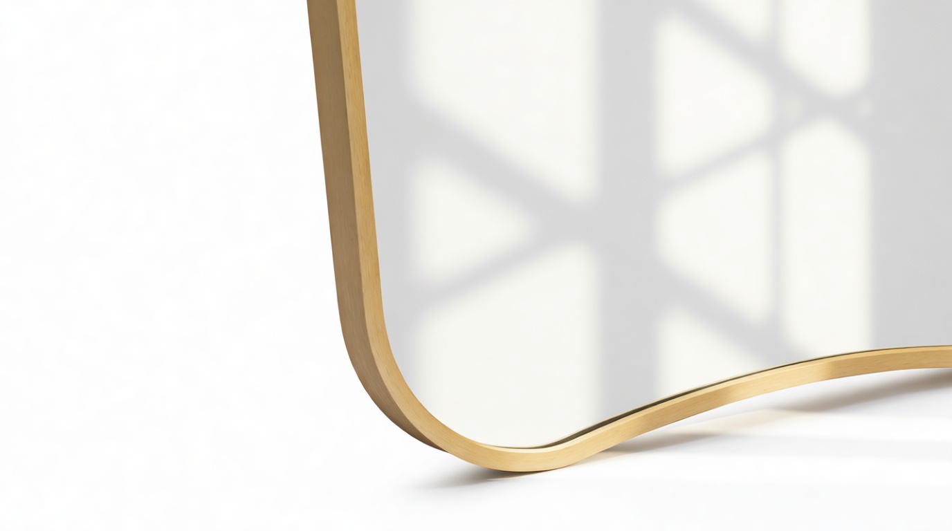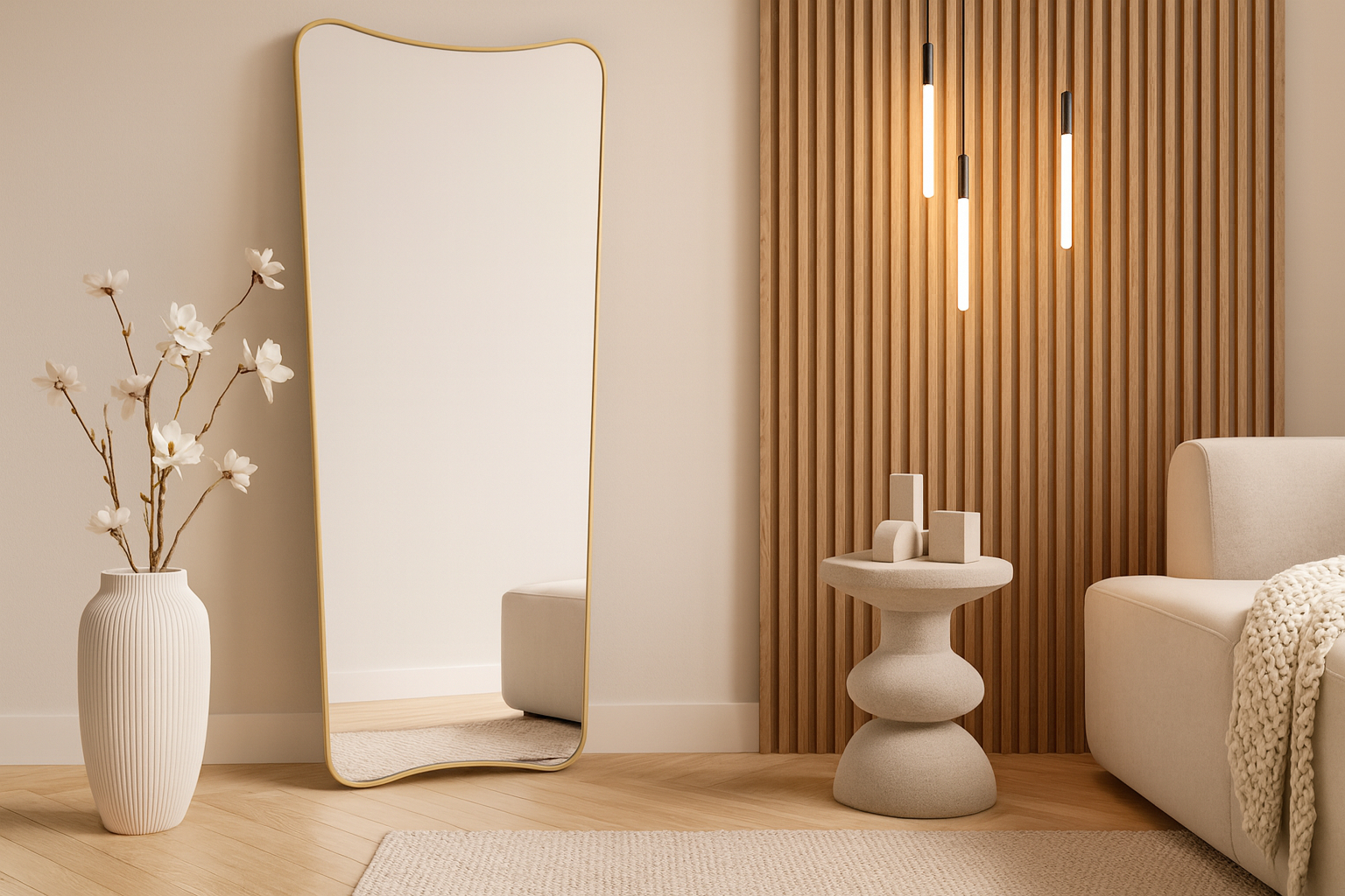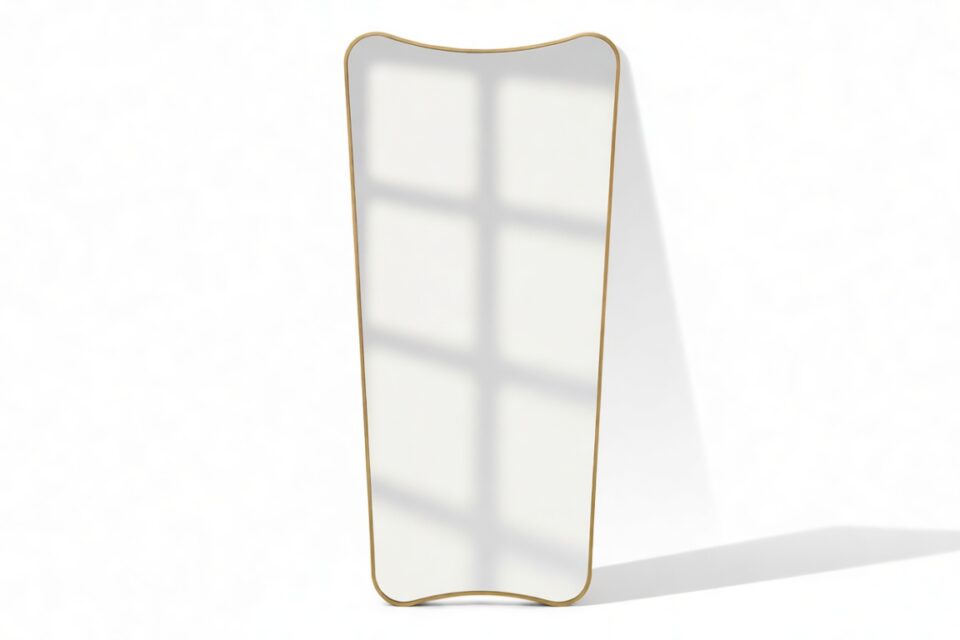 Tall and gracefully curved, the Culmine Floor-Length Mirror leans effortlessly against the wall—opening up space and enhancing natural light. Framed in a slender brass or matte black border, its elongated form adds quiet drama and architectural refinement to bedrooms, living areas, or dressing spaces.
