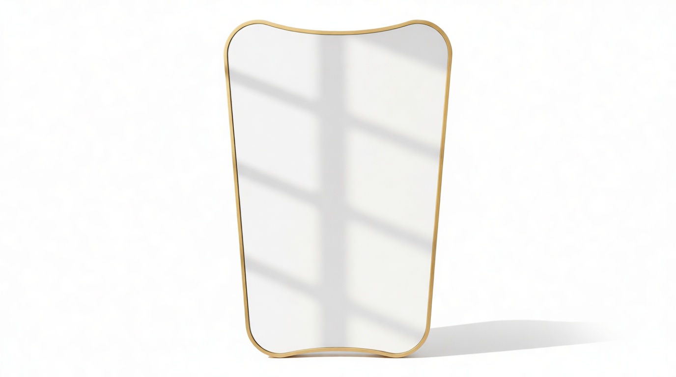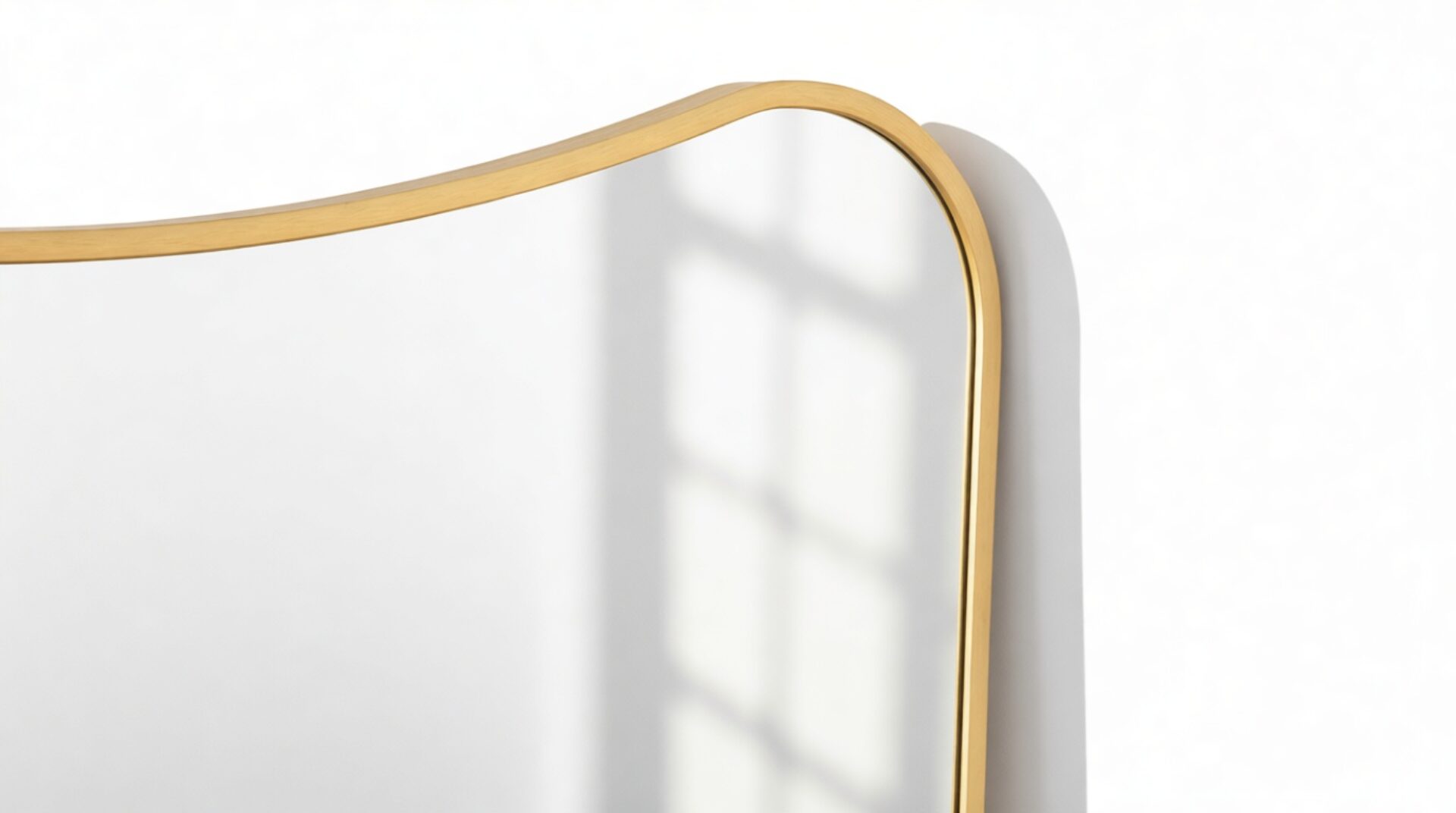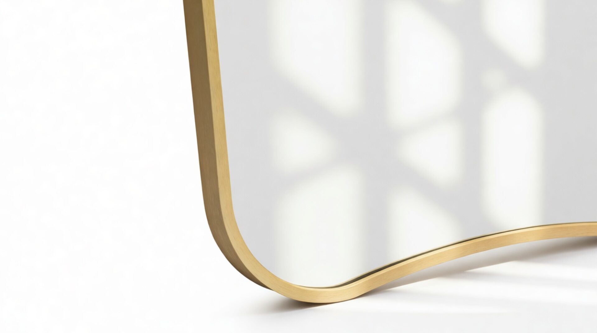 Subtle rounded edges soften the geometric lines, bringing a gentle, organic feel to the mirror’s silhouette.