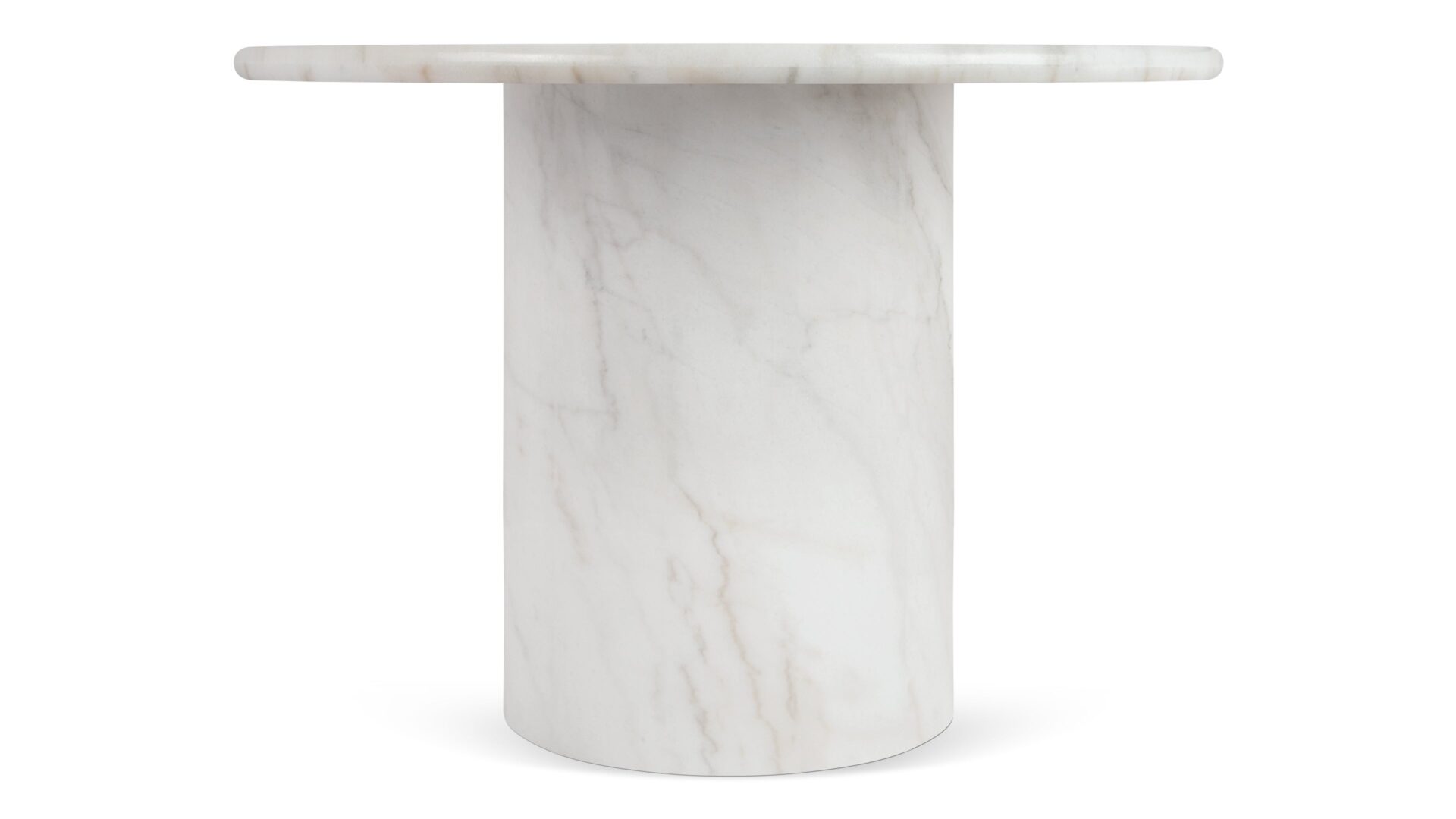 This dining table is designed with a honed finish, providing exceptional durability against stains, scratches, and marks, making it both glamorous and practical for everyday use. The spacious 98” top is supported by two demi-lune column legs, inspired by classical architecture but with a contemporary twist.