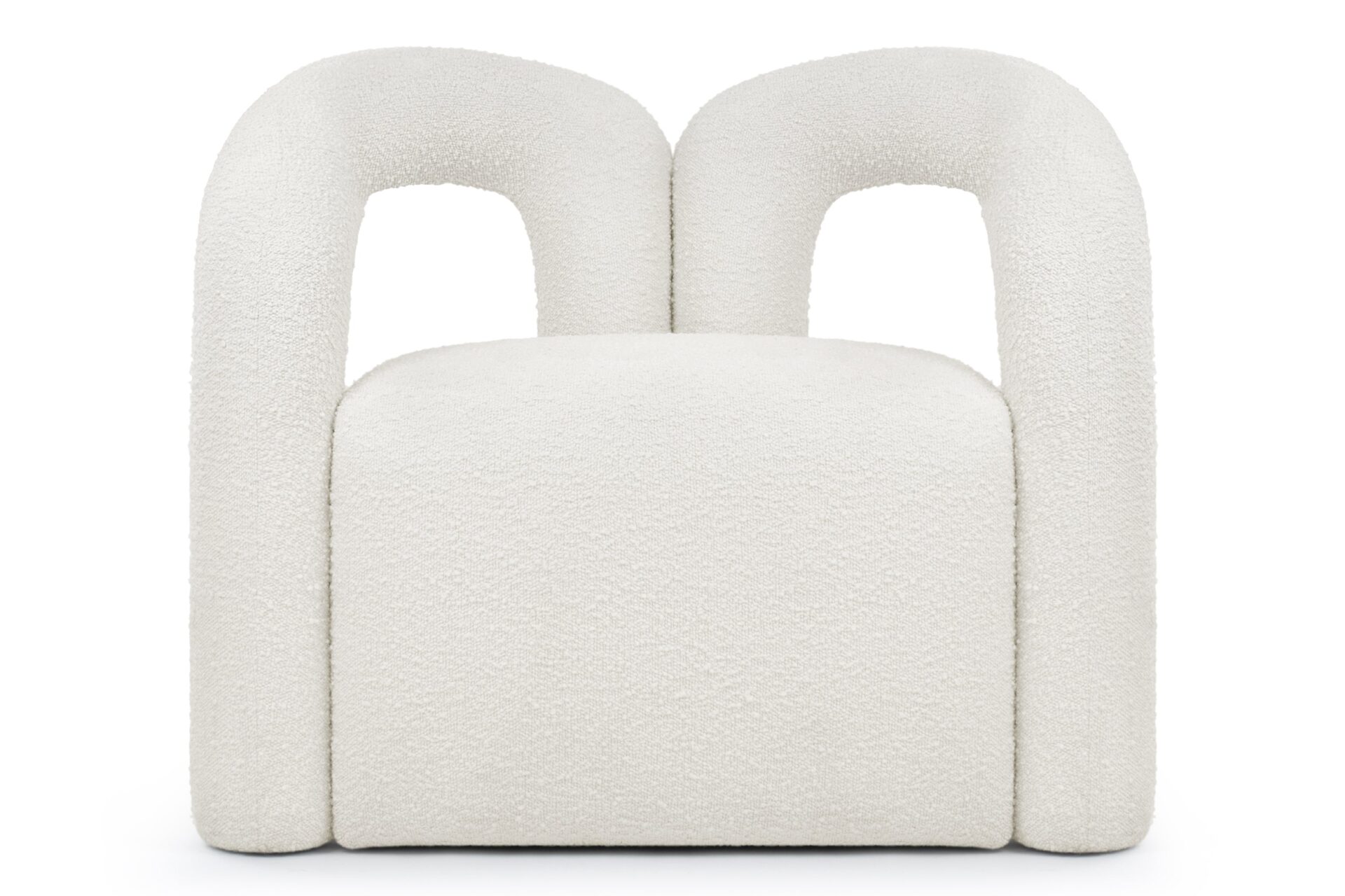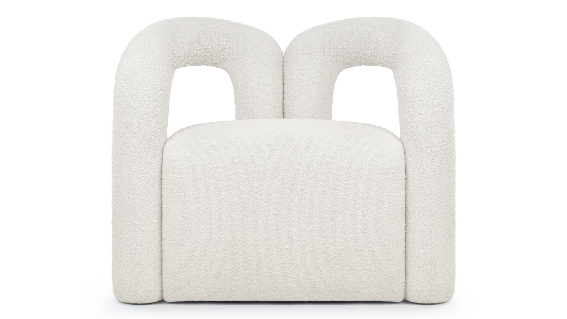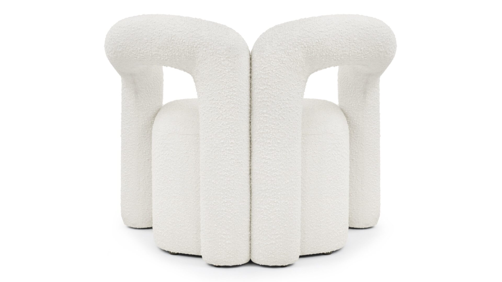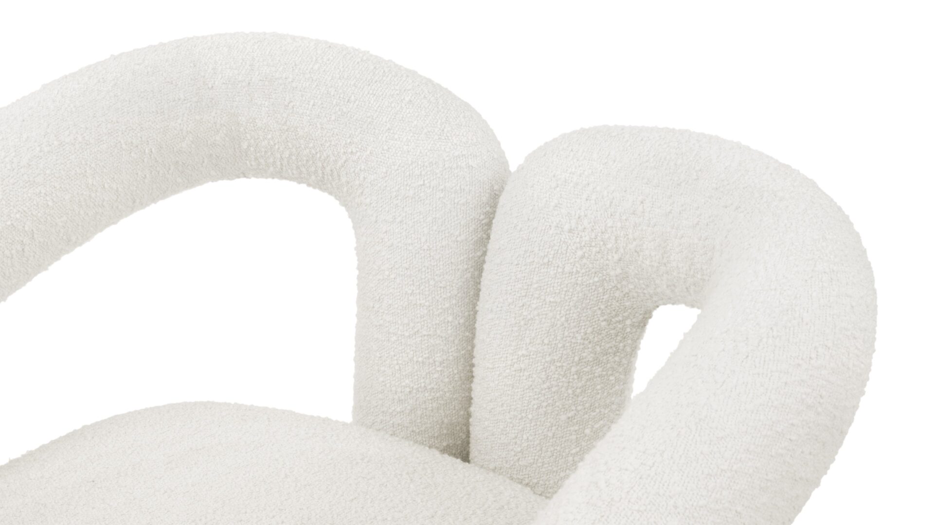Experience the elegance and comfort of the Deux Lounge Chair, showcasing a perfect fusion of modern design and luxury. Upholstered in sumptuous boucle fabric, this chair offers a tactile and plush sensation ideal for unwinding. The inviting warm white hue elevates its desirability, making it a pristine addition to contemporary living spaces. Its unique postmodern tubular structure features broad curved arms and a sculptural silhouette that serves as both a practical lounger and a stylish accent chair, seamlessly complementing refined and understated décor styles. Stand out with the Deux Lounge Chair - a chic seating solution and a conversation starter in any setting.