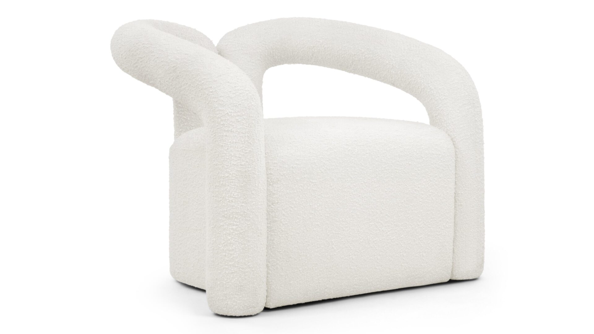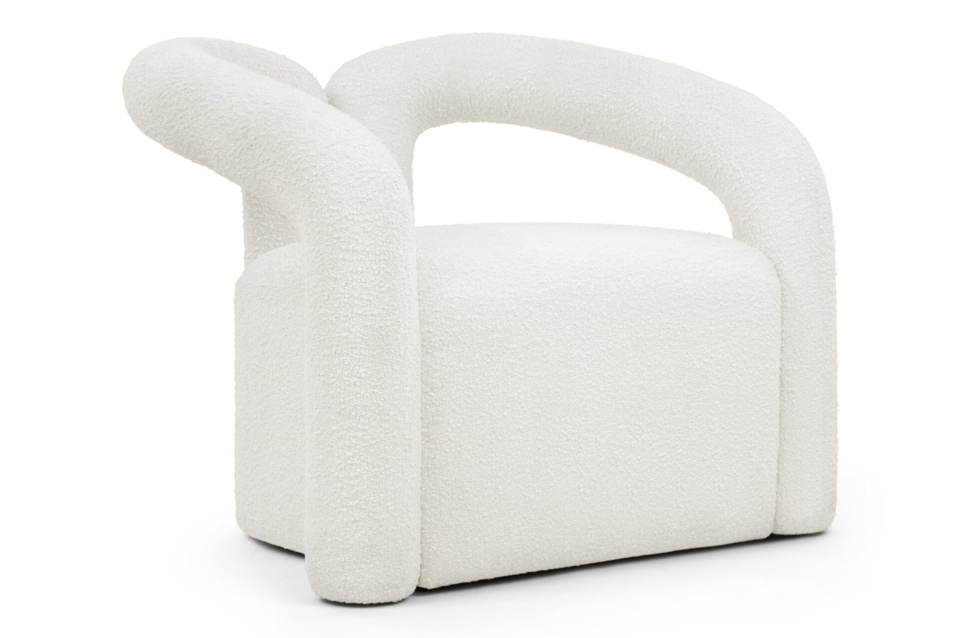 Indulge in the luxury and modern sophistication of the Deux Lounge Chair, a chic seating solution that is both elegant and comfortable. Upholstered in sumptuous boucle fabric, this chair offers a plush sensation ideal for relaxing. The warm white hue and postmodern tubular structure with broad curved arms make it a stylish accent that stands out in any contemporary living space, elevating the aesthetic appeal of the room effortlessly.
