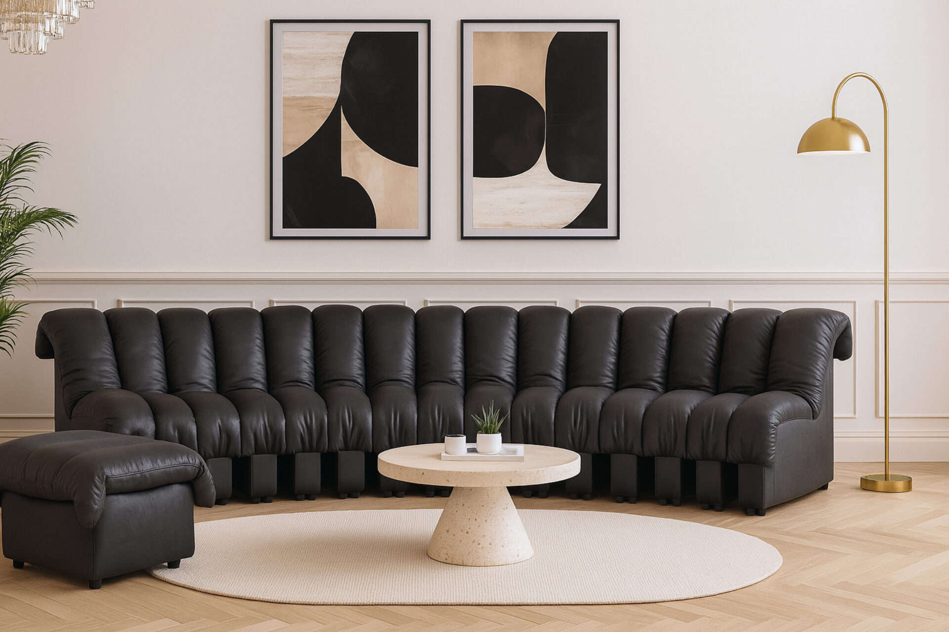 Unleash the allure of the DS 600 Sofa, an iconic piece that exudes boldness and elegance. Perfect for creating a conversation-starter in any room, its modular design elevates your space to an artistic realm. Crafted with meticulous precision and available in luxurious Black Vegan Leather, this masterpiece encapsulates comfort and style, making it a timeless focal point in your home.