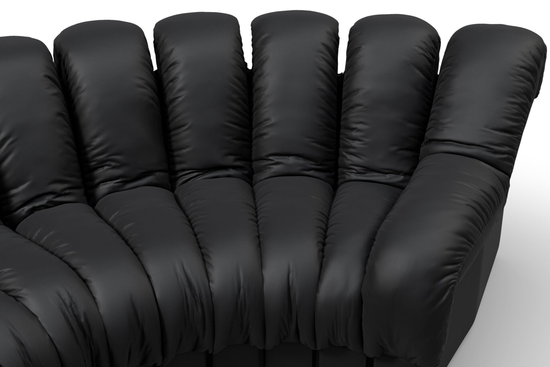 Elevate your space with the DS 600 Sofa, a timeless masterpiece with bold proportions and sleek lines that invoke innovation and craftsmanship, inspired by the 1970s. The striking black vegan leather upholstery exudes elegance and luxury, offering unparalleled comfort and versatility. Redefine your living area with this architectural marvel that embodies artistic expression and design integrity.