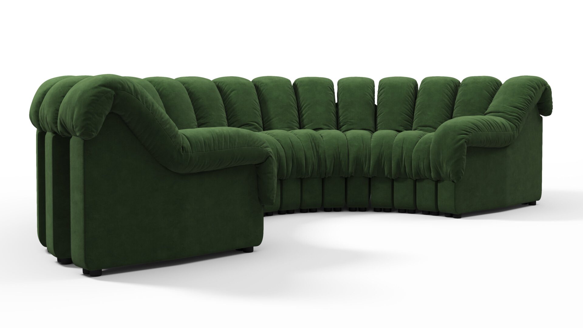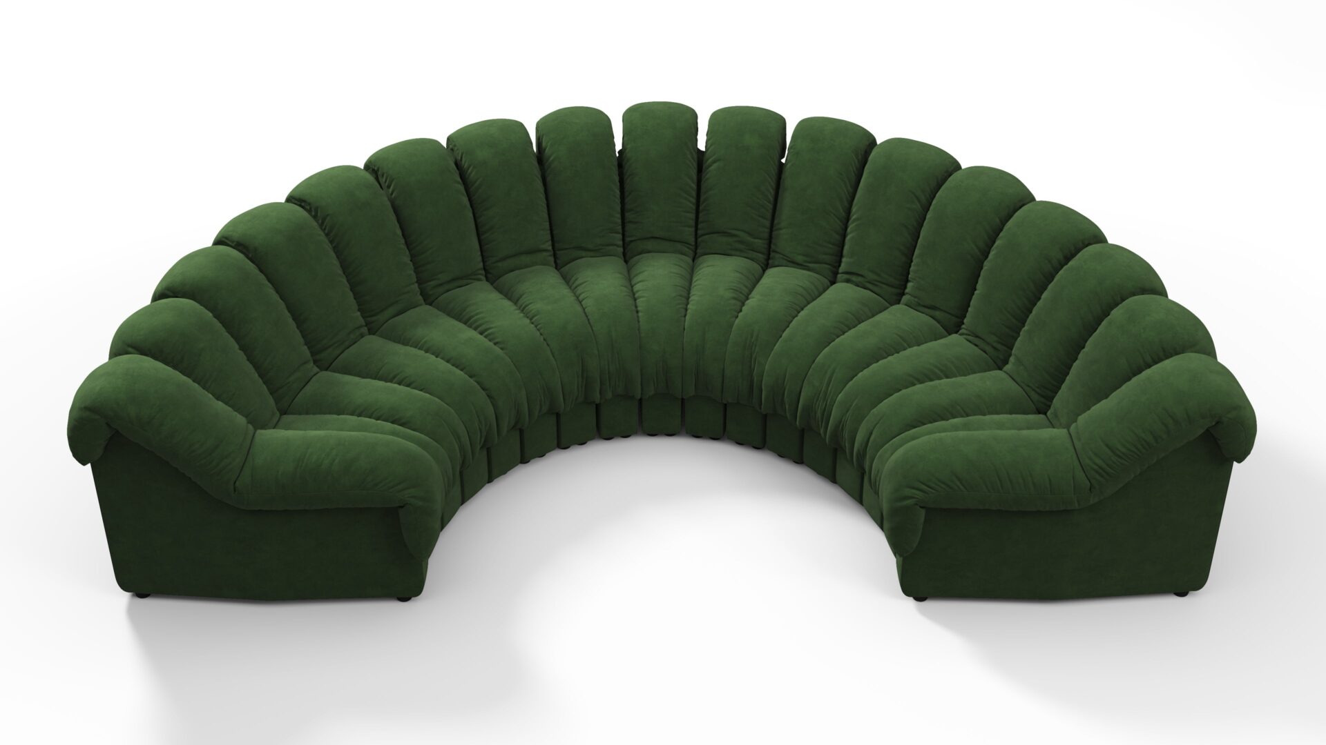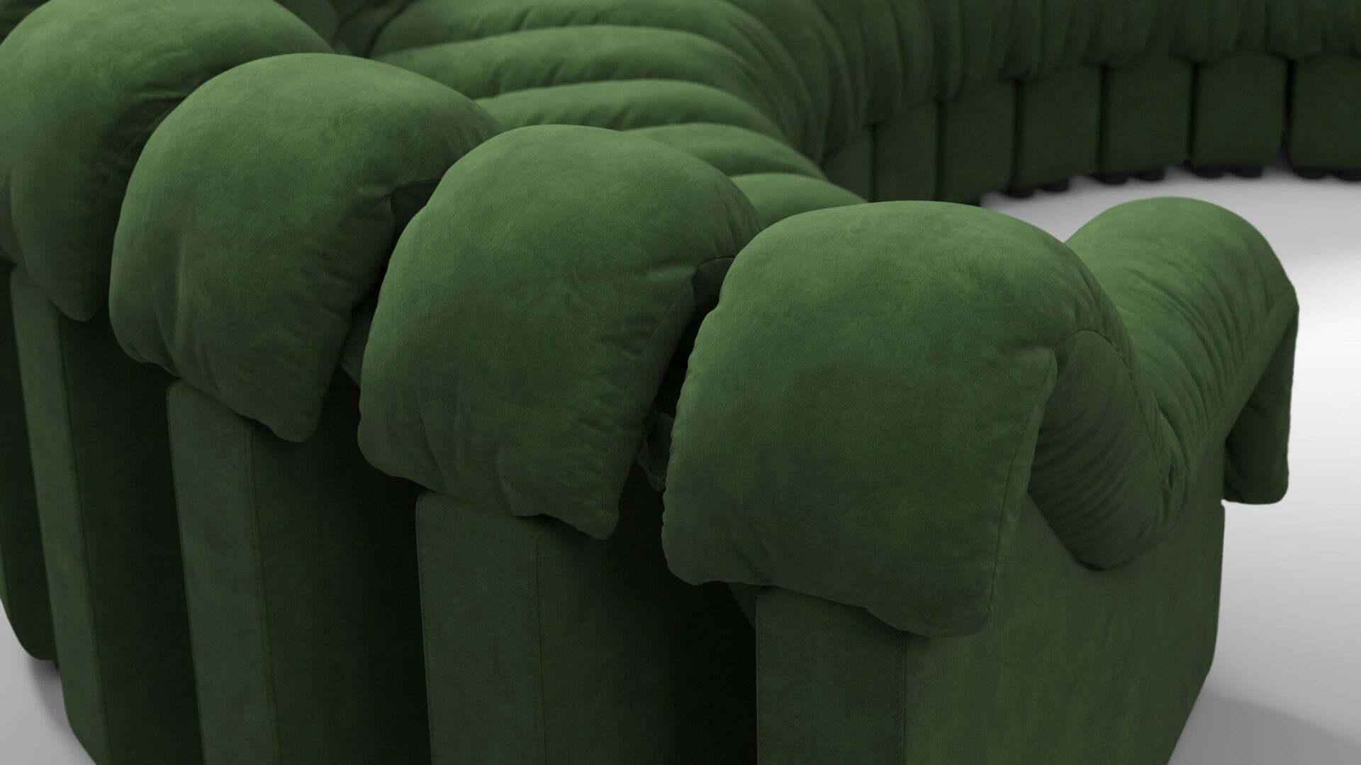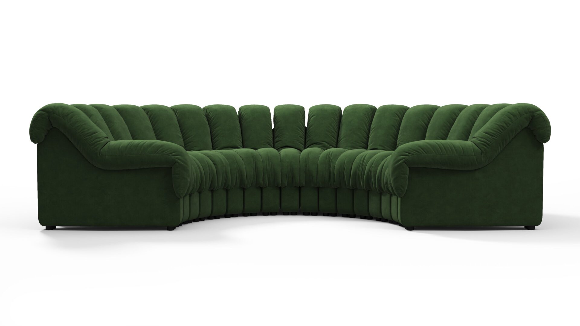 Elevate your space with the DS 600 Sofa, a striking masterpiece that embodies visionary craftsmanship and bold 1970s-inspired design. Infinitely versatile, this architectural marvel reinvents modular seating, offering boundless possibilities for customization. Luxuriously upholstered in Tarragon Vegan Suede, this sofa exudes elegance and comfort, making it the perfect centerpiece for your living area.