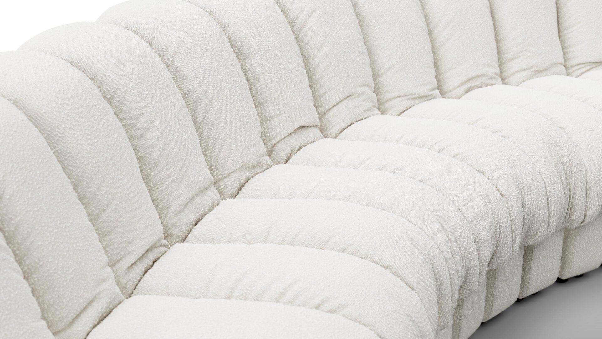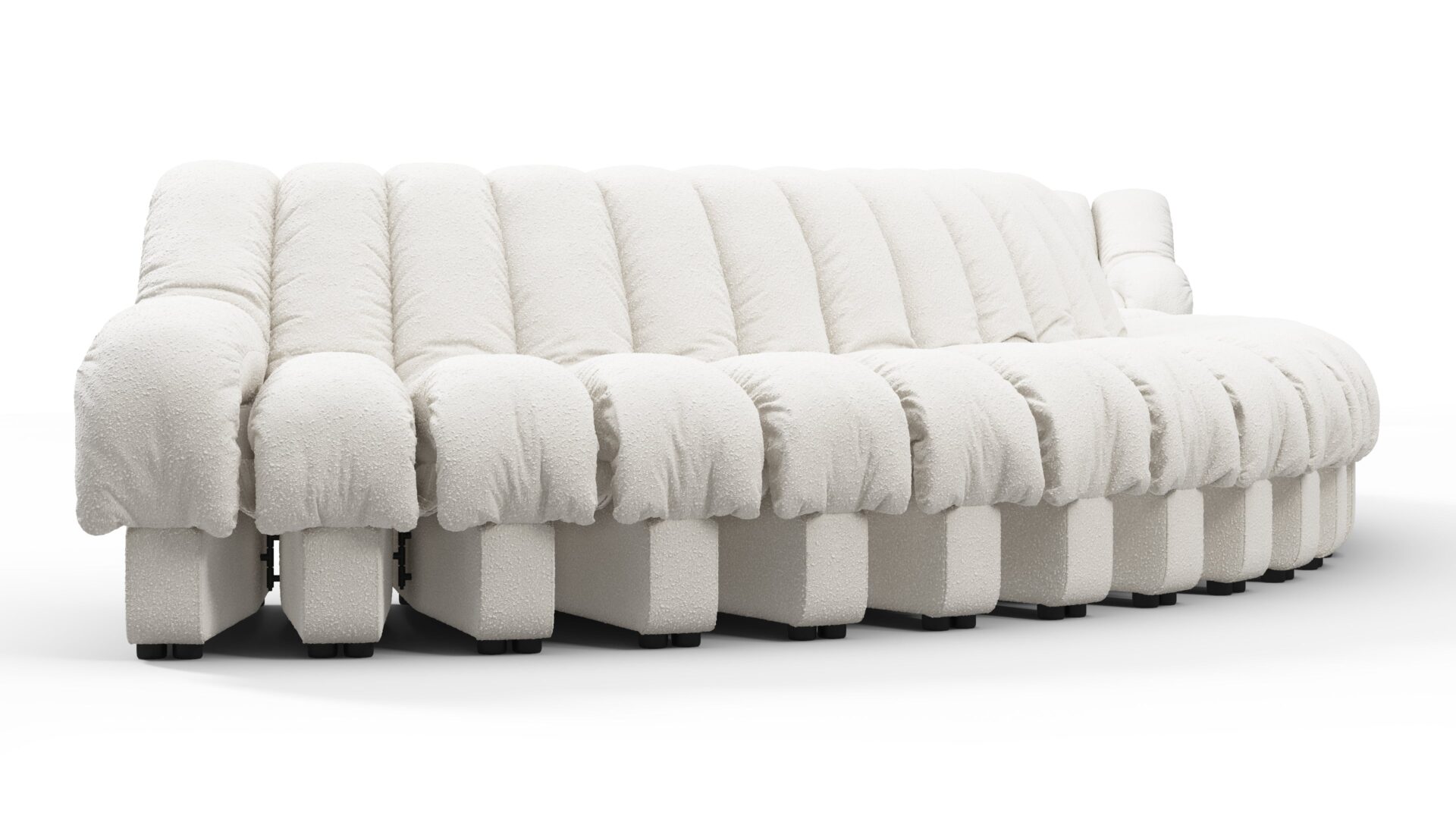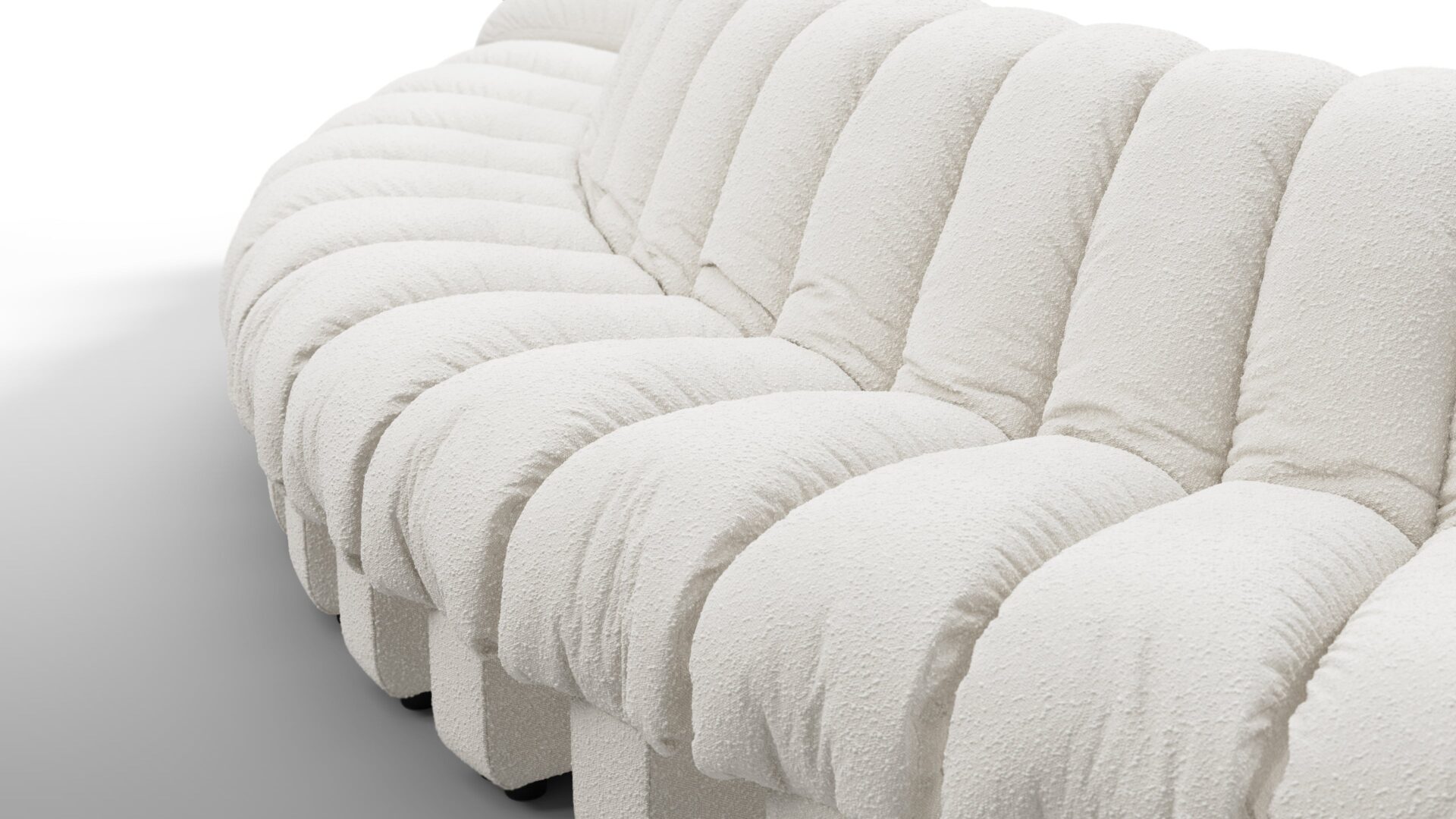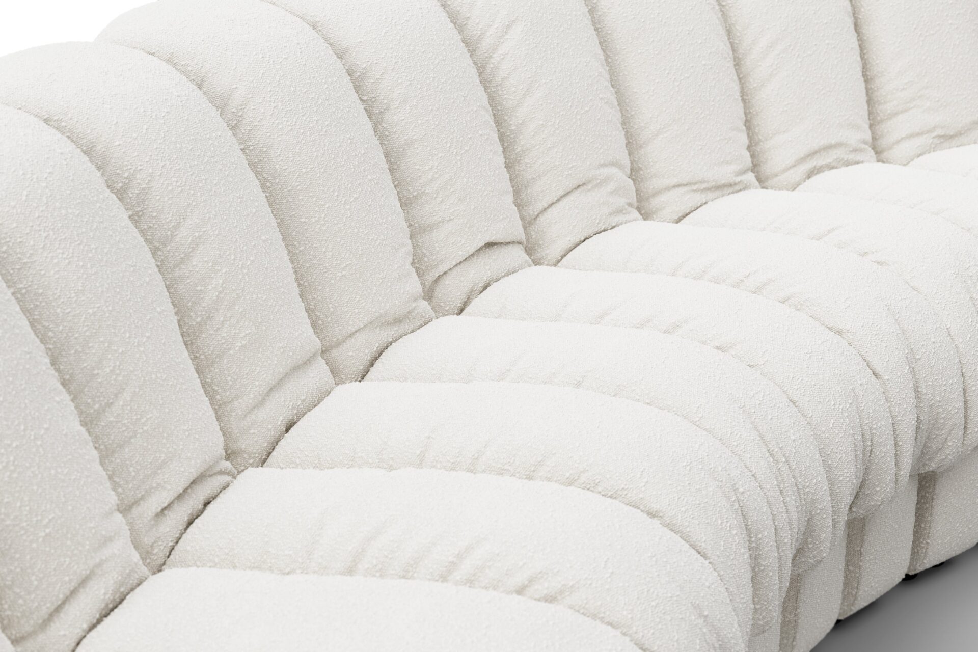 Unveil the style and sophistication of the DS 600 Sofa, a timeless masterpiece that commands attention with its bold proportions and sleek lines. This stunning white boucle variation adds an elegant touch, elevating any space with its innovative design that transcends trends to become a focal point of artistic expression. Craft your living area into a personalized oasis of comfort and style with this versatile and luxurious seating piece.