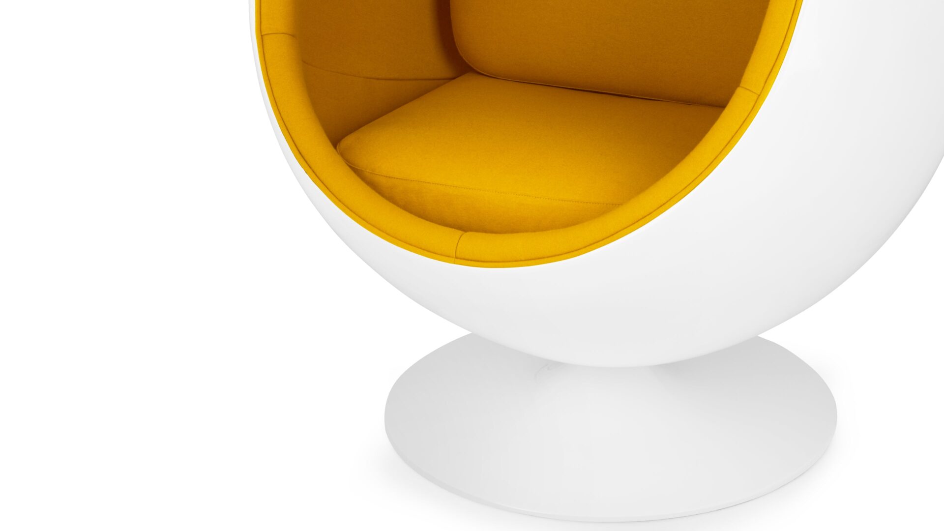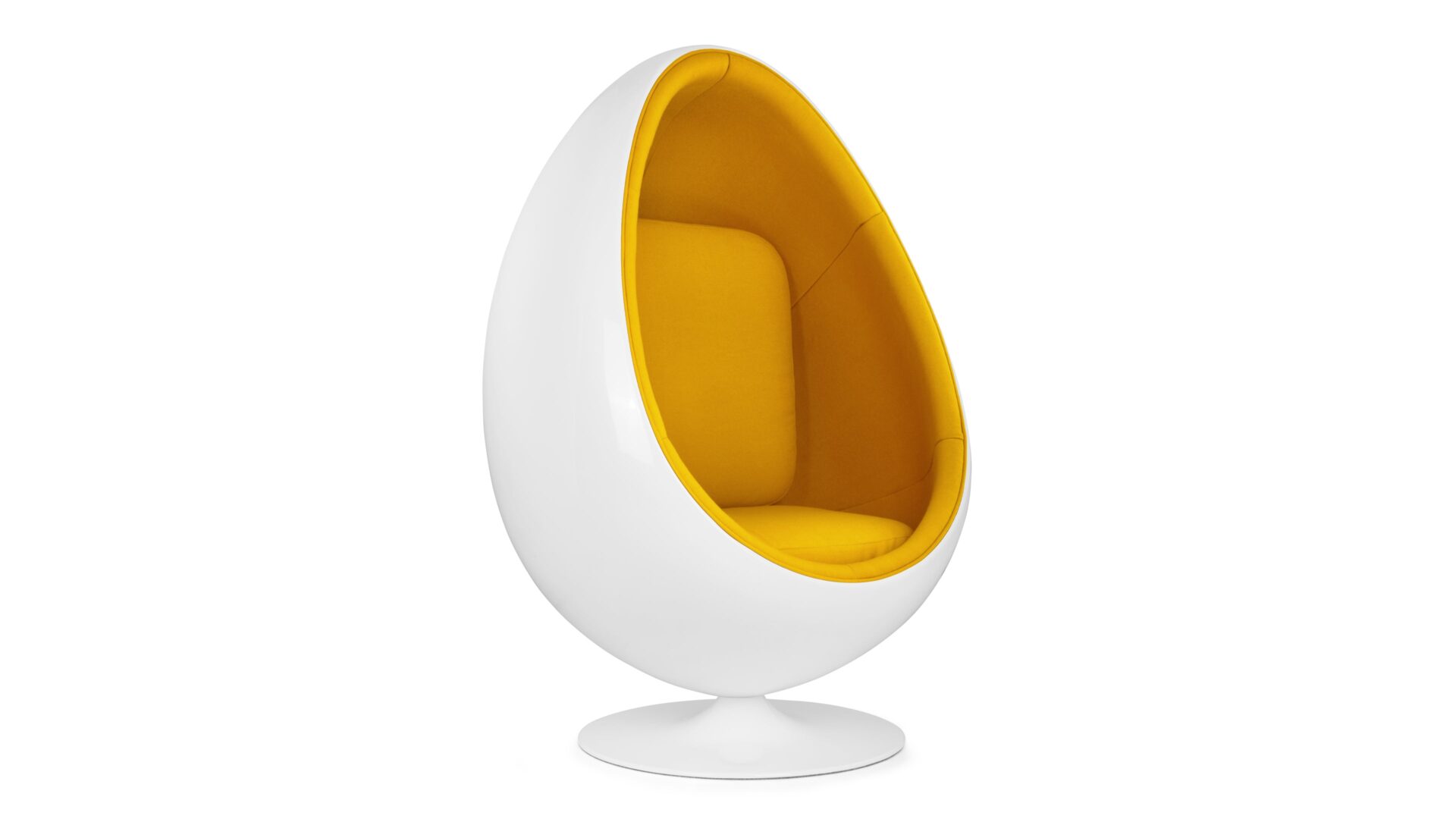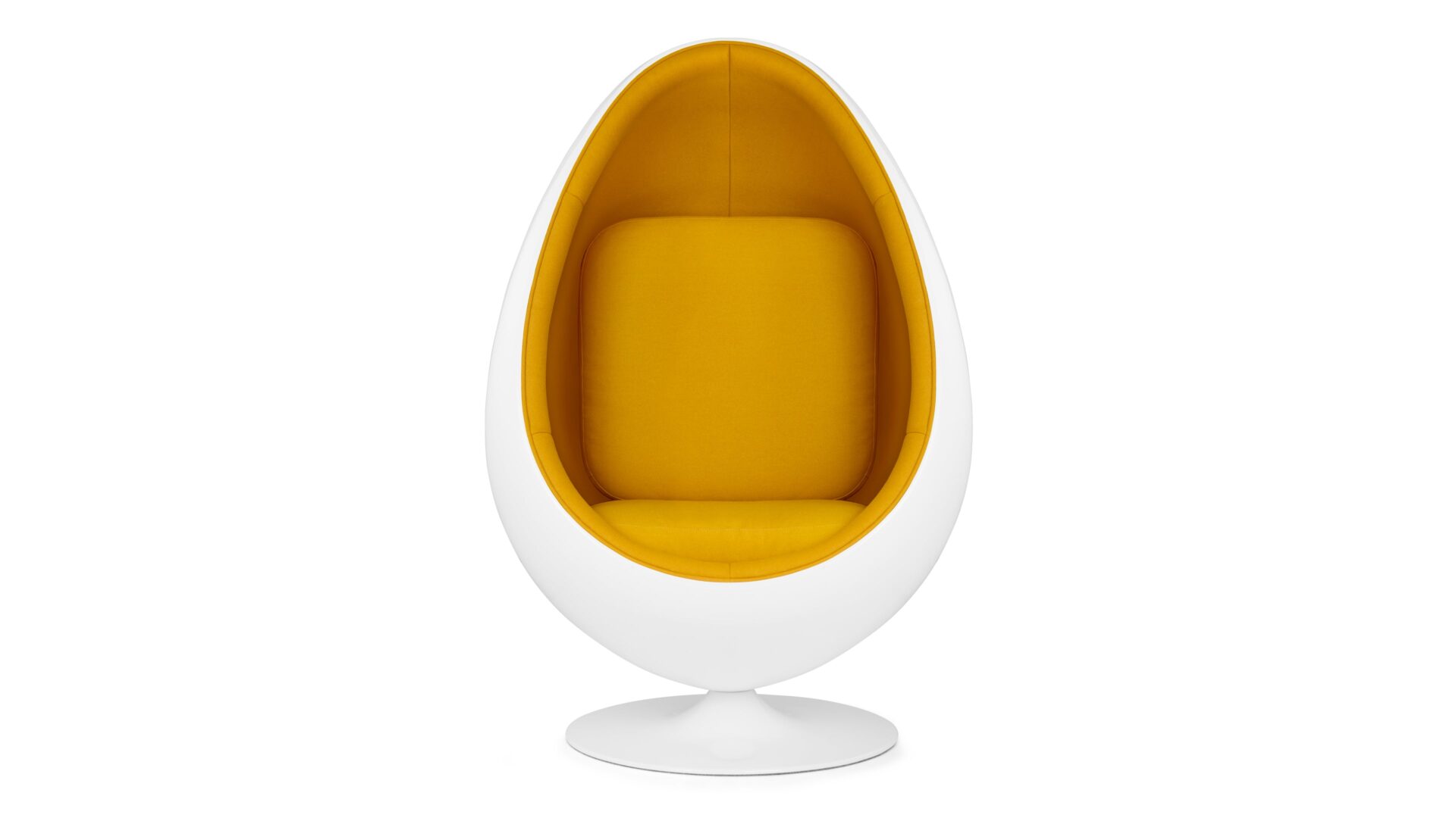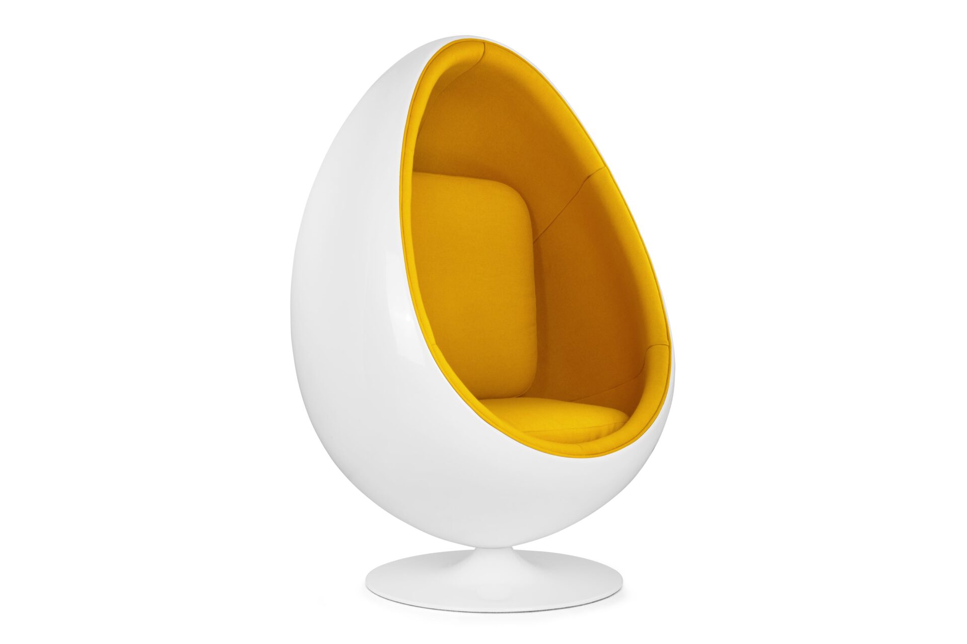 Experience the perfect blend of 60s-inspired design and modern comfort with The Egg Pod Chair. Featuring deep, interior curves and a vibrant color, all enclosed within a smooth fiberglass shell, this chair effortlessly combines retro charm with contemporary elegance. The chair effortlessly swivels on a weighted base, marrying functionality with its iconic aesthetic. Choose from a range of bold options where the interior color beautifully contrasts against the sleek white casing.
