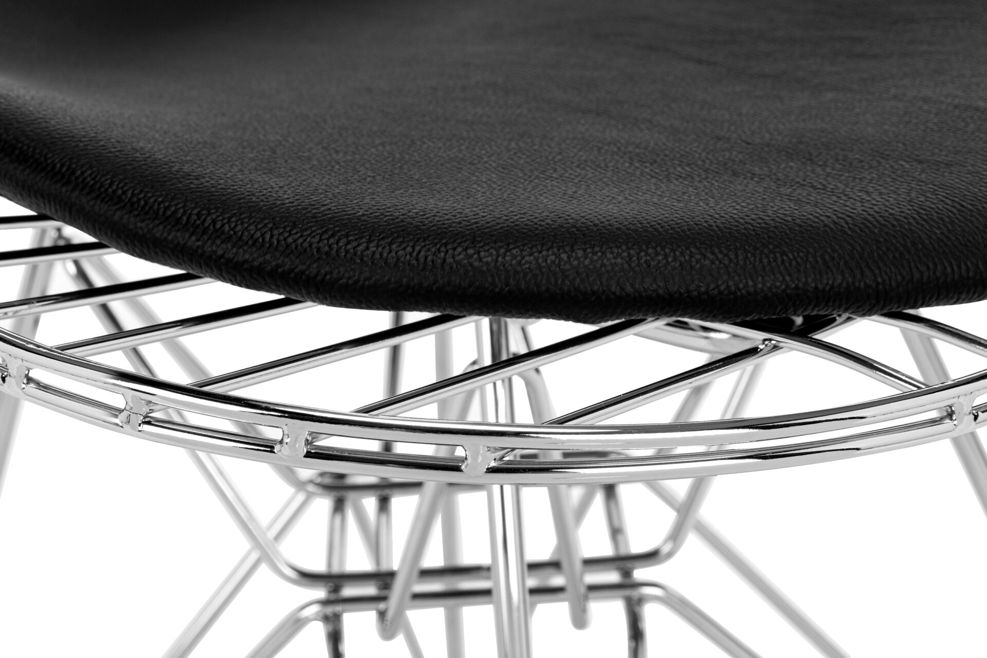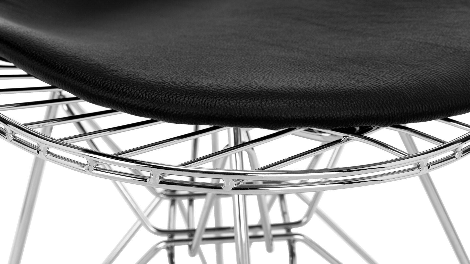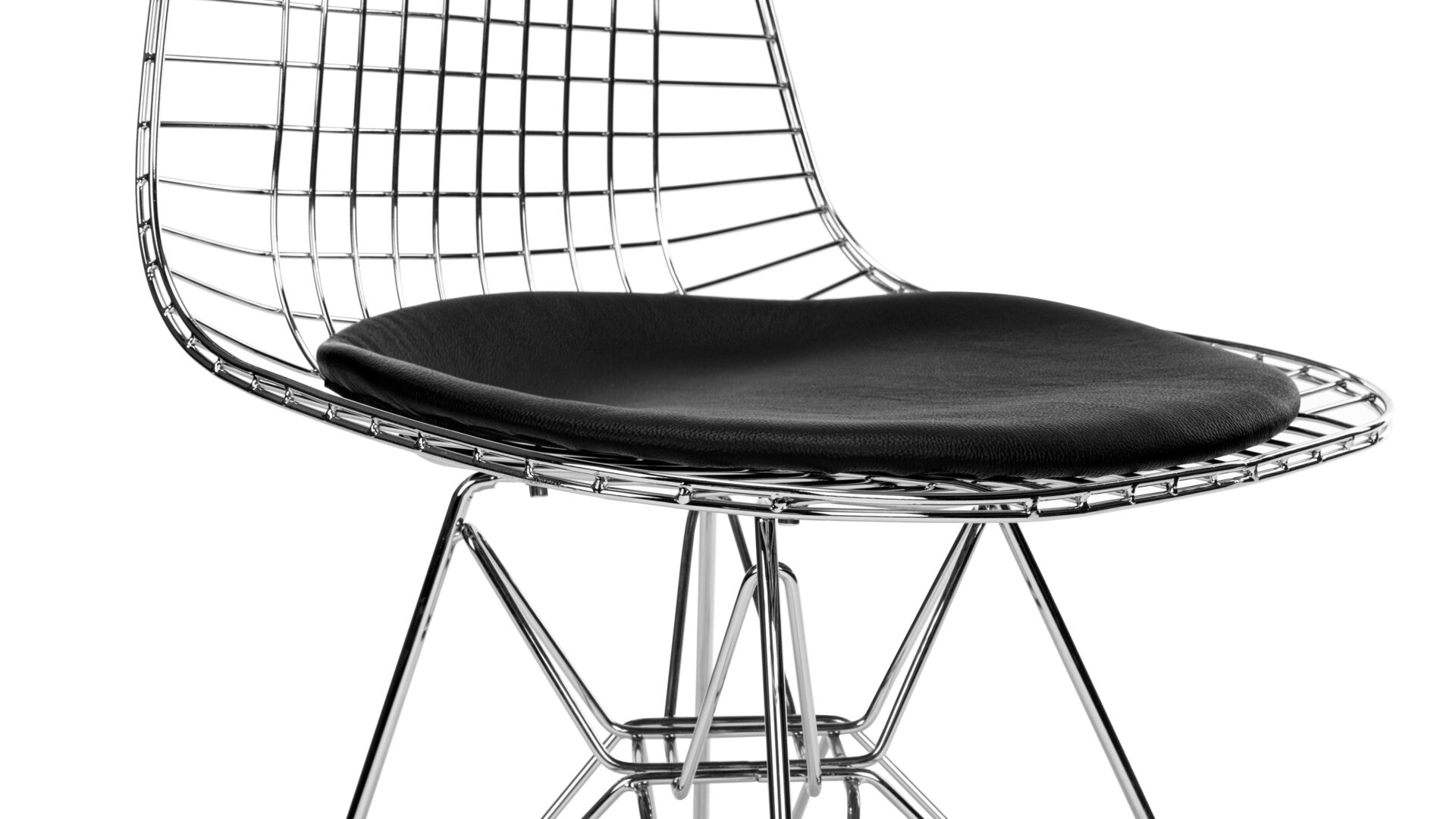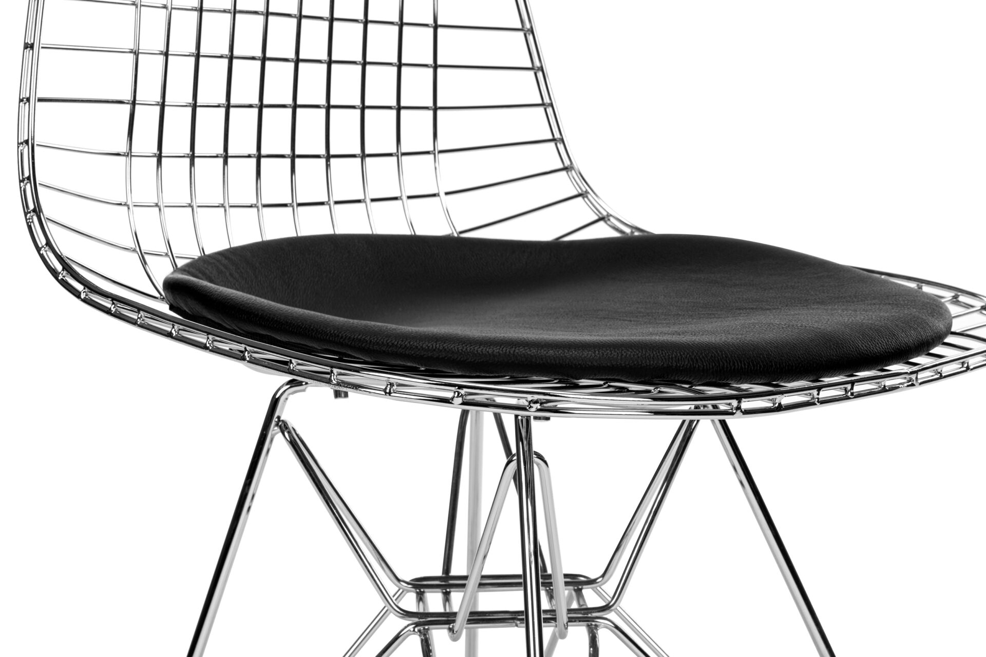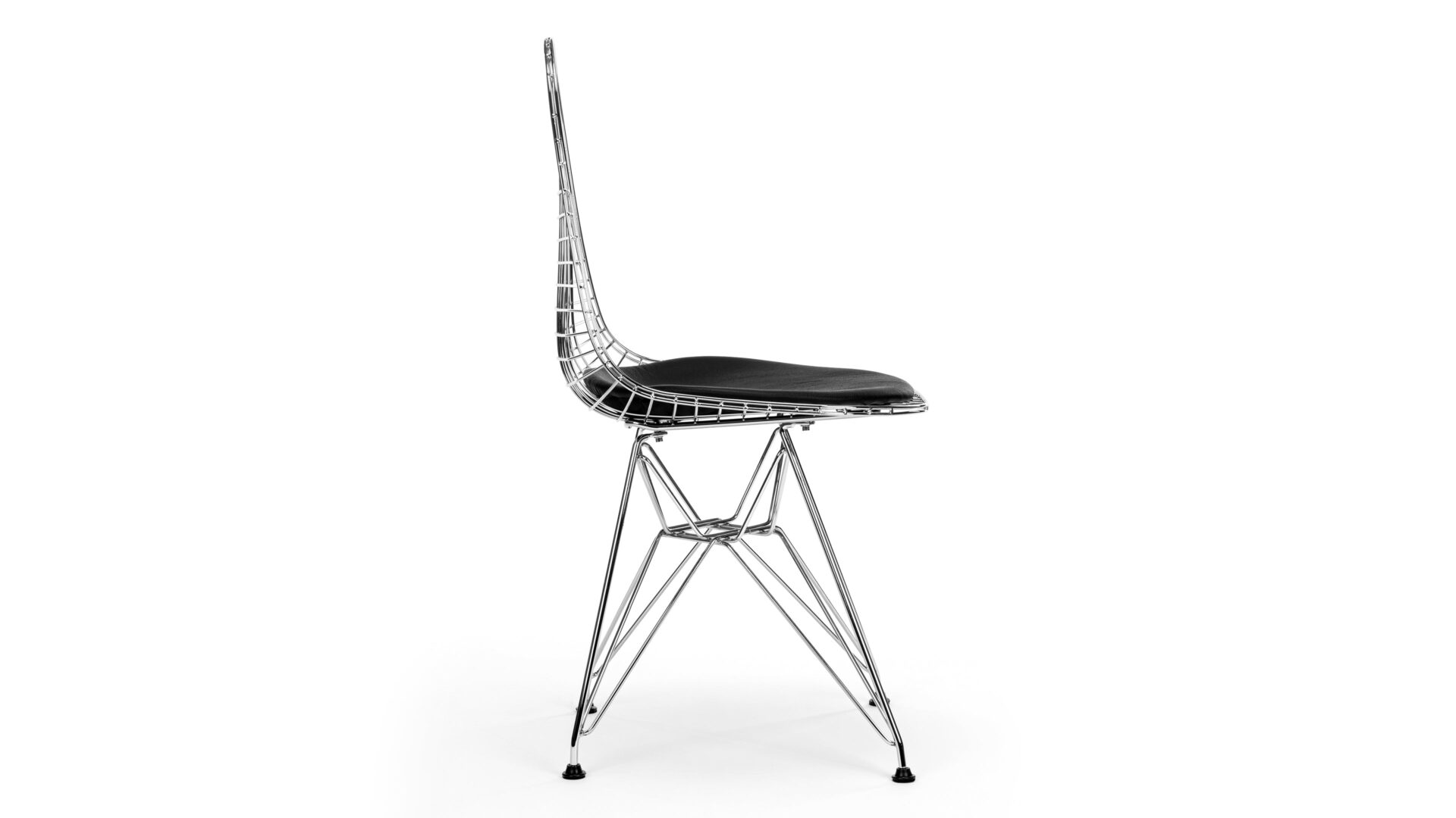 Crafted with precision-welded steel forming the ergonomic wire frame, the Eiffel Wire Chair seamlessly combines engineering excellence with style. Enhanced with a classic leather seat for ultimate comfort, this chair is cherished for its innovative design and timeless appeal.