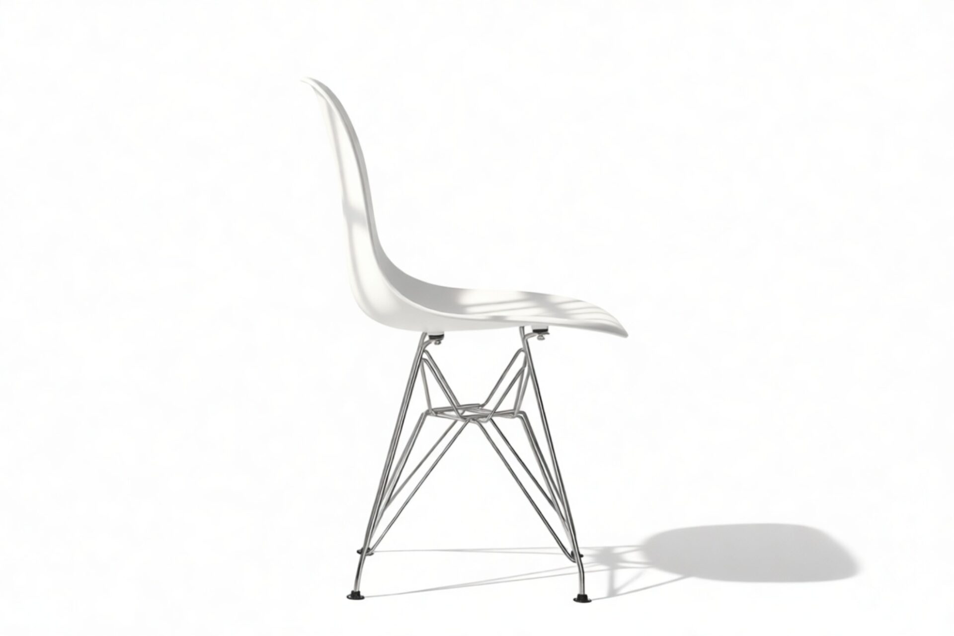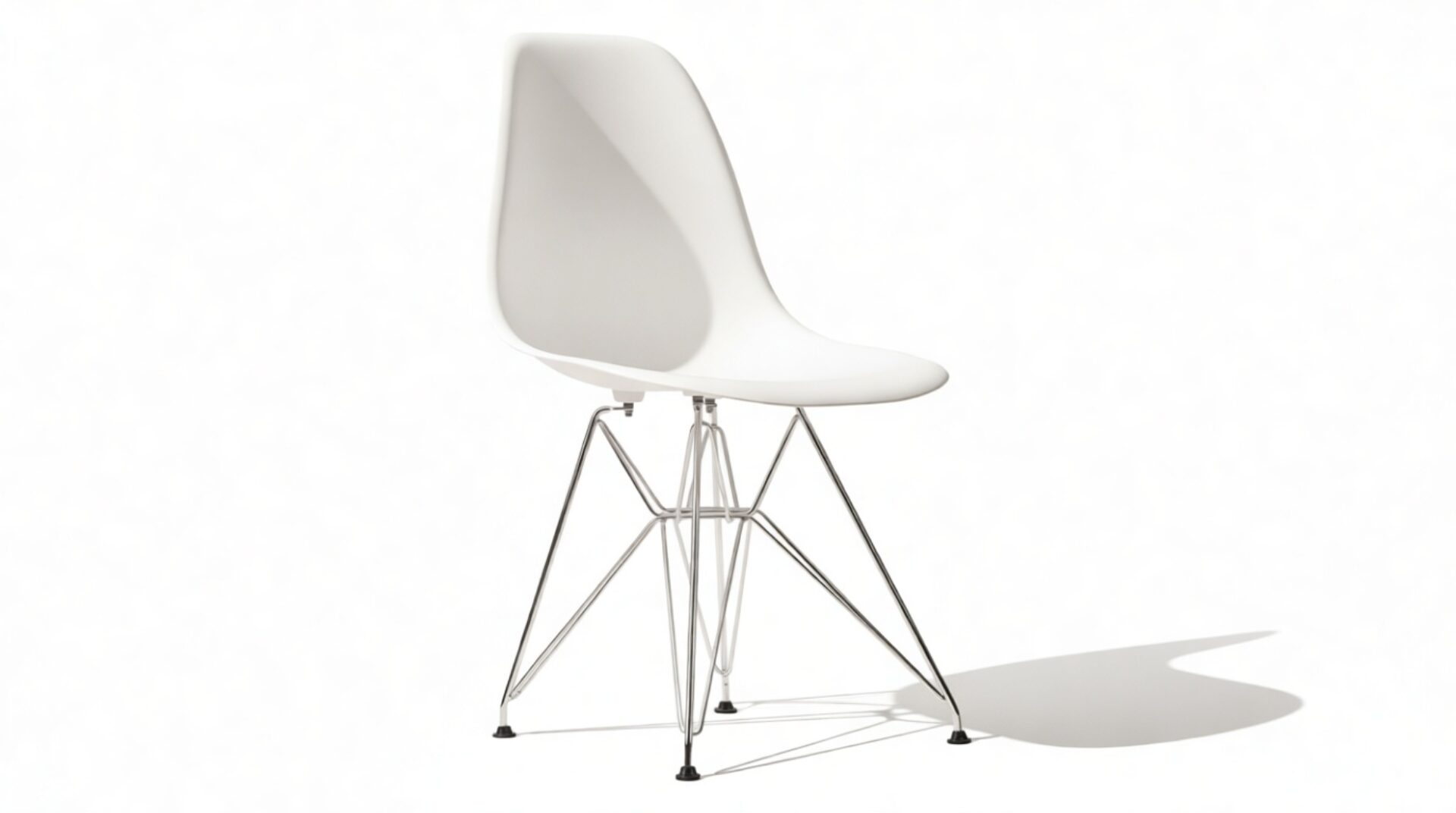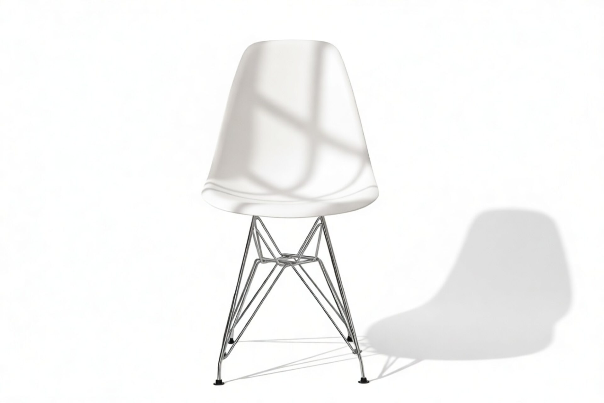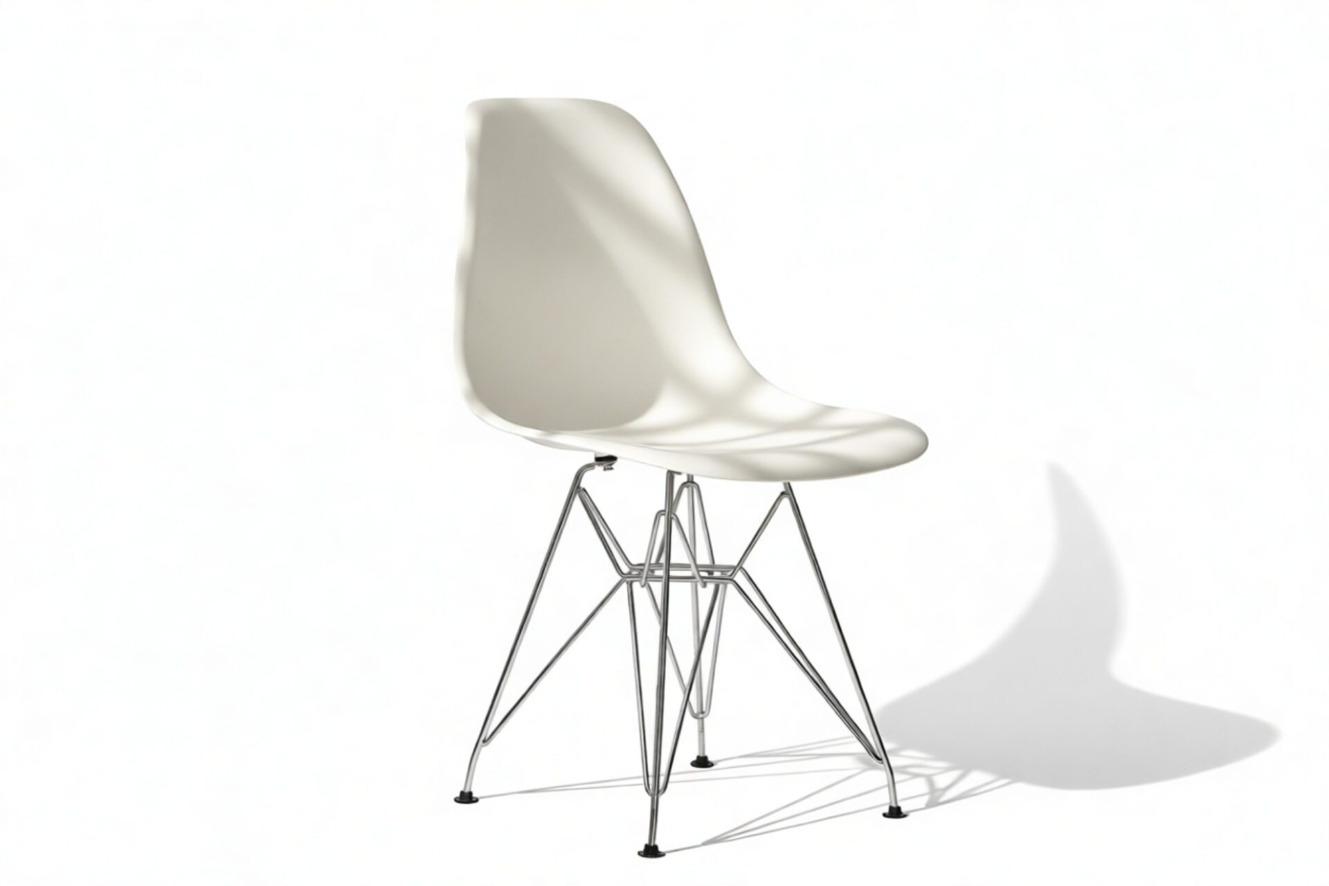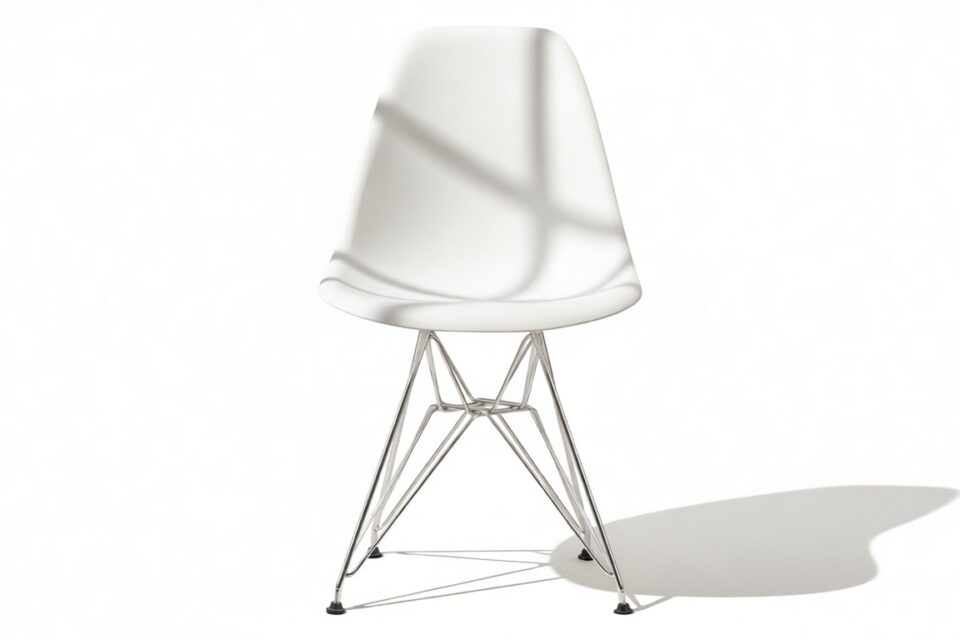Celebrate modern design with this iconic chair that seamlessly combines form and function, captivating design enthusiasts and homeowners alike. The Eiffel Chair remains a timeless masterpiece, renowned for its sculptural, organic silhouette. Featuring a unique base inspired by the Eiffel tower, crafted from chrome-finished steel wires, this chair brings an architectural touch to any room.