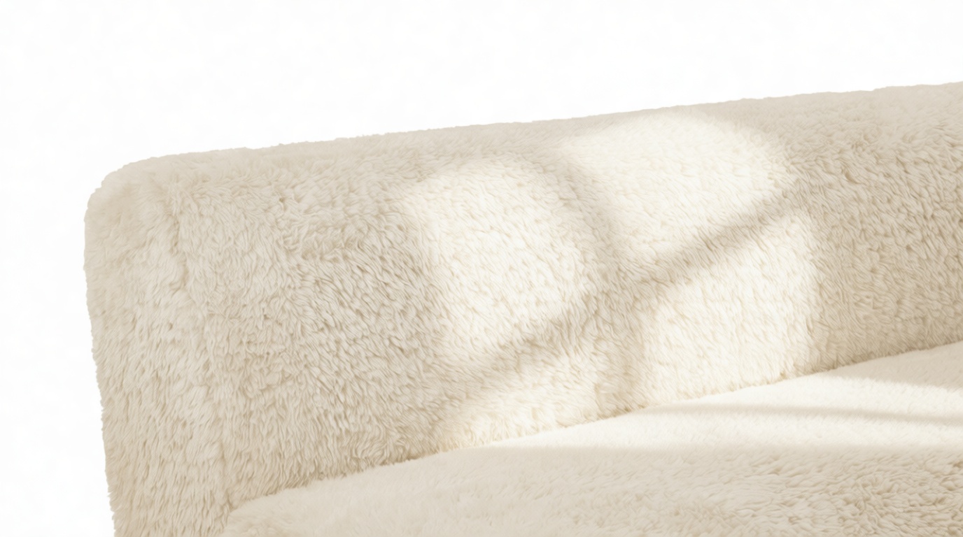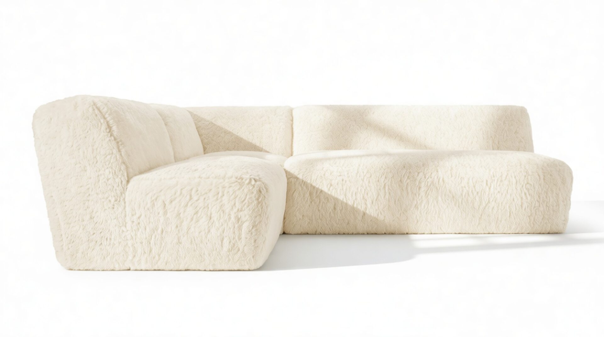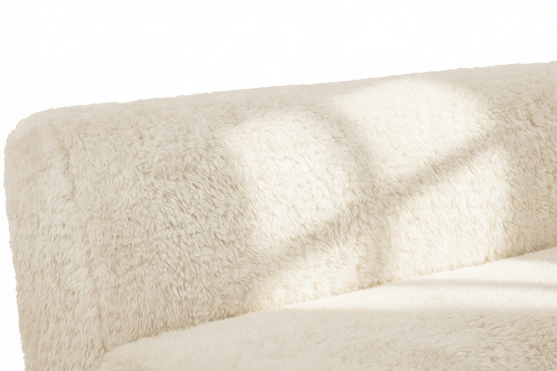Indulge in luxurious comfort with the meticulously crafted Eilidh Sectional. Upholstered in faux sheepskin, this sumptuous material offers a soft touch that exudes warmth. The sectional's elegant light cream tone emanates sophistication and minimalism, effortlessly complementing a variety of décor styles.