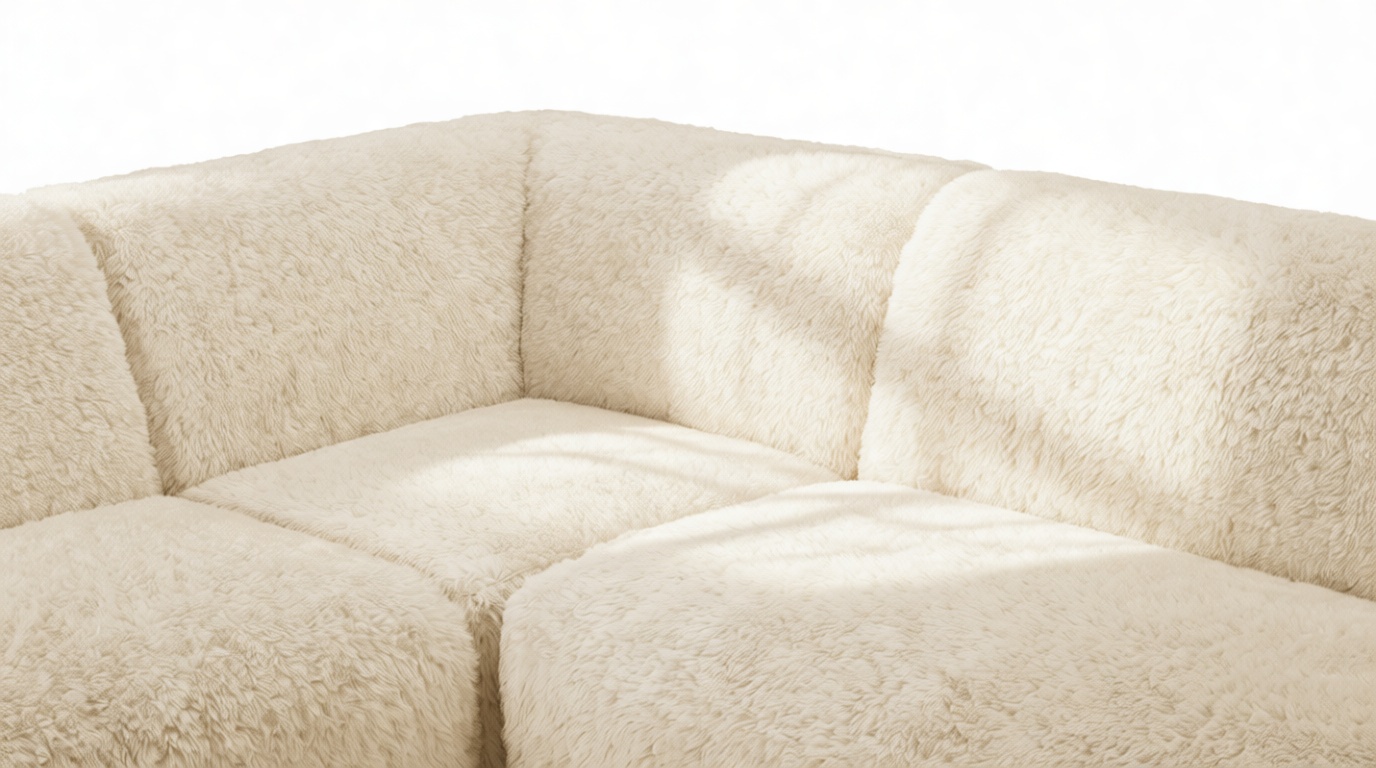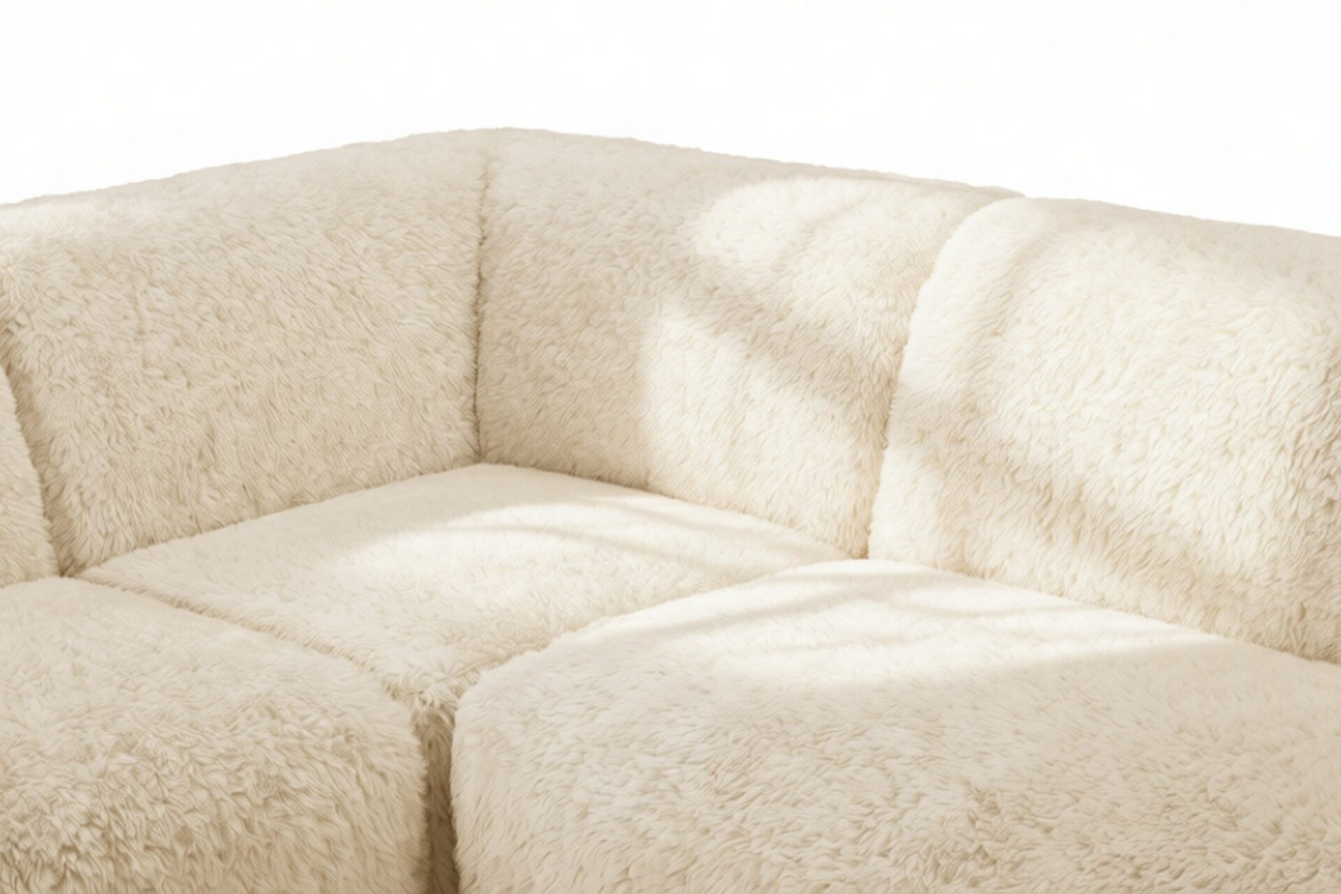 Combining both comfort and practicality, this sectional is crafted with thick padding and soft textures, making it an ideal spot for relaxation and lounging. The faux sheepskin material exudes warmth, while its minimalist look seamlessly pairs with modern or eclectic decor styles. Whether as a focal point in a room or as part of a larger layout, the Eilidh Sectional Collection makes a bold statement in both style and comfort.