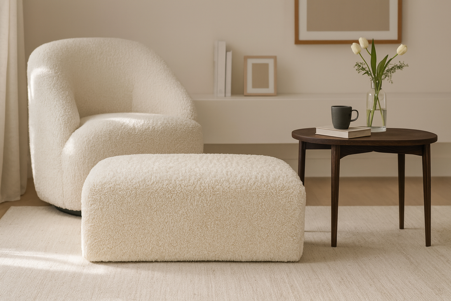 Elevate your living space with the Eilidh Sectional Collection – a luxurious blend of style and comfort. Crafted with sumptuous faux sheepskin upholstery and a sleek design, this customizable sectional offers deep seats and plush cushioning for unmatched relaxation. Its light cream color and modern silhouette effortlessly enhance any interior, creating a bold statement of sophistication and comfort.