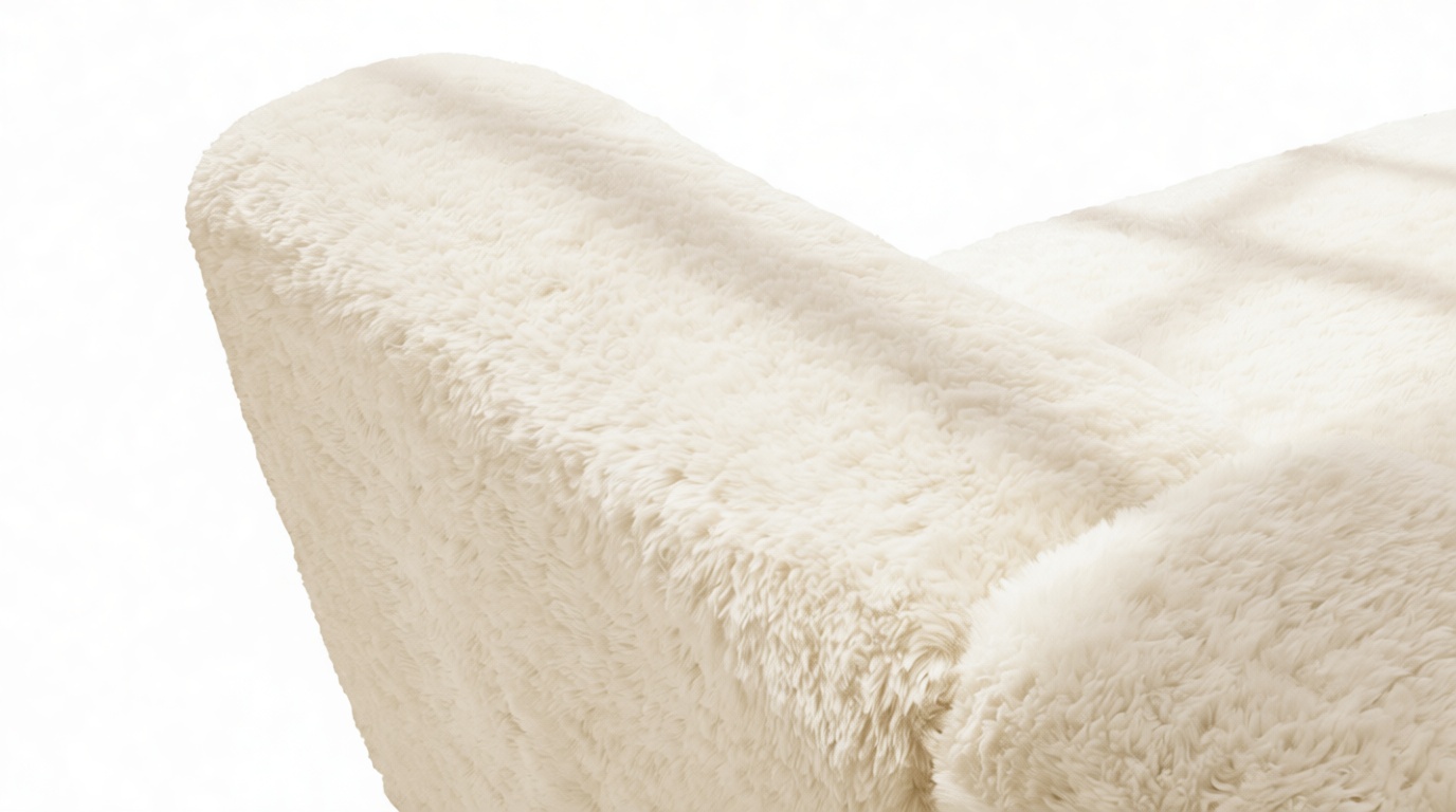 Indulge in luxurious comfort with the meticulously crafted Eilidh Sectional. Upholstered in faux sheepskin, this sumptuous material offers a soft touch that exudes warmth. The sectional's elegant light cream tone emanates sophistication and minimalism, effortlessly complementing a variety of décor styles.