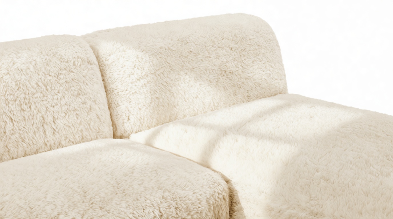 Combining both comfort and practicality, this sectional is crafted with thick padding and soft textures, making it an ideal spot for relaxation and lounging. The faux sheepskin material exudes warmth, while its minimalist look seamlessly pairs with modern or eclectic decor styles. Whether as a focal point in a room or as part of a larger layout, the Eilidh Sectional Collection makes a bold statement in both style and comfort.