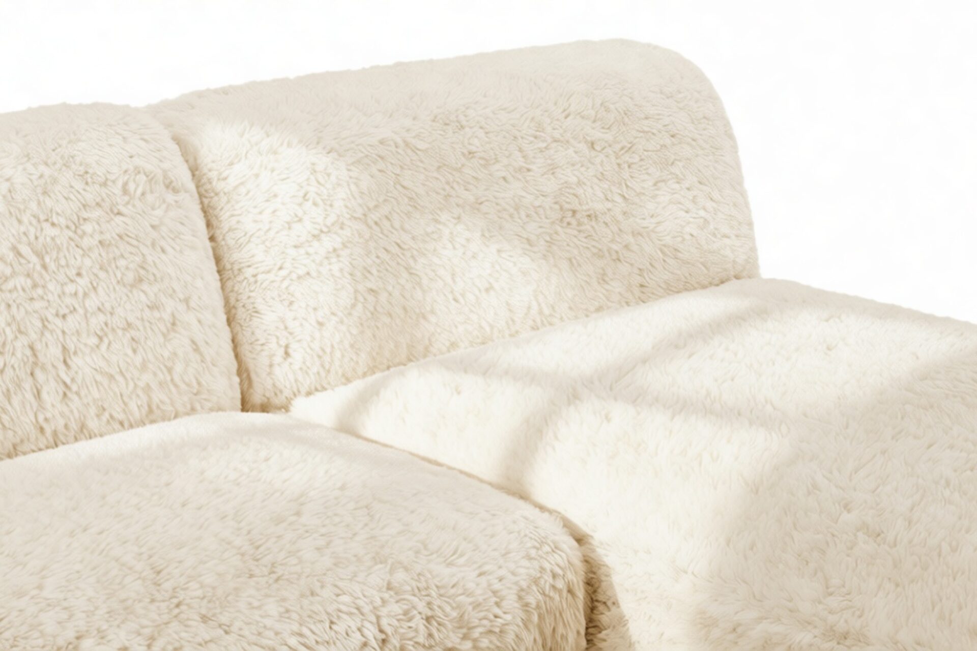 Discover the ultimate luxury of the Eilidh Sectional Collection. This sleek and modern sectional is upholstered in sumptuous faux sheepskin, offering unparalleled comfort and sophistication. Customize your layout with pre-defined configurations or individual modules, creating a personalized look that complements any interior style. Relax in style with deep seats and plush cushioning, while the light cream color adds a touch of elegance to your space. Crafted for both comfort and practicality, the Eilidh Sectional combines thick padding and soft textures for a relaxing lounging experience. Its minimalist design effortlessly blends with modern or eclectic decor, making a bold statement in any room setting.