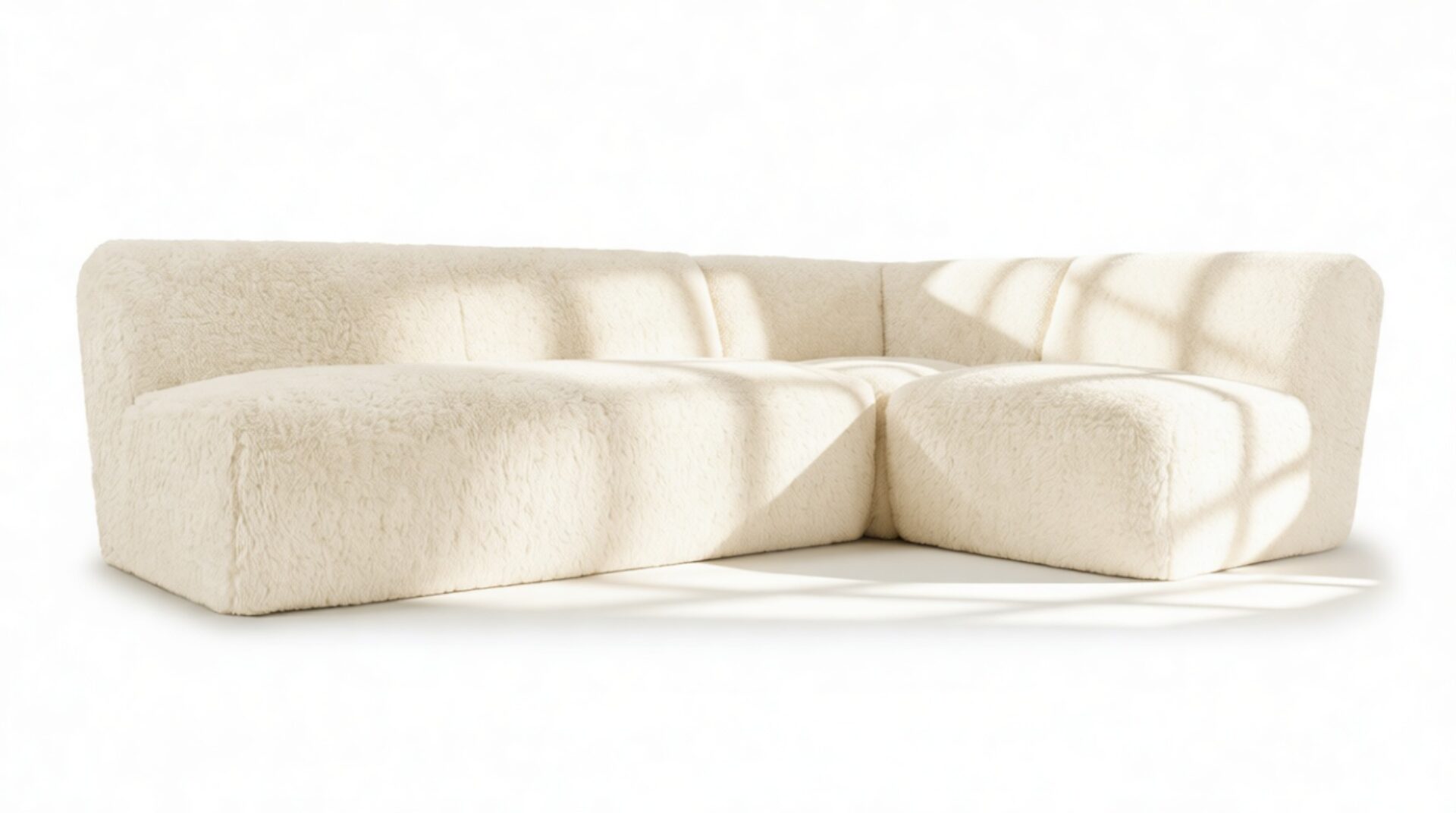 Indulge in luxurious comfort with the meticulously crafted Eilidh Sectional. Upholstered in faux sheepskin, this sumptuous material offers a soft touch that exudes warmth. The sectional's elegant light cream tone emanates sophistication and minimalism, effortlessly complementing a variety of décor styles.
