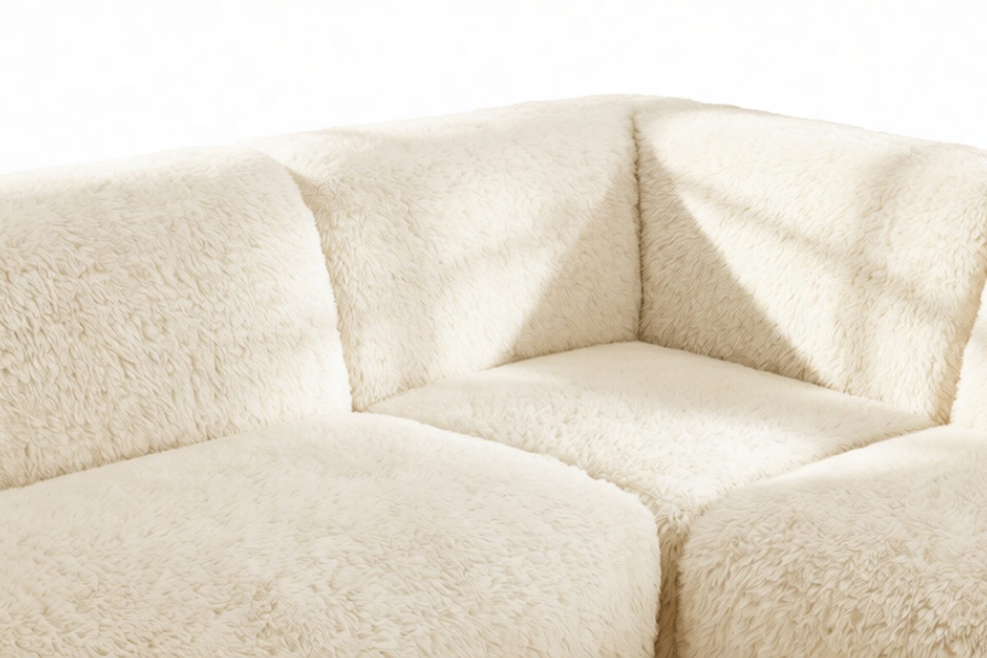 Combining both comfort and practicality, this sectional is crafted with thick padding and soft textures, making it an ideal spot for relaxation and lounging. The faux sheepskin material exudes warmth, while its minimalist look seamlessly pairs with modern or eclectic decor styles. Whether as a focal point in a room or as part of a larger layout, the Eilidh Sectional Collection makes a bold statement in both style and comfort.