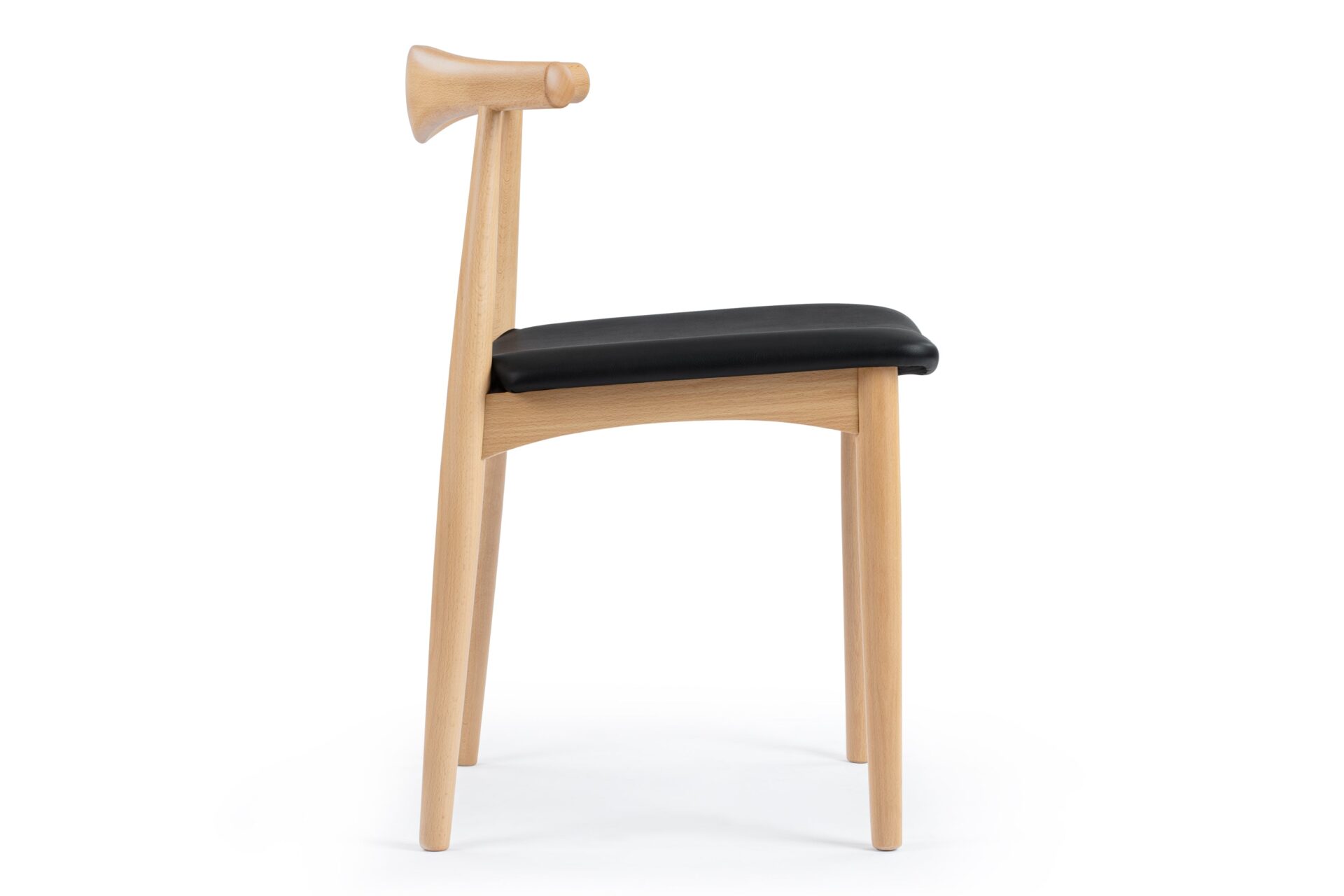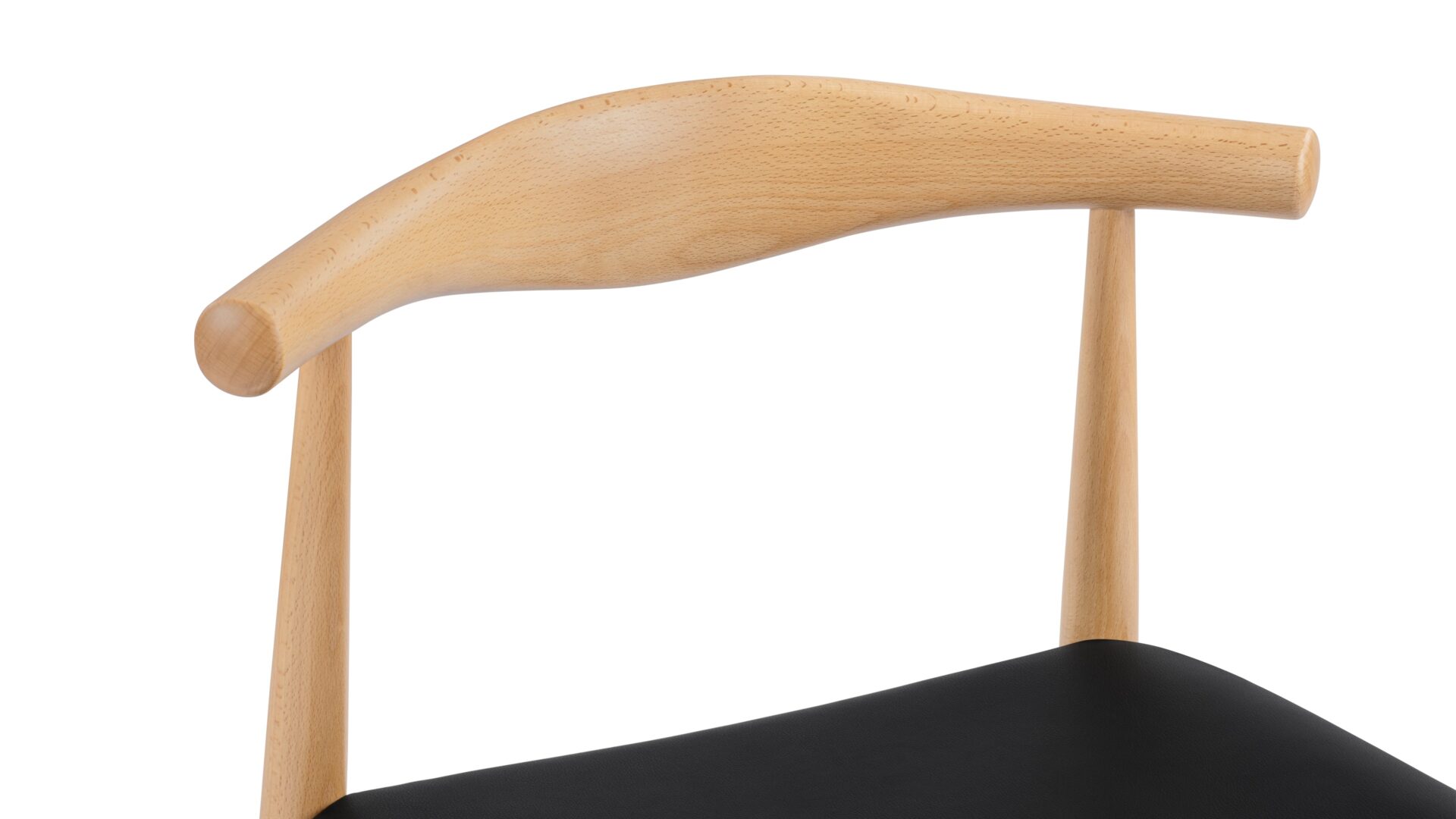 Experience ample back support with this chair, featuring a skillfully steam-bent rounded backrest crafted from a single piece of wood.
