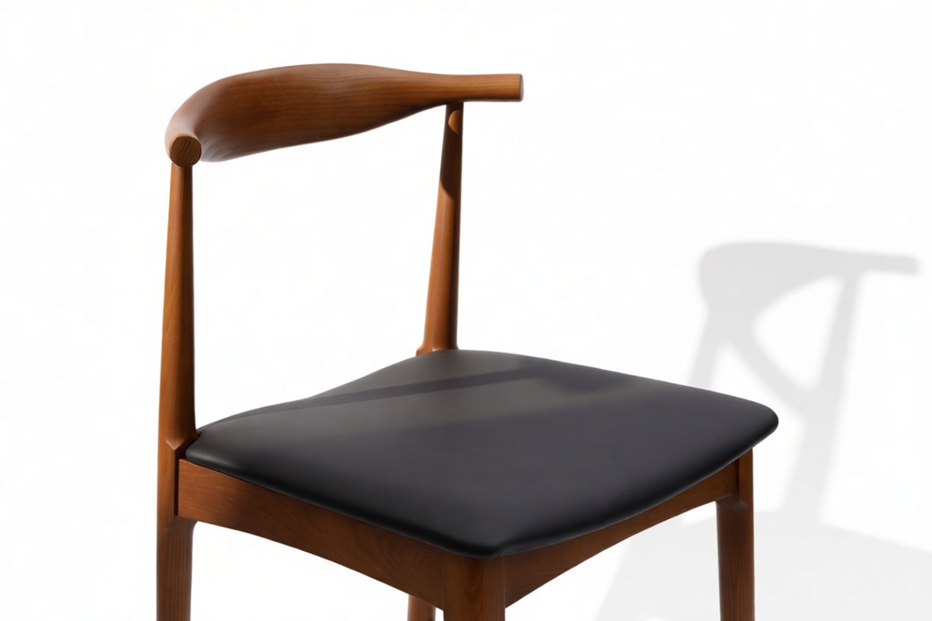 Experience ample back support with this chair, featuring a skillfully steam-bent rounded backrest crafted from a single piece of wood.