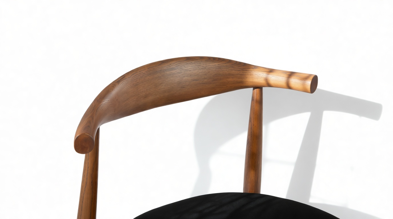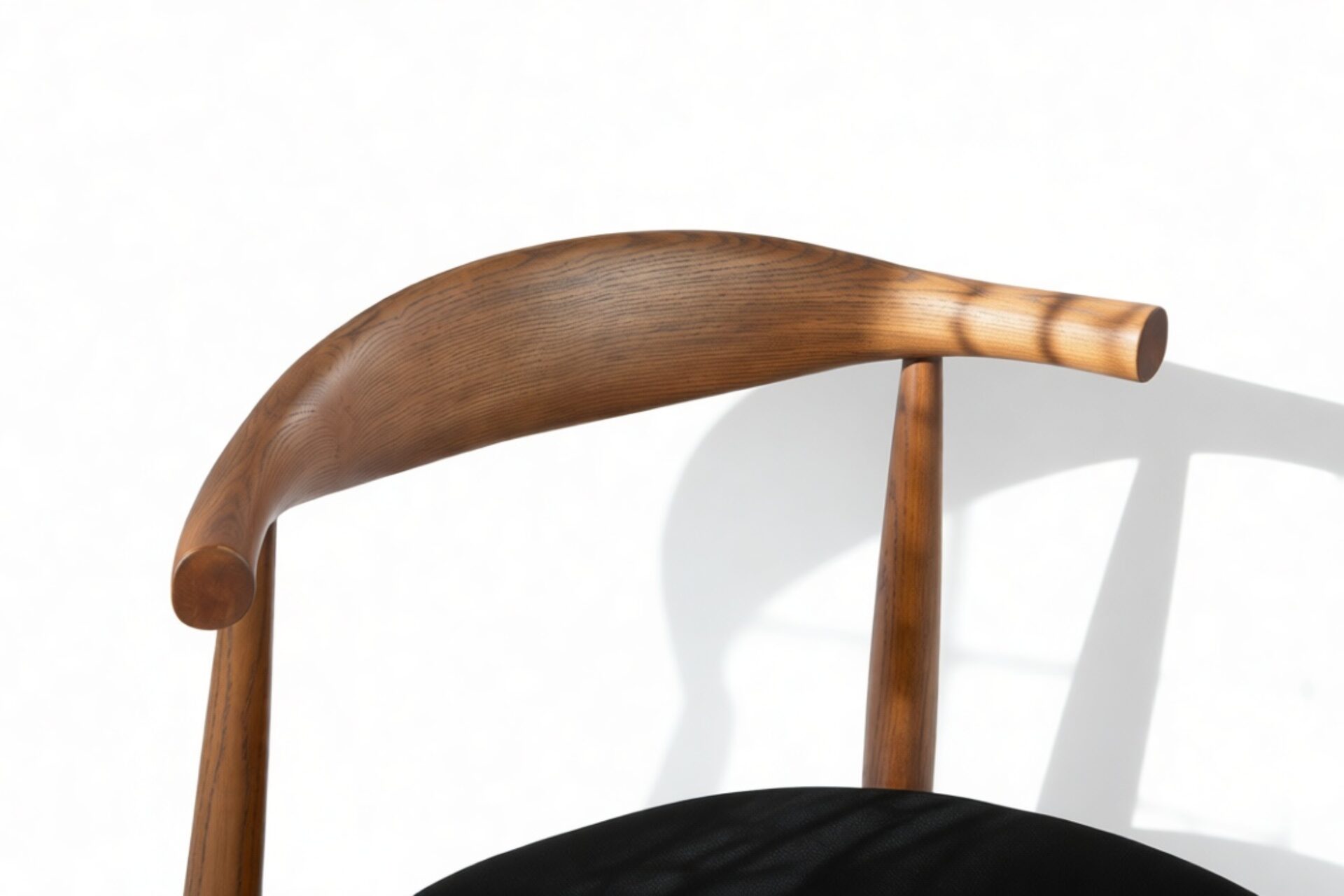 Experience ample back support with this chair, featuring a skillfully steam-bent rounded backrest crafted from a single piece of wood.