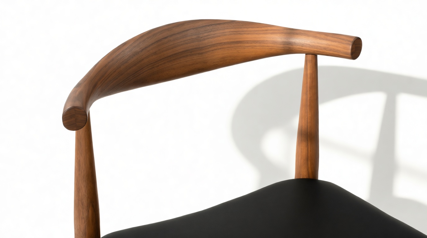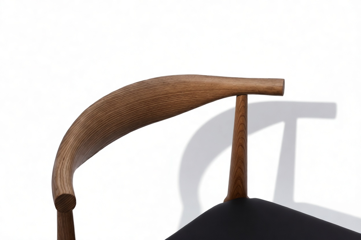 Experience ample back support with this chair, featuring a skillfully steam-bent rounded backrest crafted from a single piece of wood.