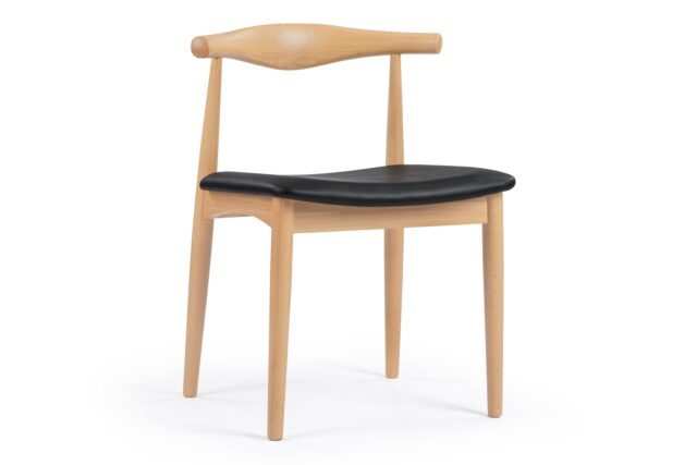 Experience ample back support with this chair, featuring a skillfully steam-bent rounded backrest crafted from a single piece of wood.
