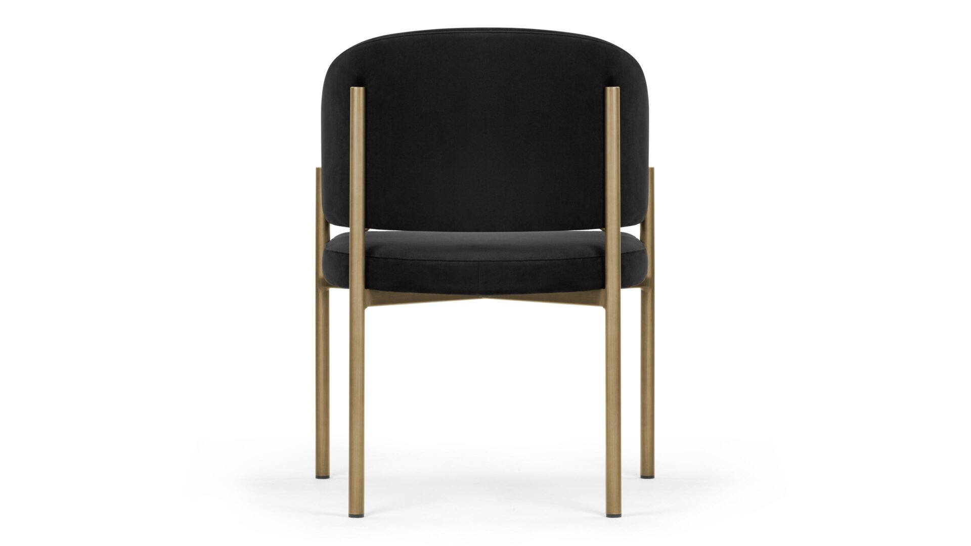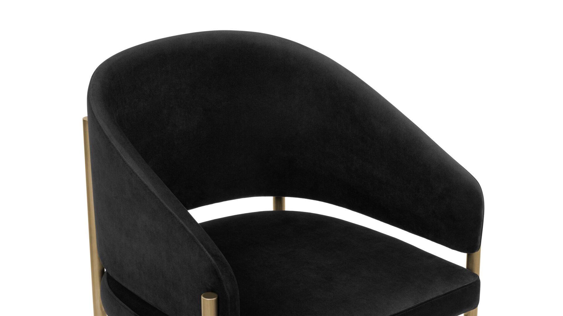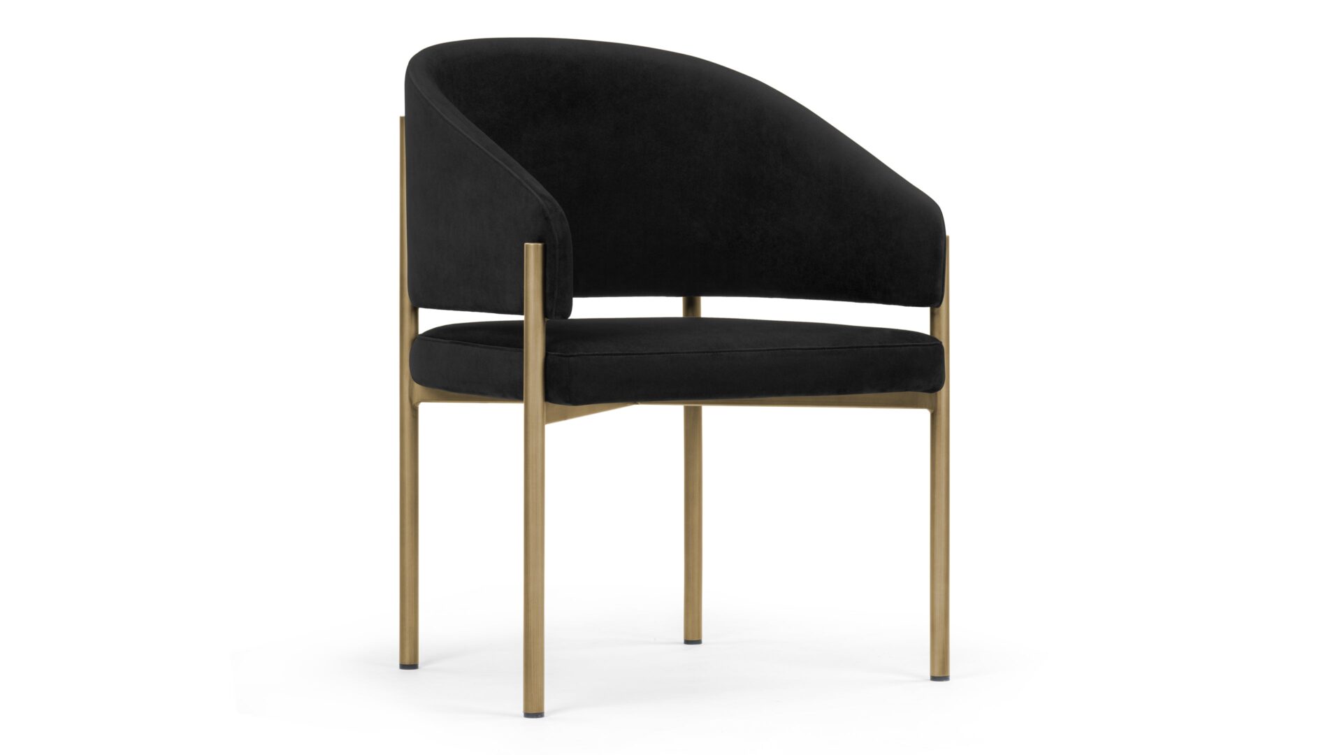 Experience unmatched luxury and refined style with the Esme Dining Chair. Crafted with Italian-inspired finesse and available in Black Plush Velvet upholstery, this chair exudes sophistication with its sleek silhouette and modern brushed brass legs. Elevate your dining space with a blend of opulence and comfort, creating a harmonious fusion of textures and tones for a truly elegant dining experience.