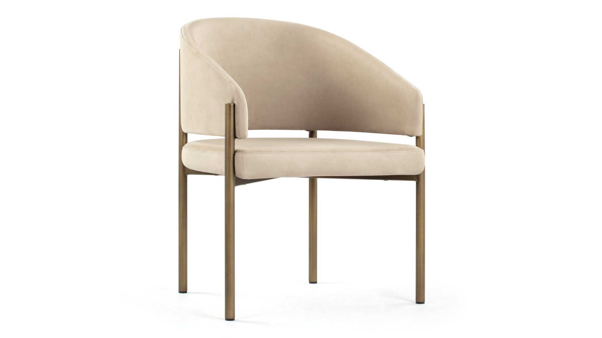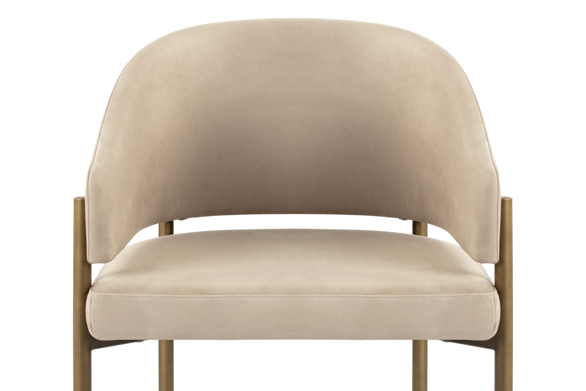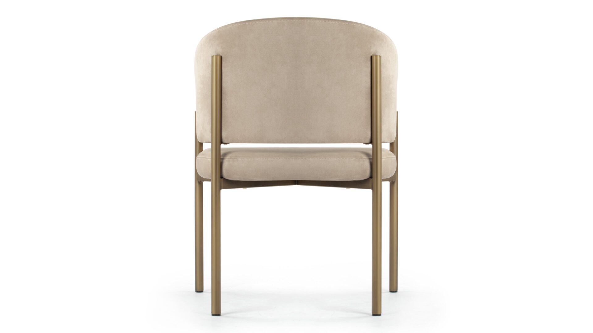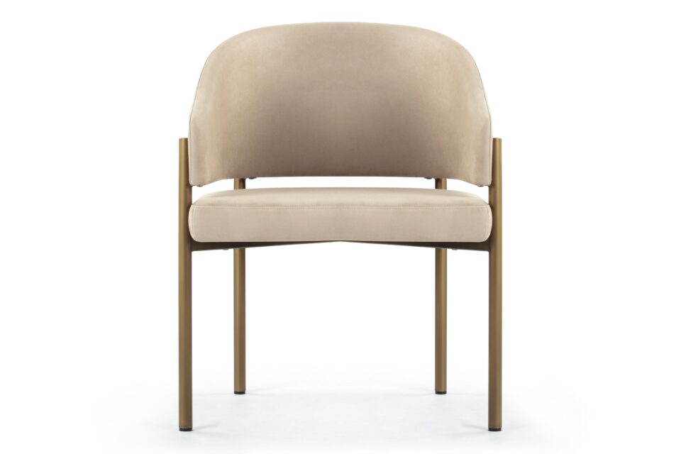 Experience dining in exquisite style with the Esme Dining Chair. Crafted with Italian-inspired finesse, this piece seamlessly blends contemporary design with luxurious comfort. Upholstered in lavish Latte Vegan Suede, it radiates elegance. The antique brushed brass legs add a touch of vintage charm, creating a harmonious interplay of textures and tones for a sophisticated dining experience.