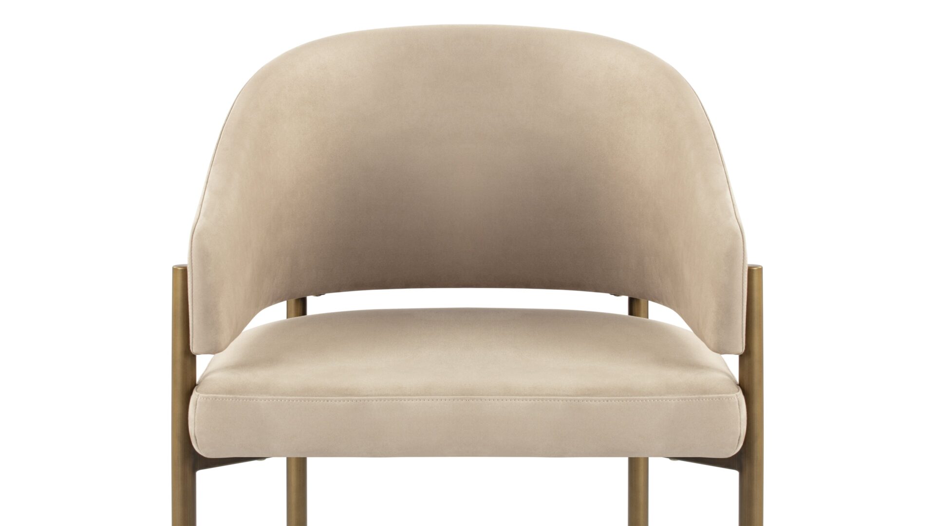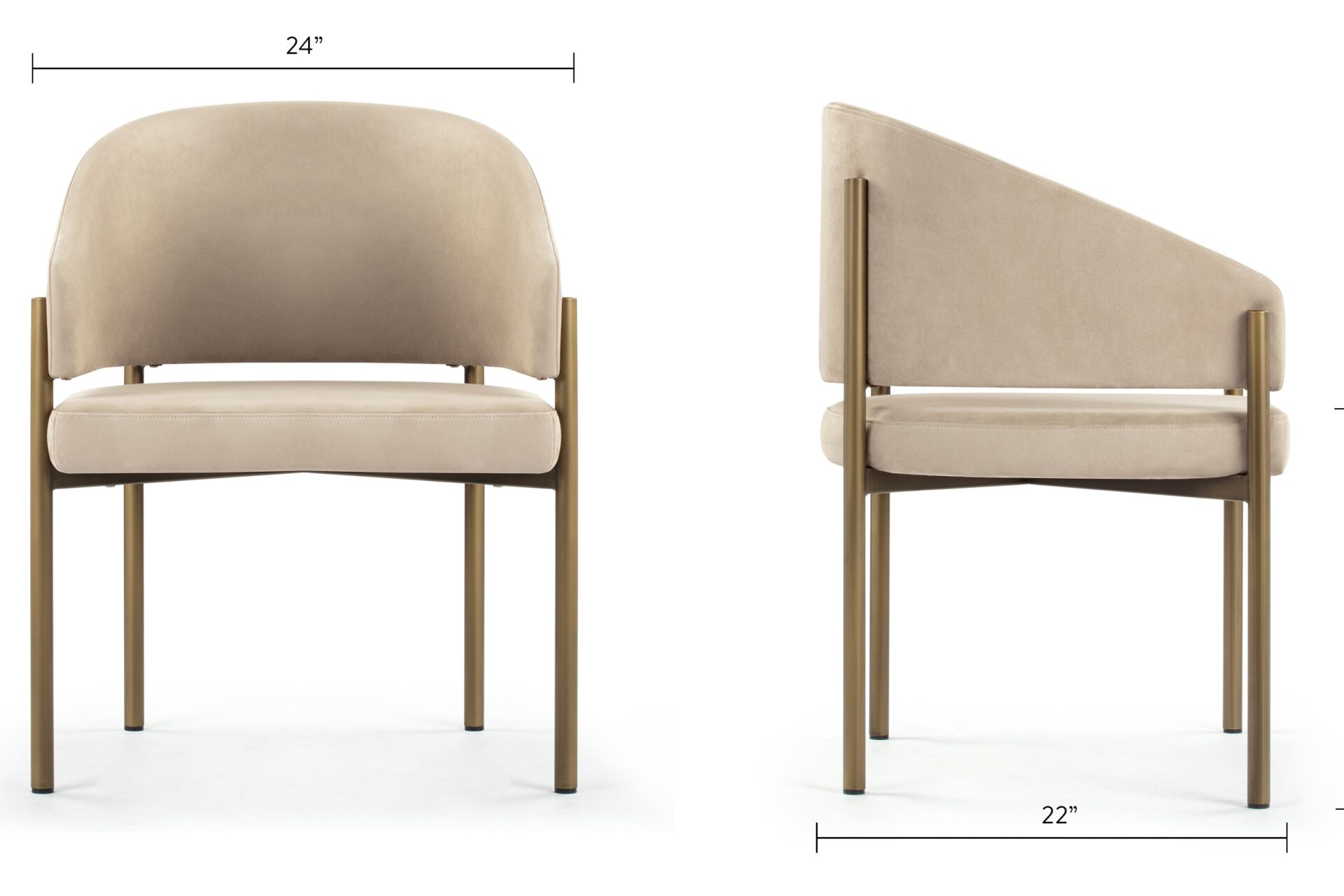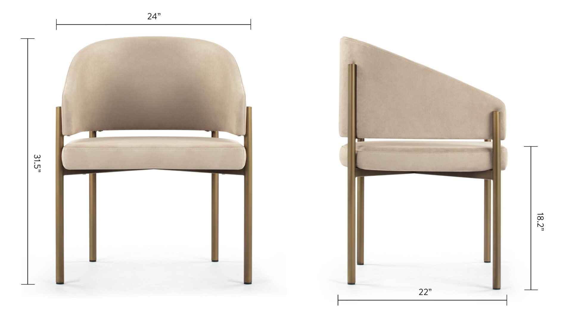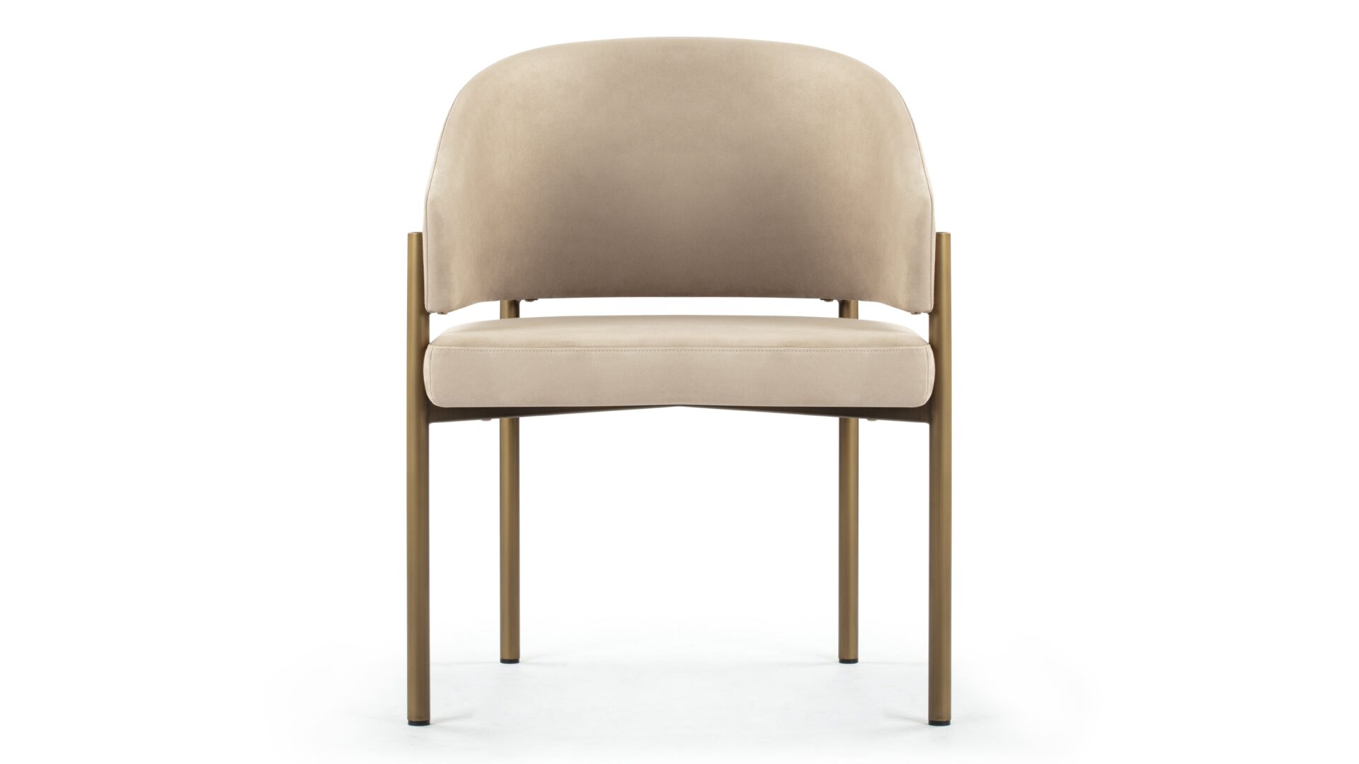 Experience dining in exquisite style with the Esme Dining Chair. Crafted with Italian-inspired finesse, this piece seamlessly blends contemporary design with luxurious comfort. Upholstered in lavish Latte Vegan Suede, it radiates elegance. The antique brushed brass legs add a touch of vintage charm, creating a harmonious interplay of textures and tones for a sophisticated dining experience.