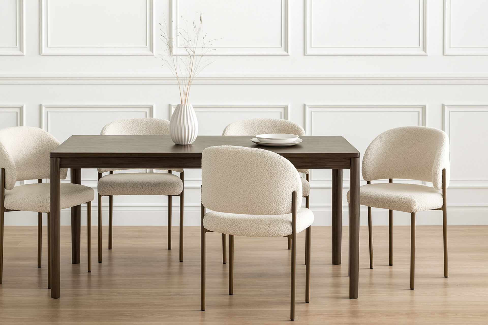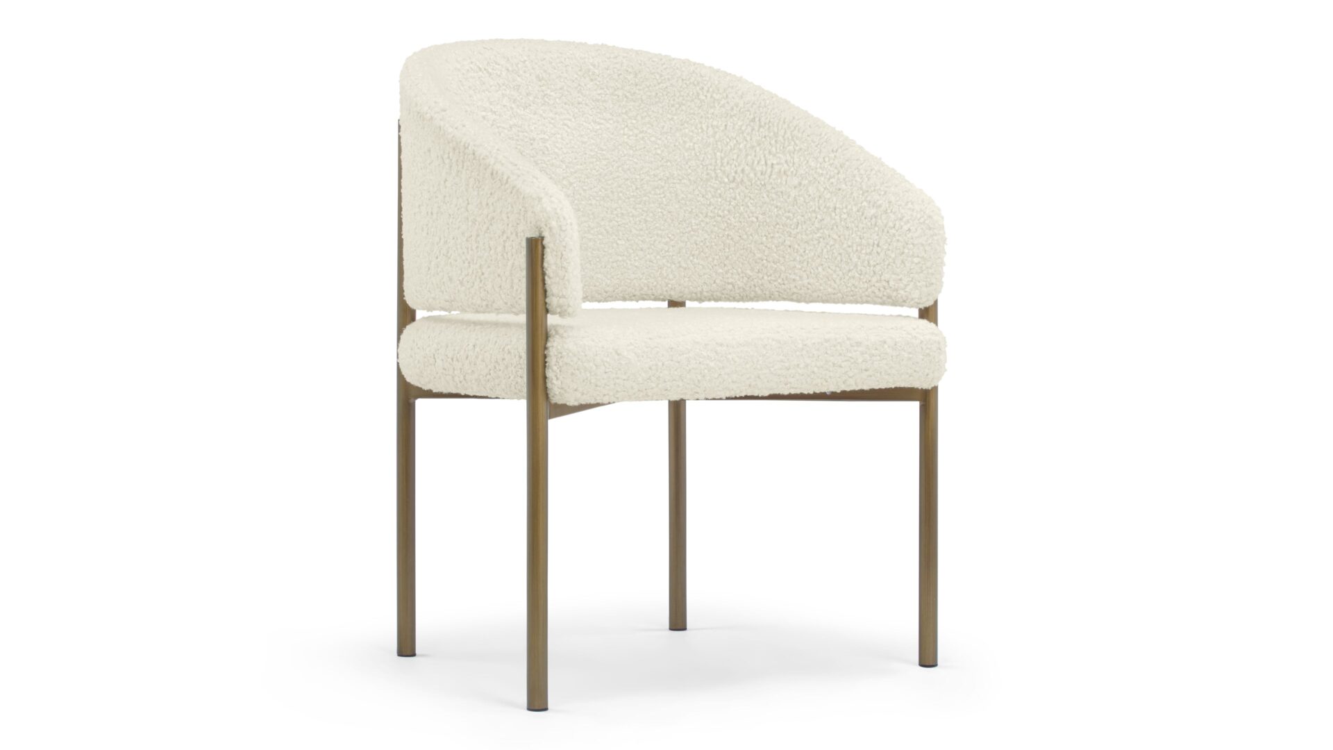 Experience the ultimate in dining luxury with the Esme Dining Chair that exudes sleek sophistication and Italian-inspired finesse. A seamless fusion of contemporary design and luxurious comfort, it radiates designer appeal while the Paris Dining Chair, upholstered in sumptuous Luxe Sherpa, offers a lavish tactile sensation and stylish vintage charm with its antique brass legs.