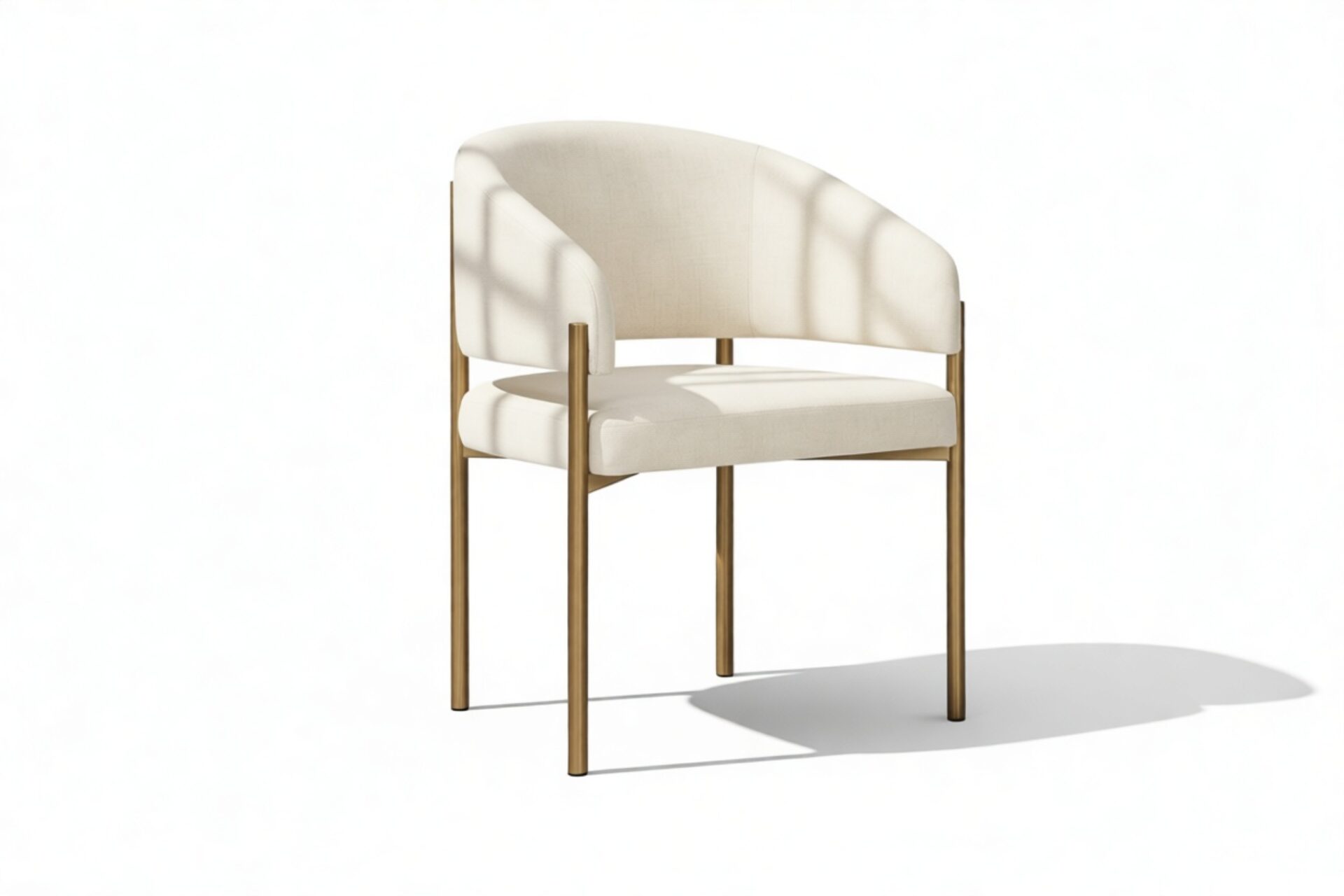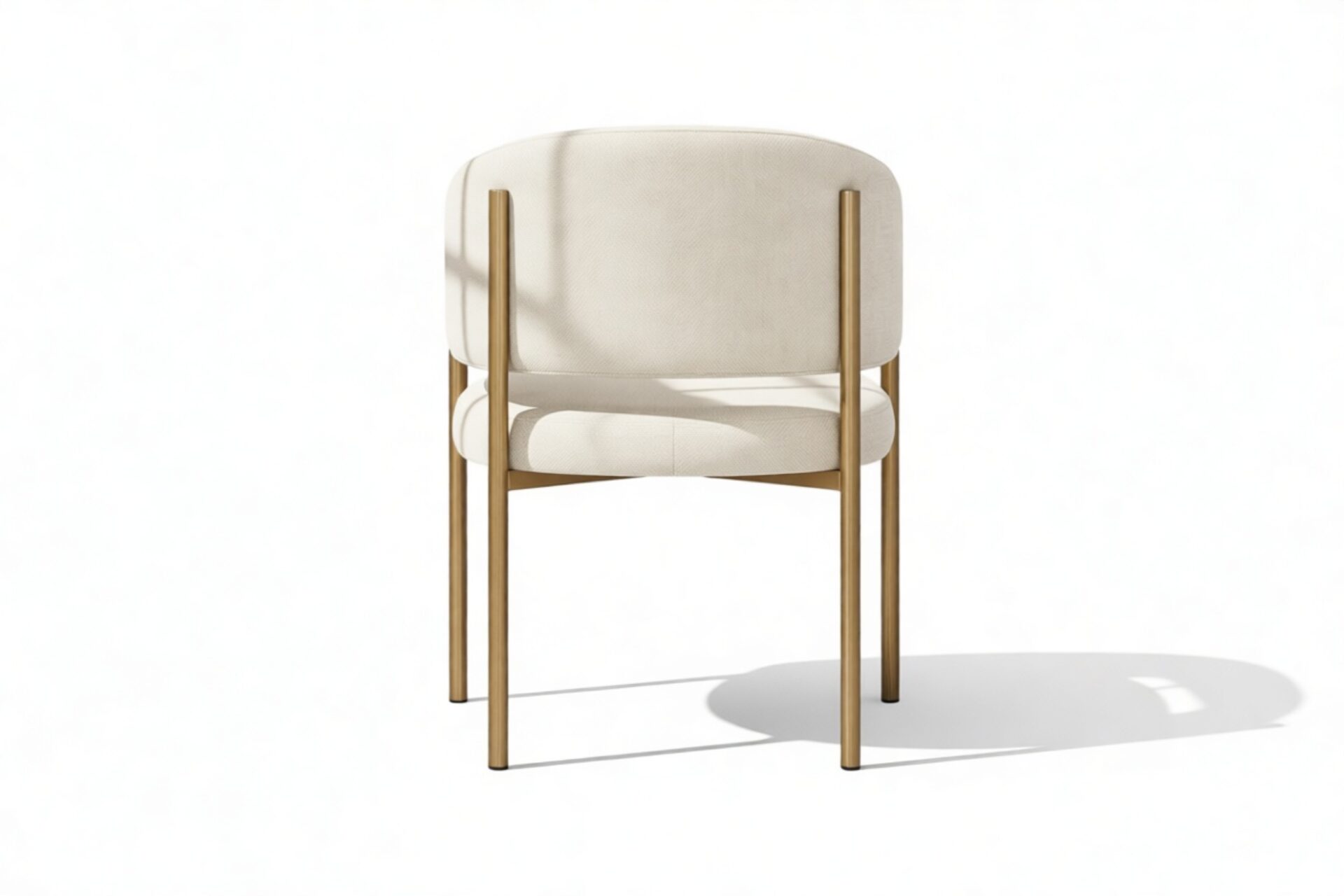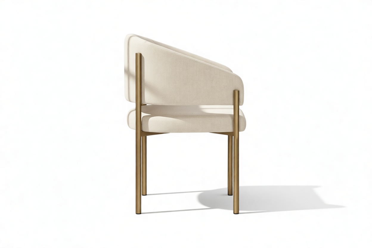 Experience the exquisite charm of the Esther Dining Chair, with its sleek silhouette and modern lines. Crafted with Italian finesse, it exudes luxury and elegance in every detail. Embrace the luxurious fusion of Oatmeal Brushed Weave upholstery and Brushed Brass legs, creating a harmonious balance of textures and tones for a timeless dining experience.