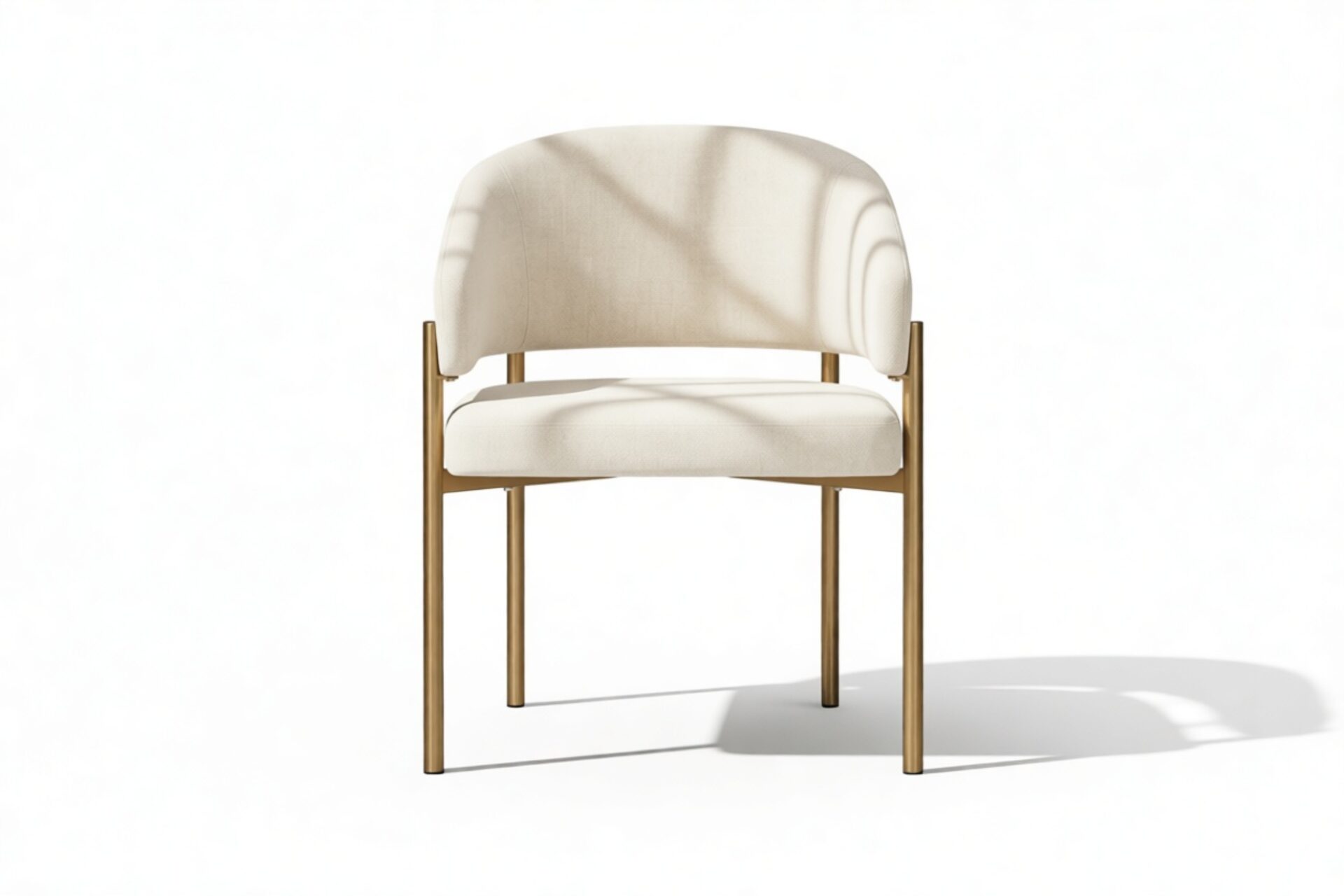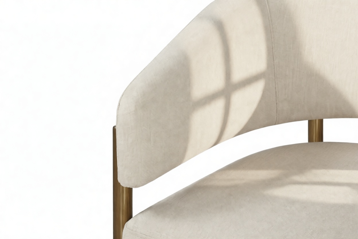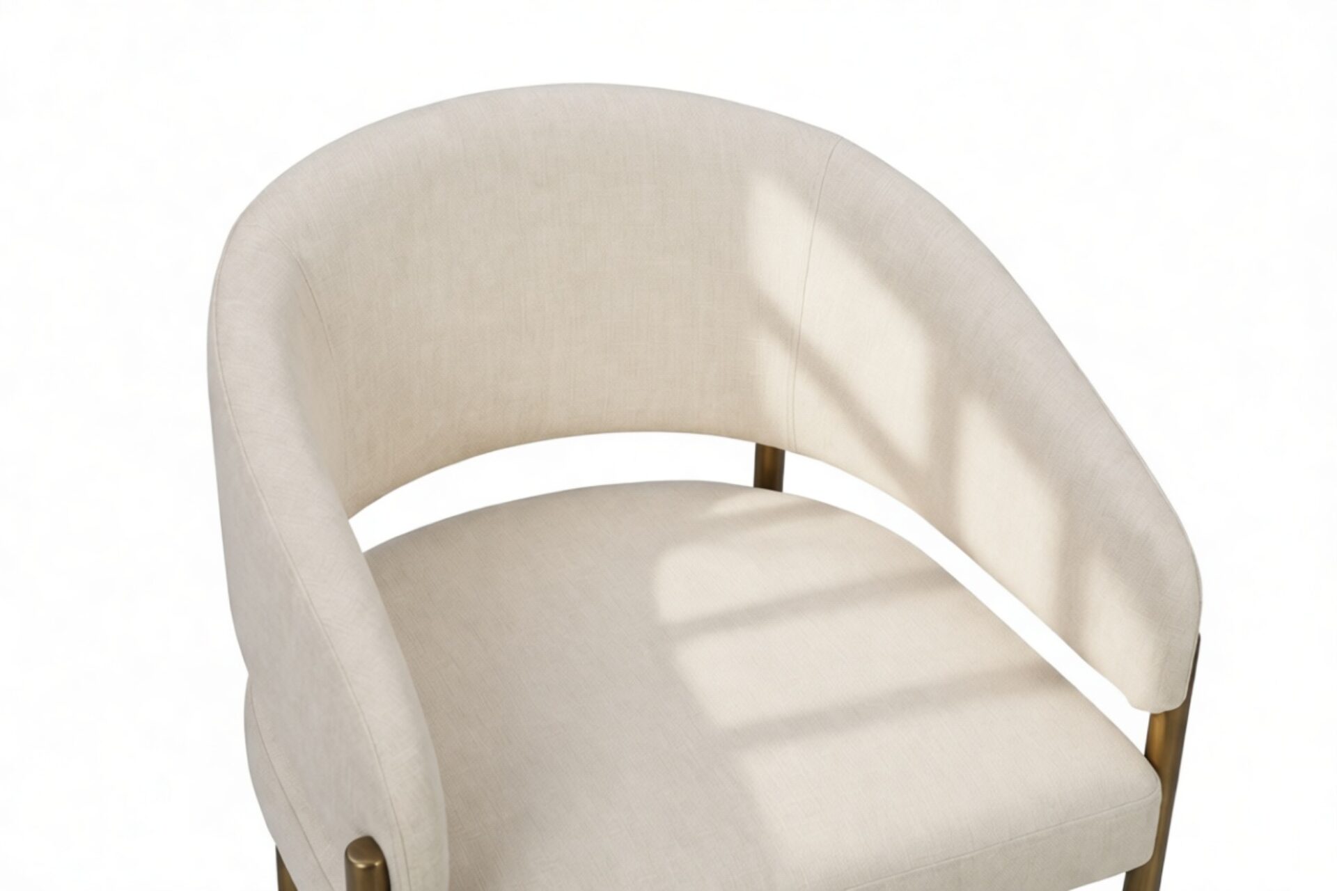 Experience the exquisite charm of the Esther Dining Chair, with its sleek silhouette and modern lines. Crafted with Italian finesse, it exudes luxury and elegance in every detail. Embrace the luxurious fusion of Oatmeal Brushed Weave upholstery and Brushed Brass legs, creating a harmonious balance of textures and tones for a timeless dining experience.