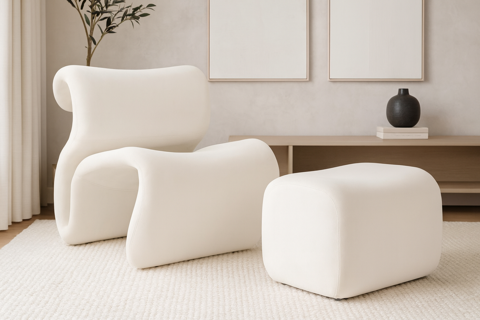 Experience the unique design of the Etcetera Chair, featuring sinuous, flowing lines and a sculptural silhouette that stands out. This chair draws inspiration from the 1970s with its emphasis on organic forms and creative use of materials, while still maintaining a distinctly modern appeal.