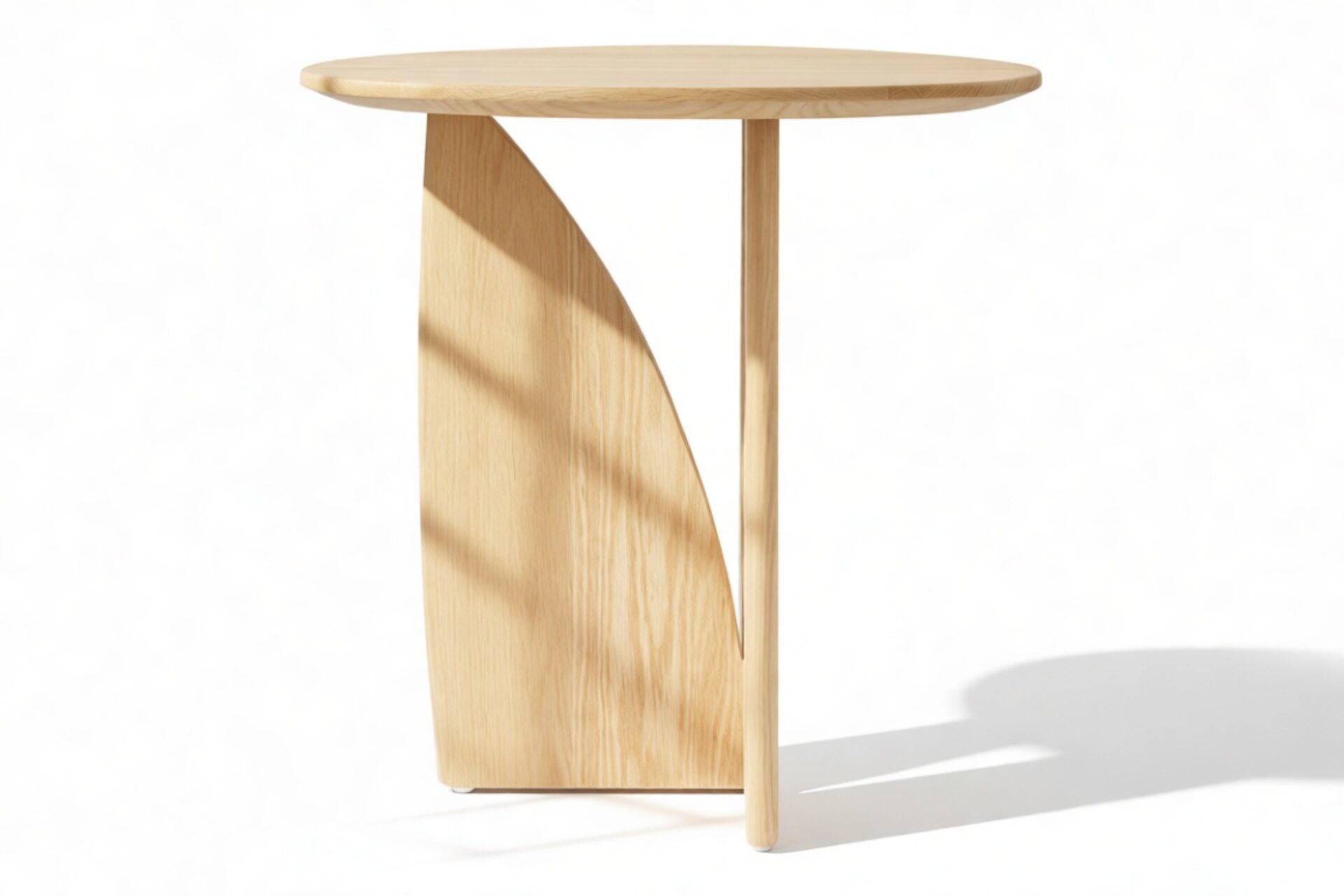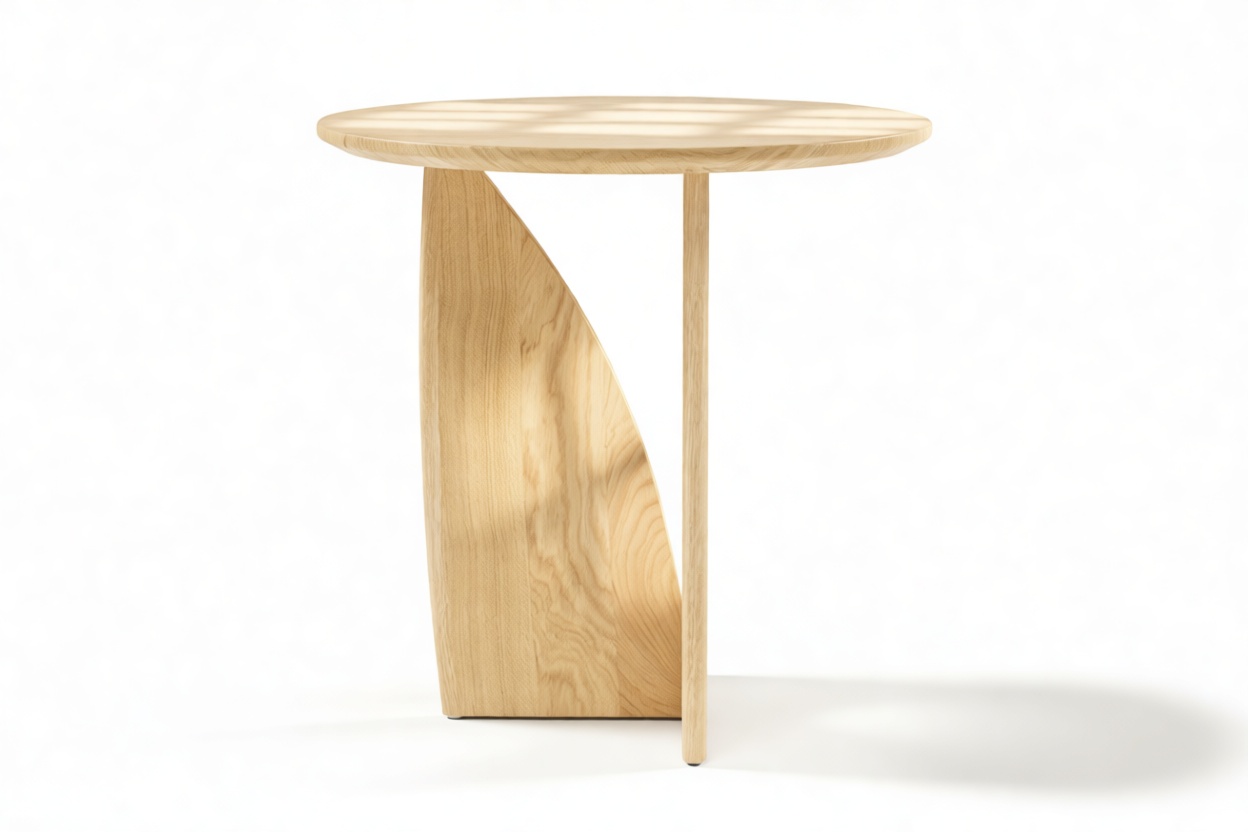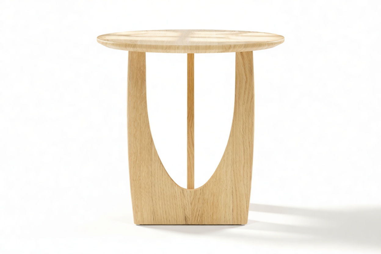 Featuring a rich oak finish, this side table exudes a distinctive charm from all perspectives, thanks to its asymmetrical design. Its understated yet striking silhouette makes it a flexible addition, elevating the allure of any modern living area.