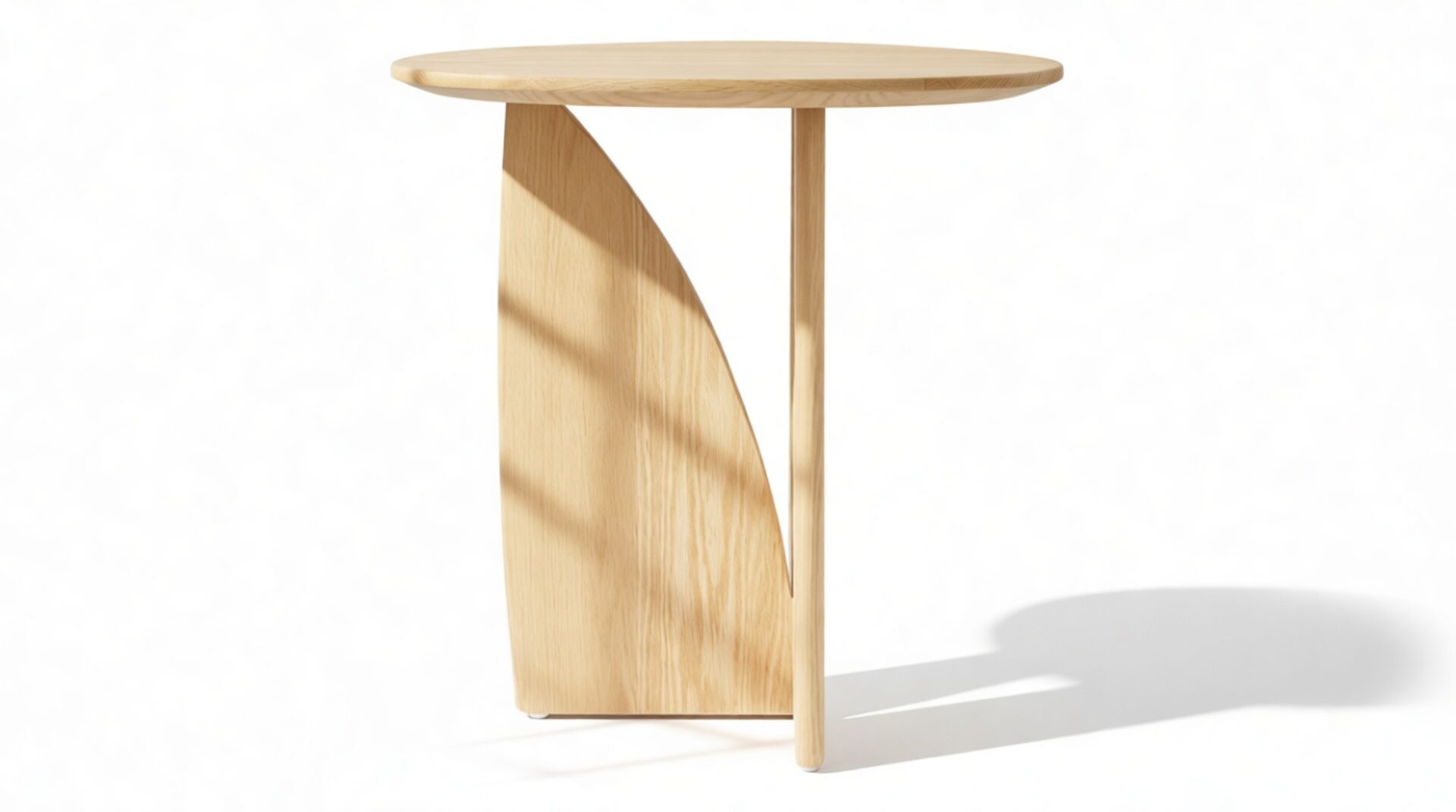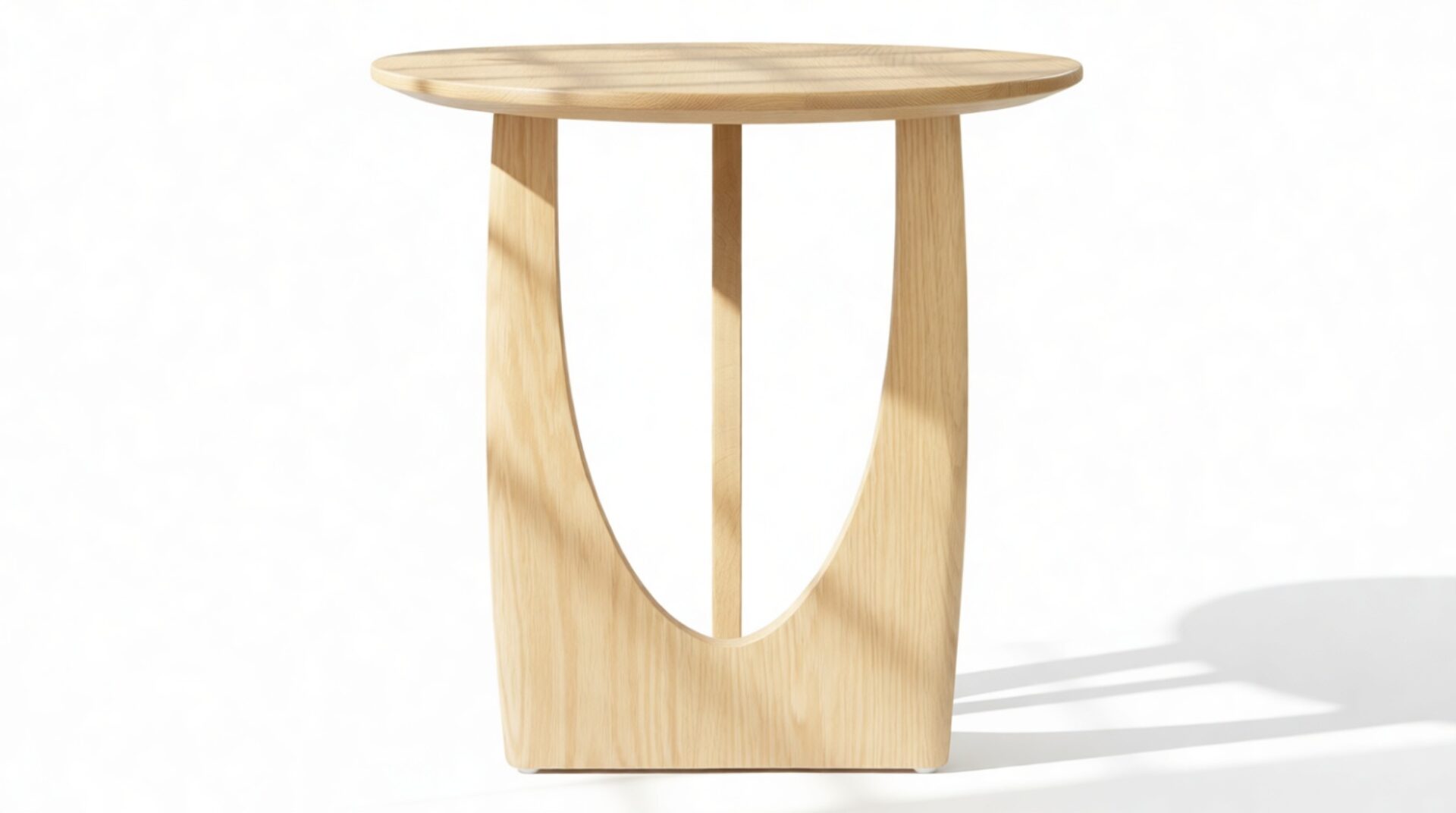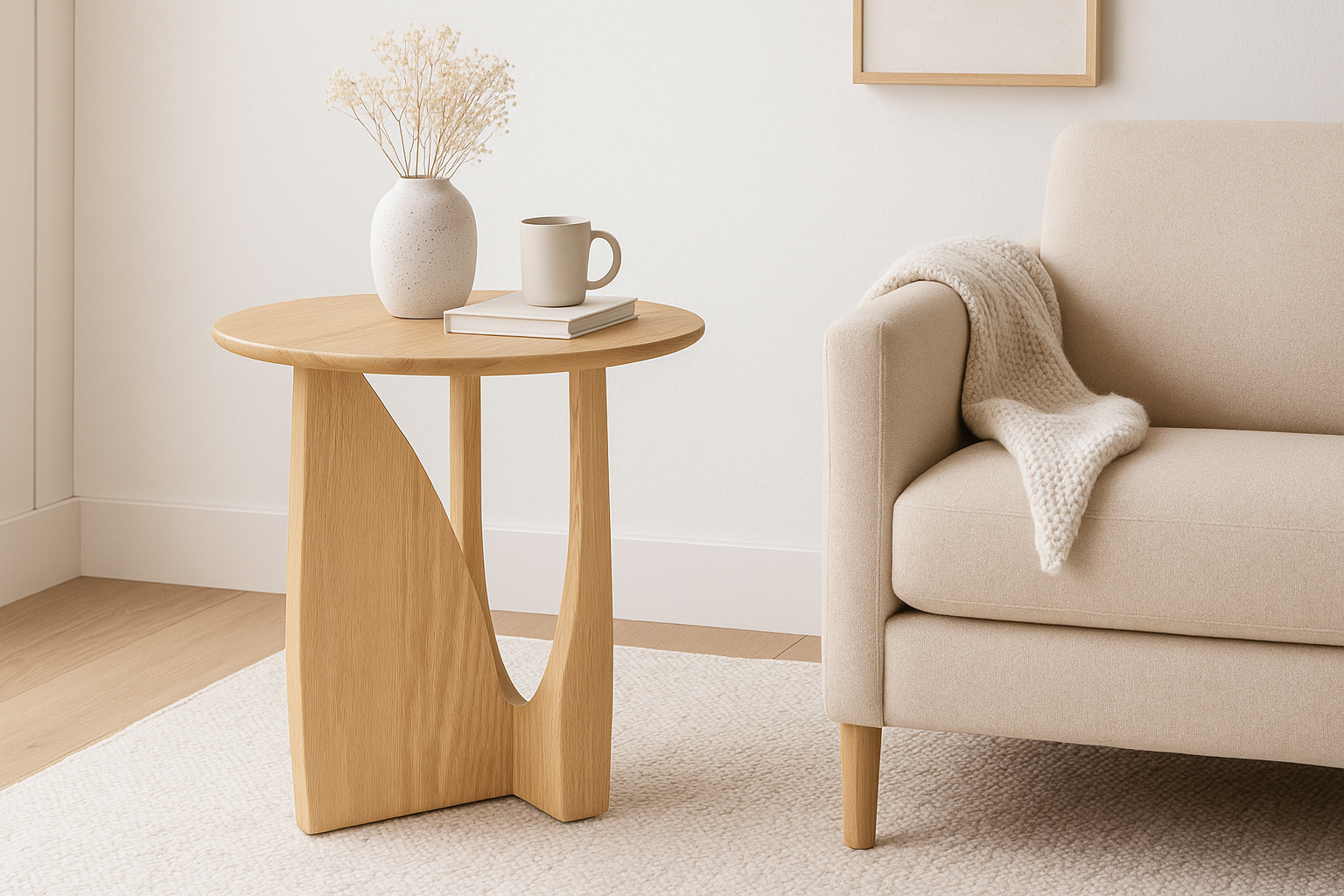 Featuring a rich oak finish, this side table exudes a distinctive charm from all perspectives, thanks to its asymmetrical design. Its understated yet striking silhouette makes it a flexible addition, elevating the allure of any modern living area.